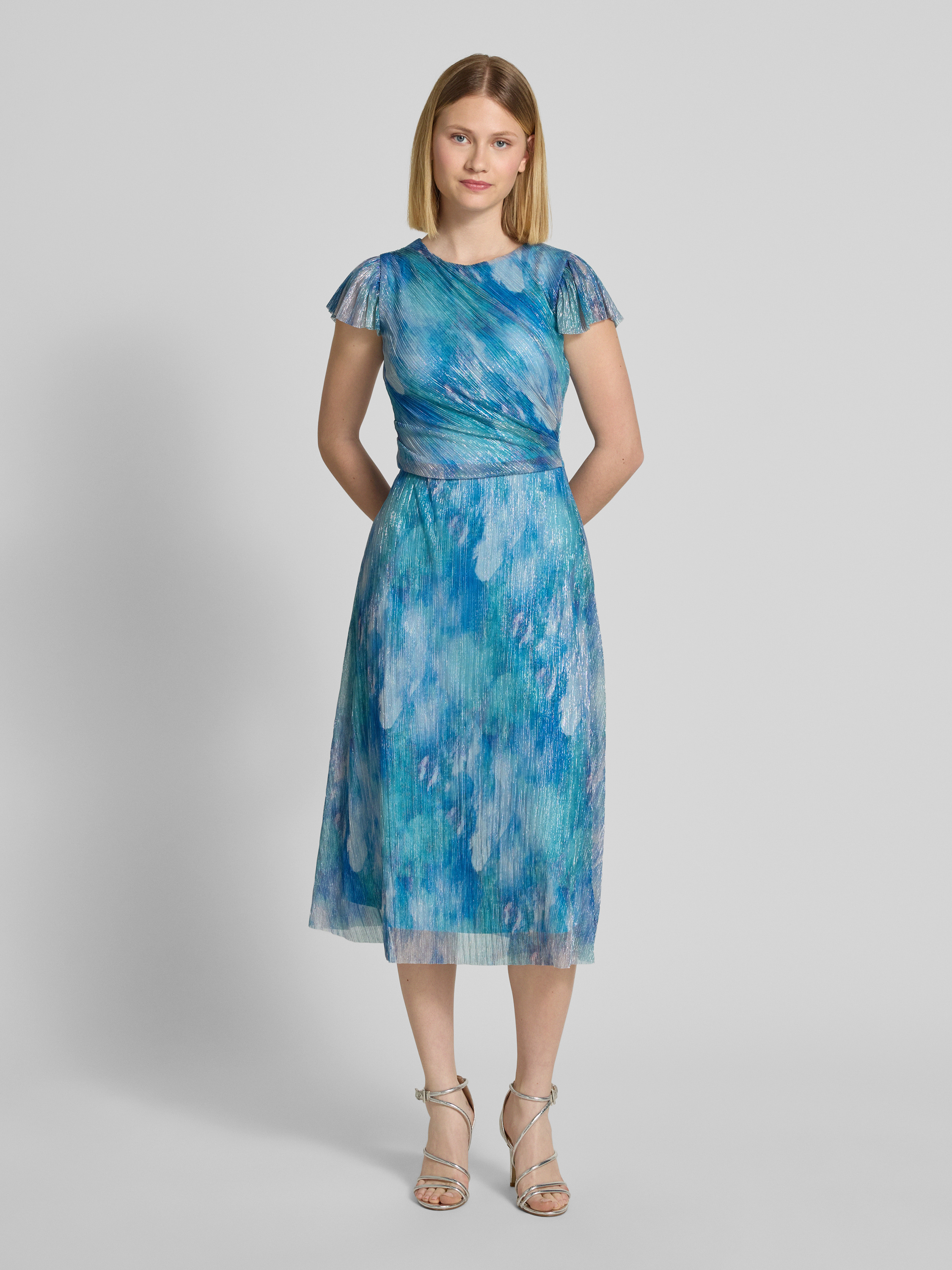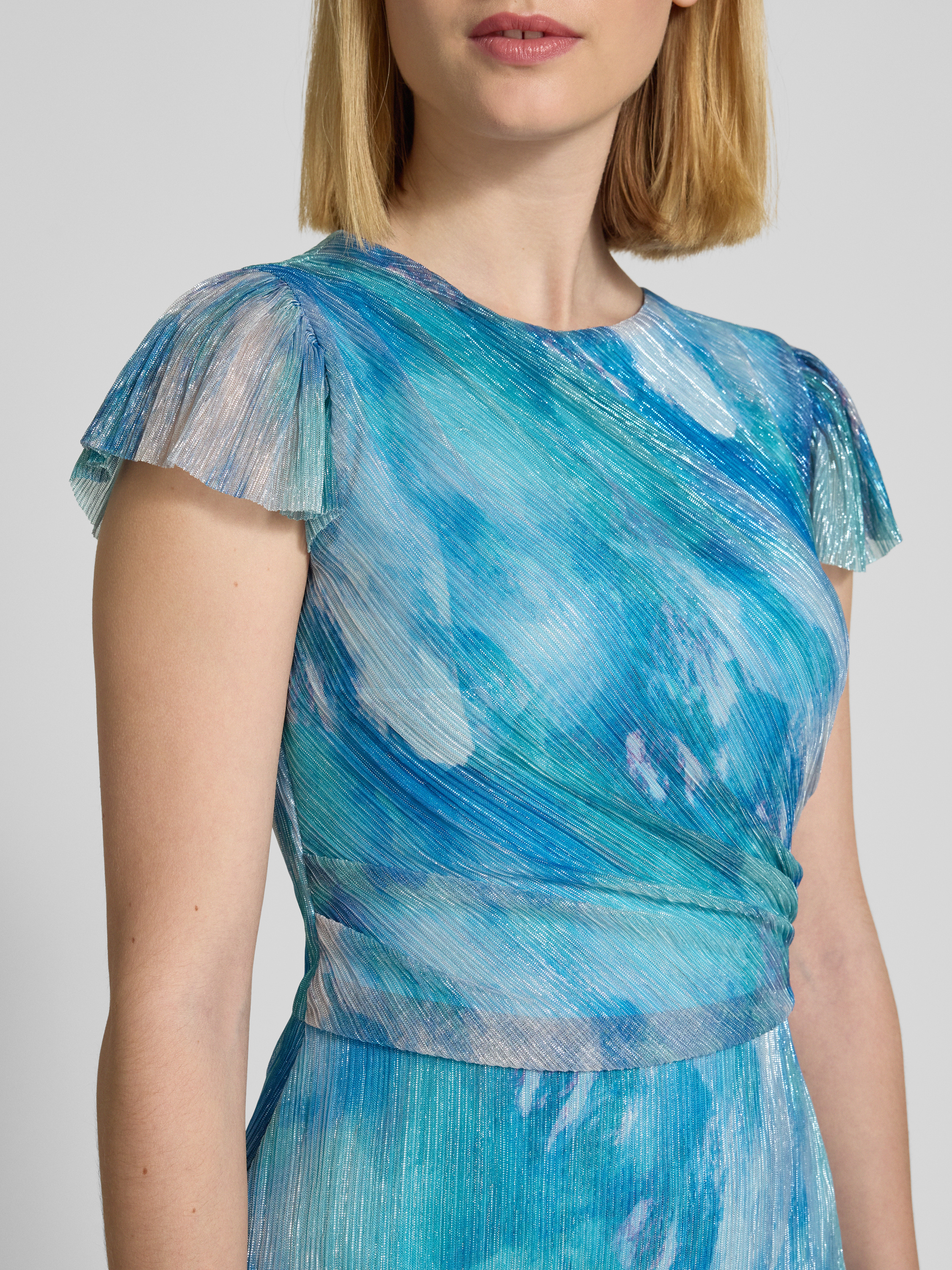 Sukienka koktajlowa z okrągłym dekoltem - oceaniczny