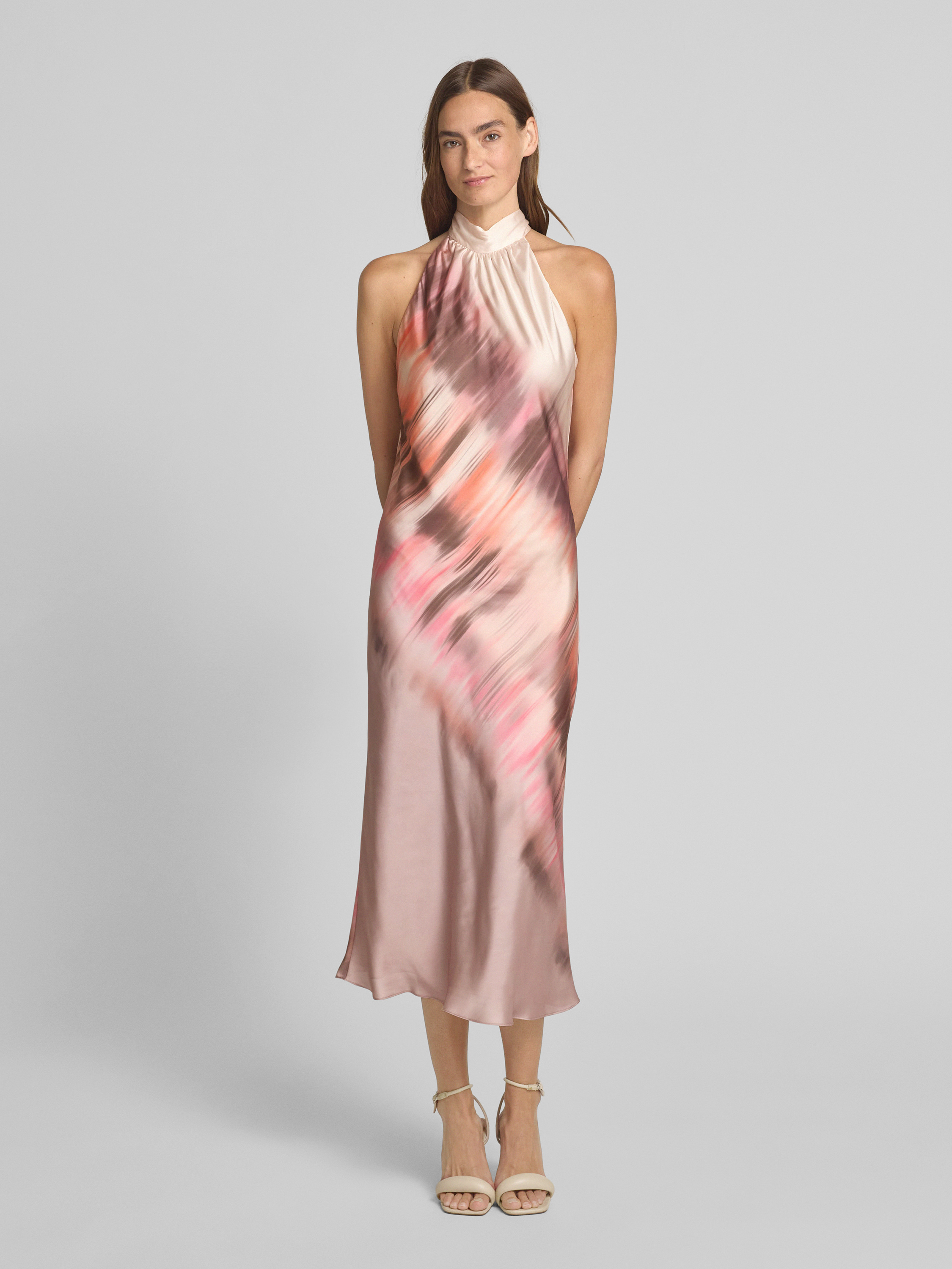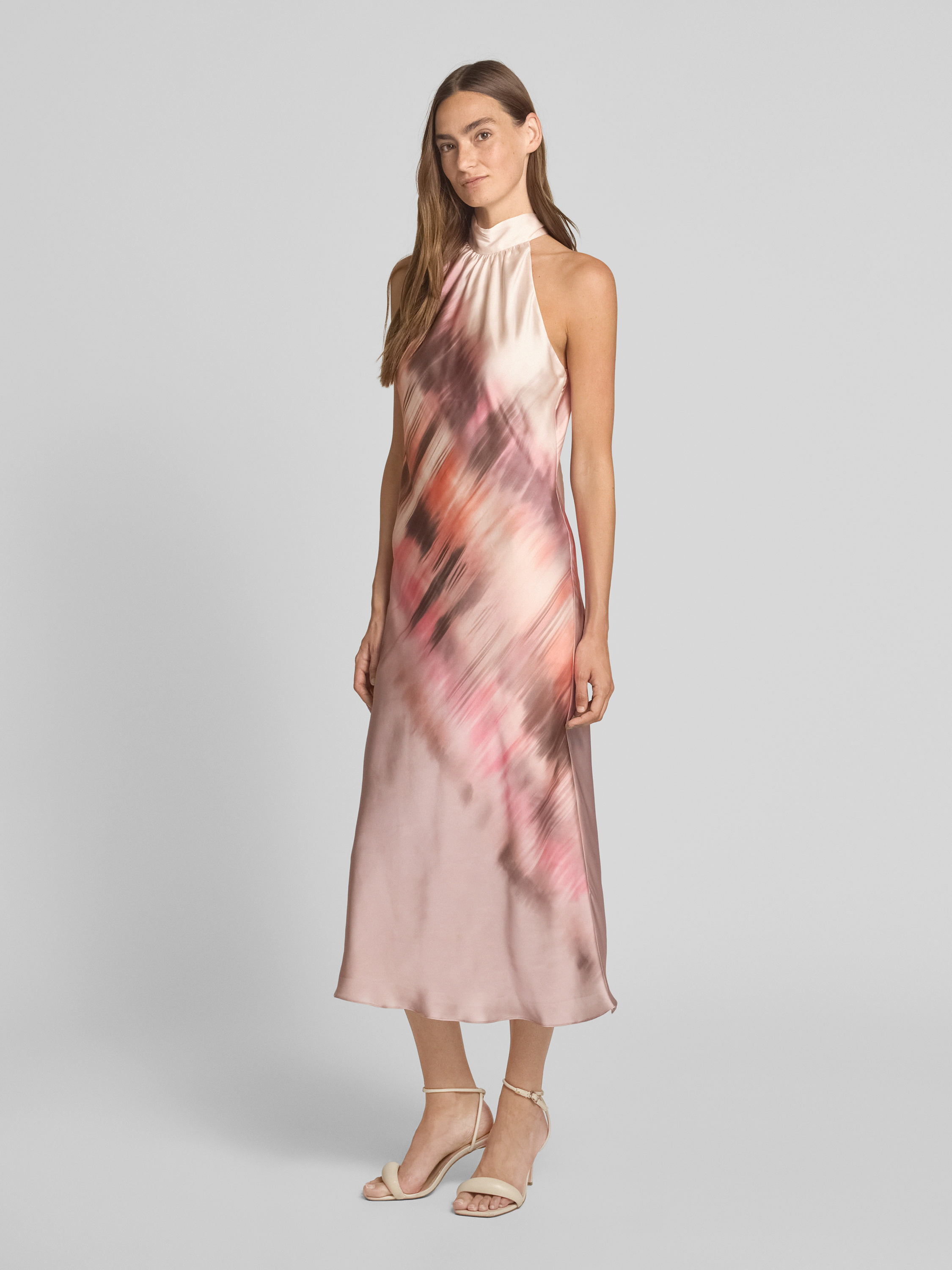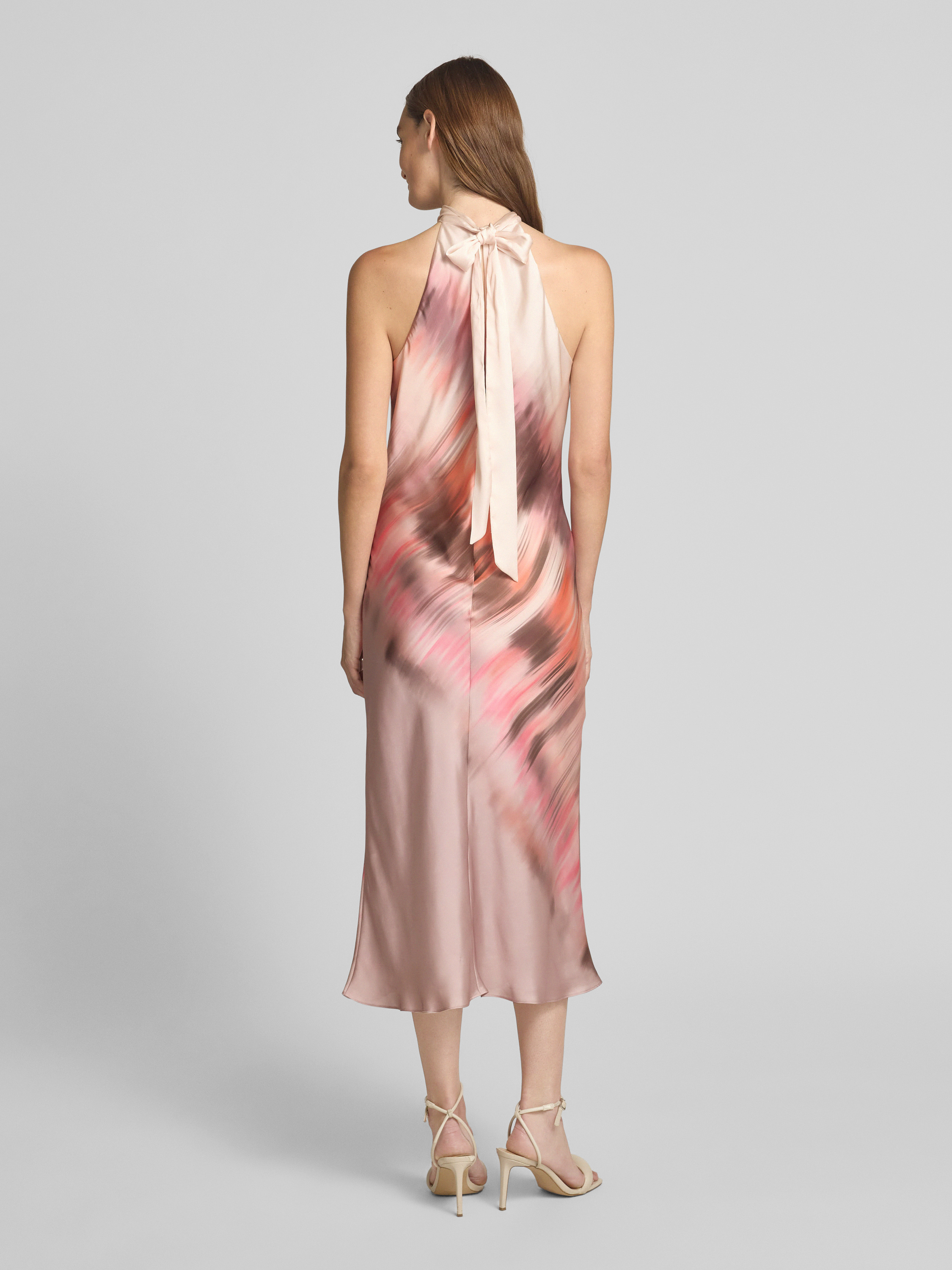Sukienka koktajlowa z wiązaniem na szyi - różowy