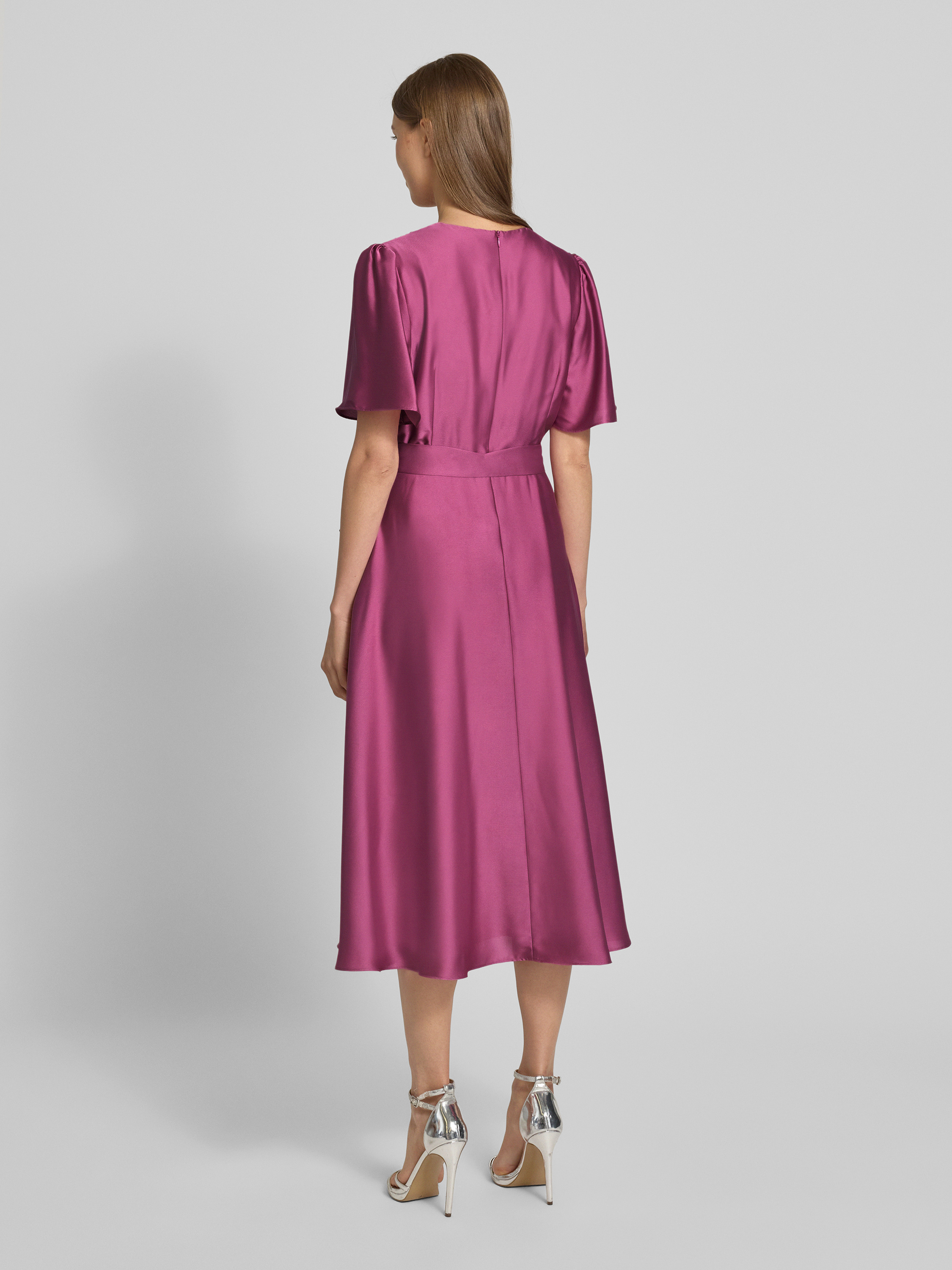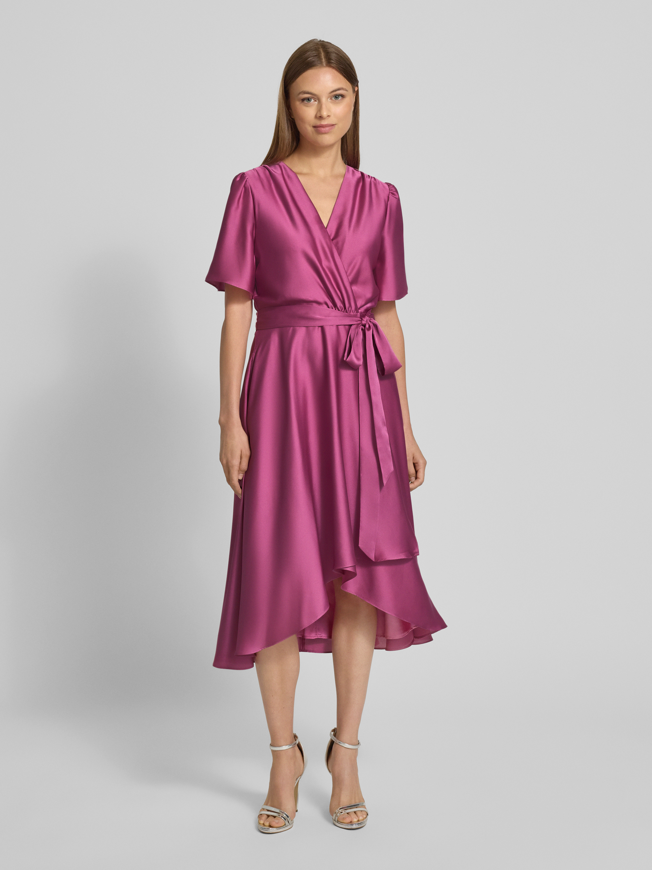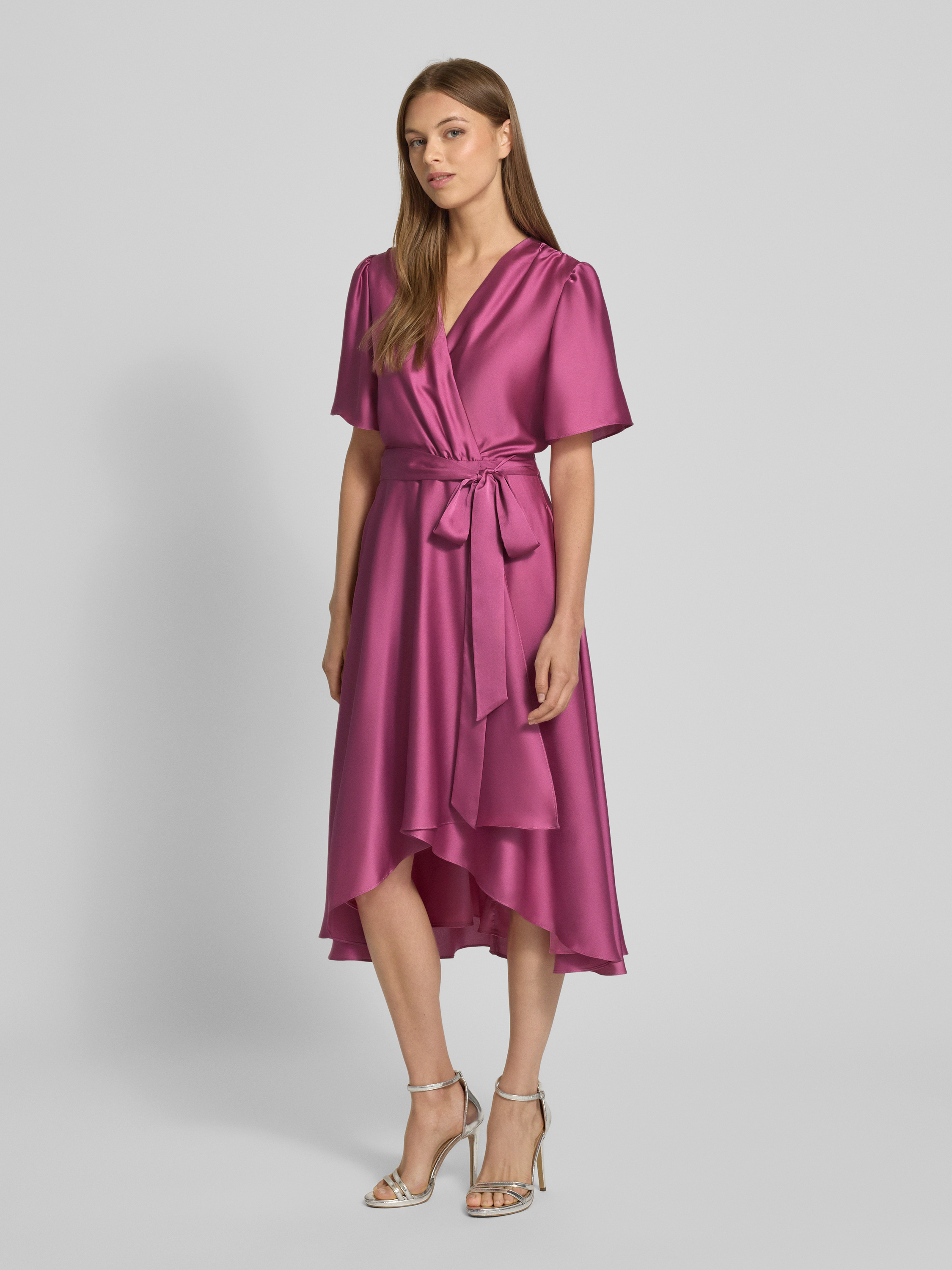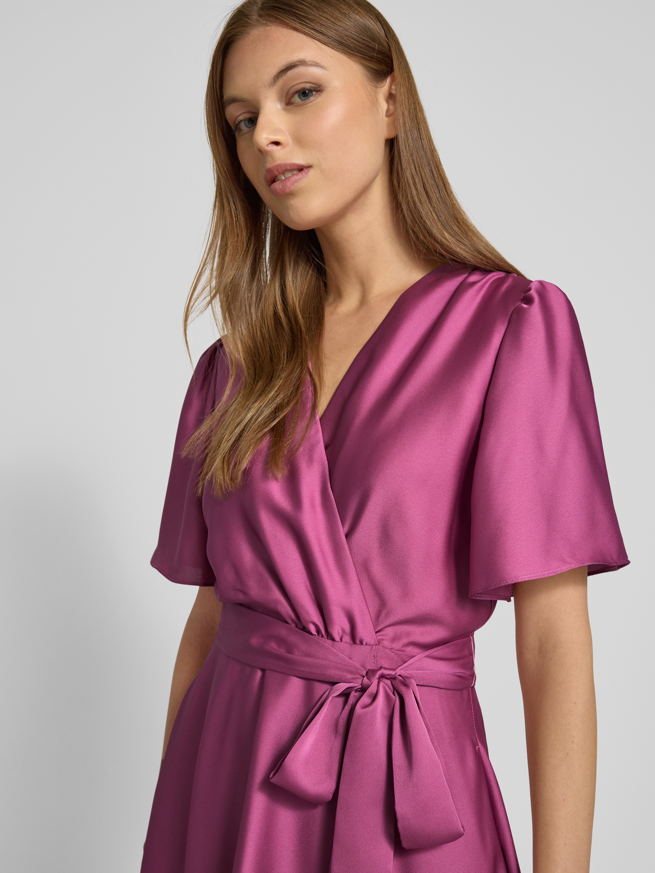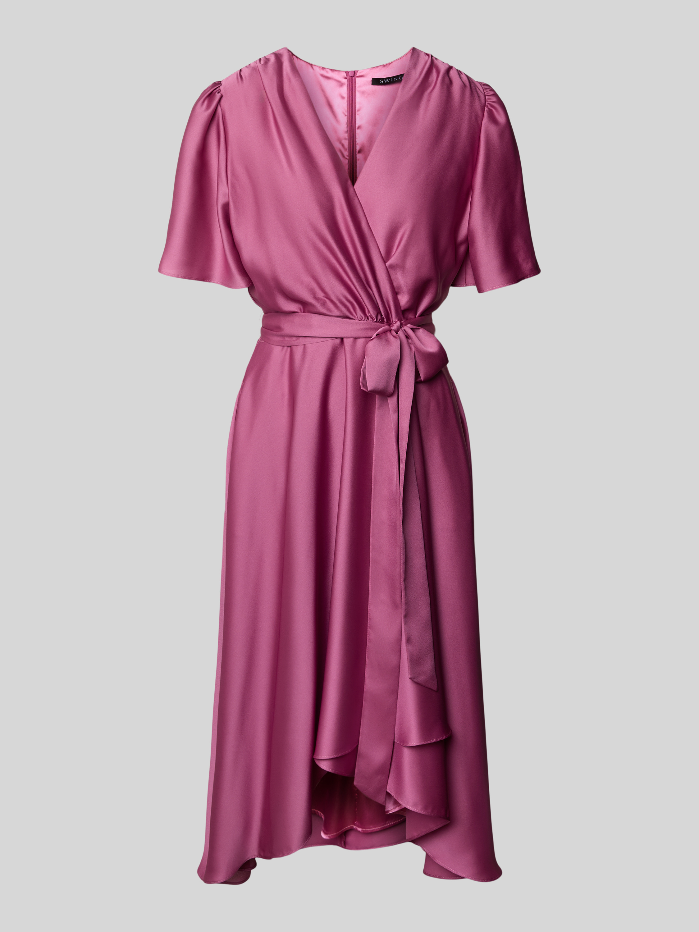 Sukienka koktajlowa z wiązanym paskiem - mocnoróżowy
