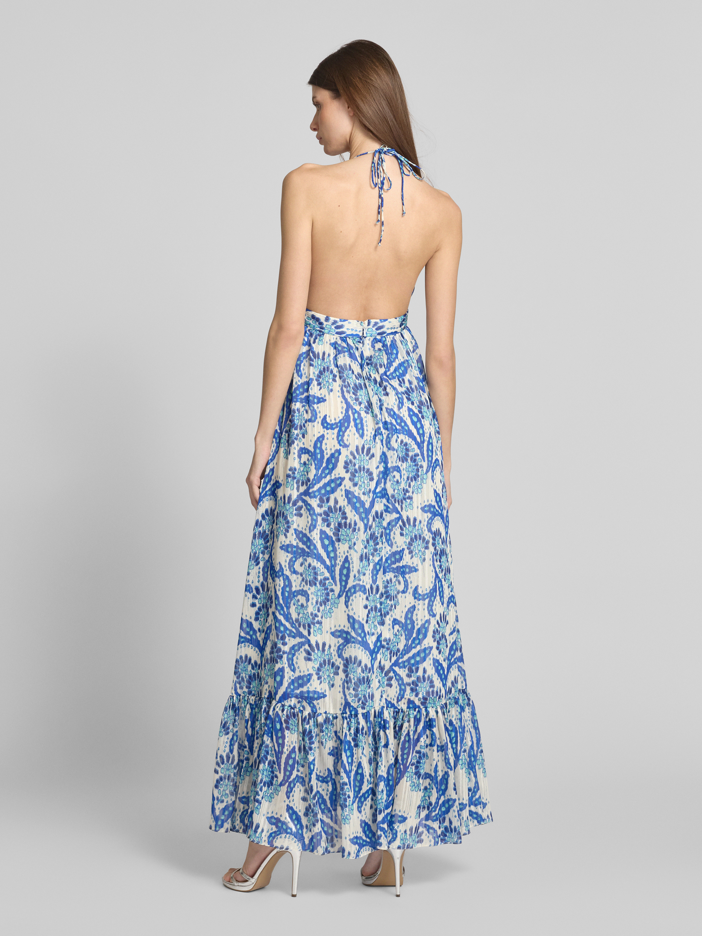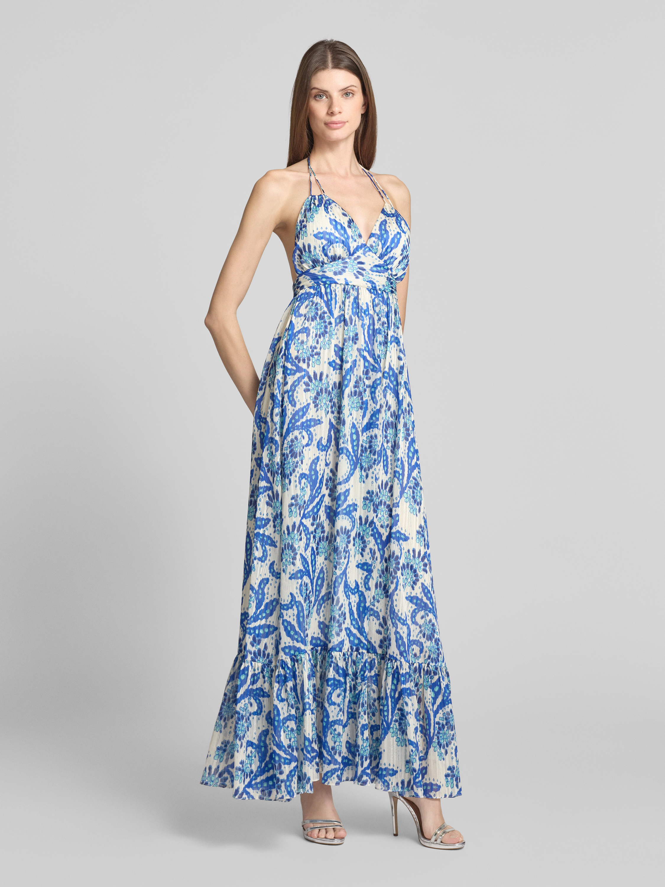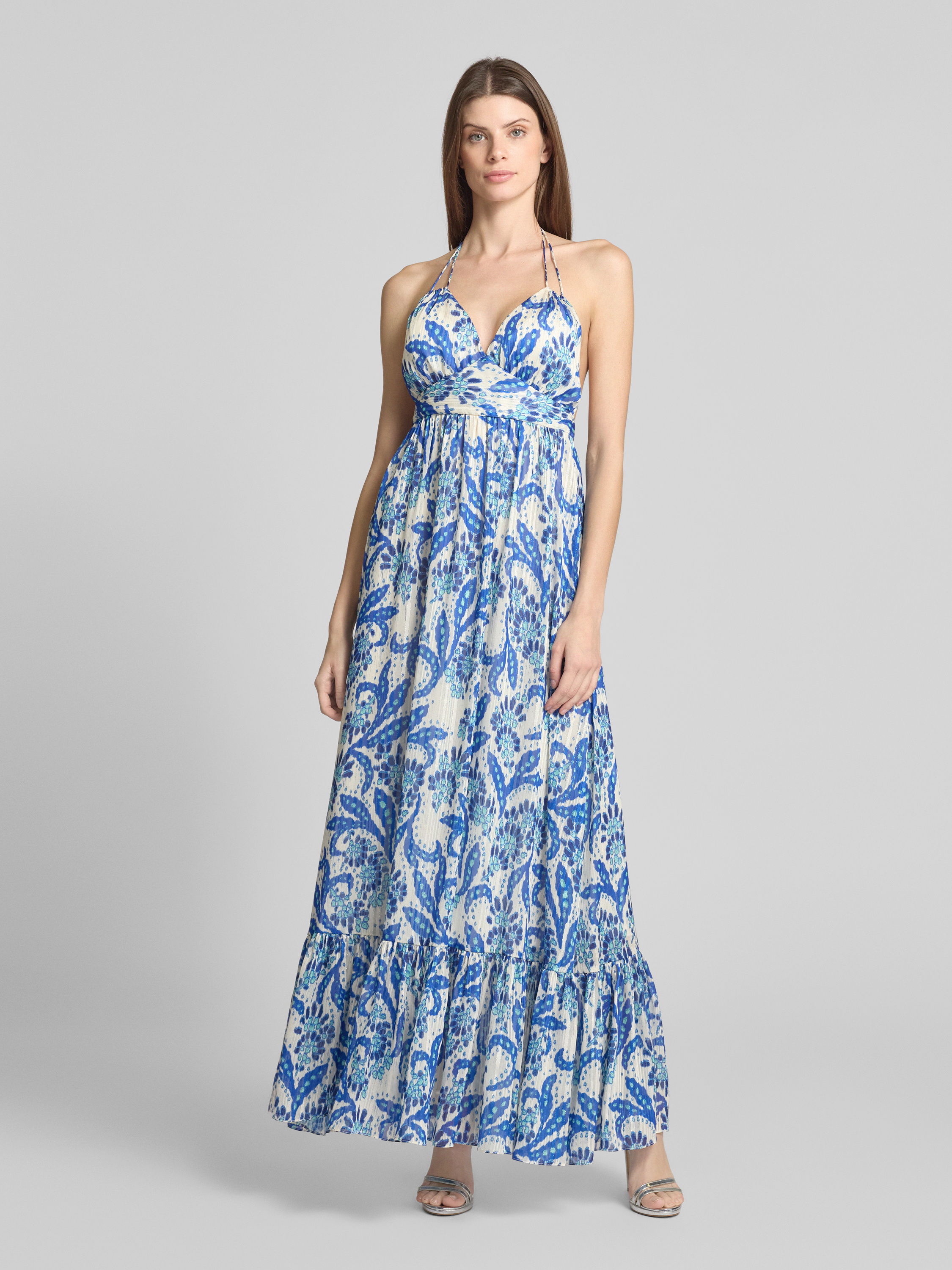 Sukienka wieczorowa z tasiemką w talii - niebieski