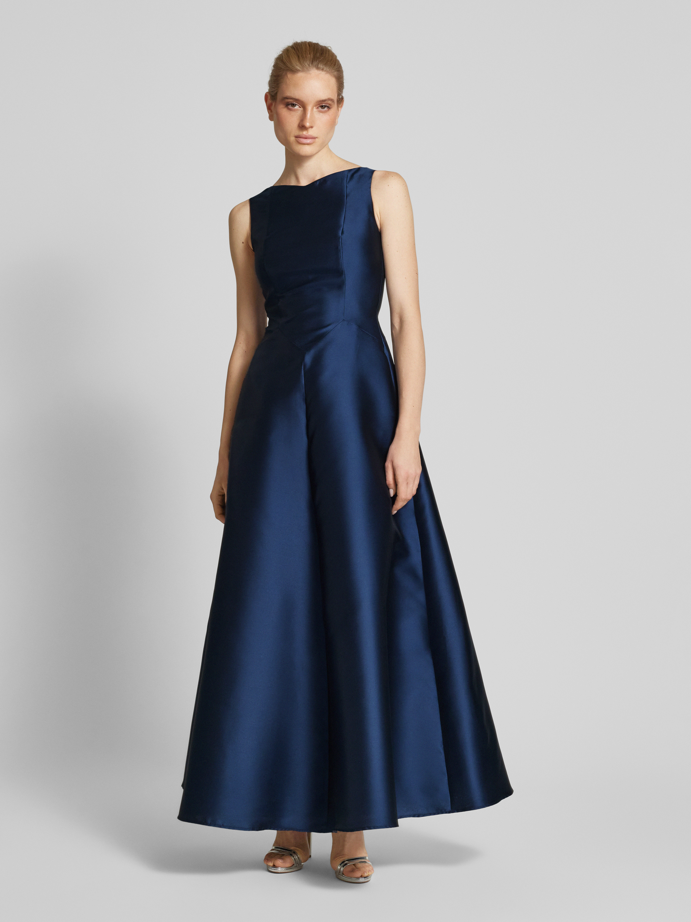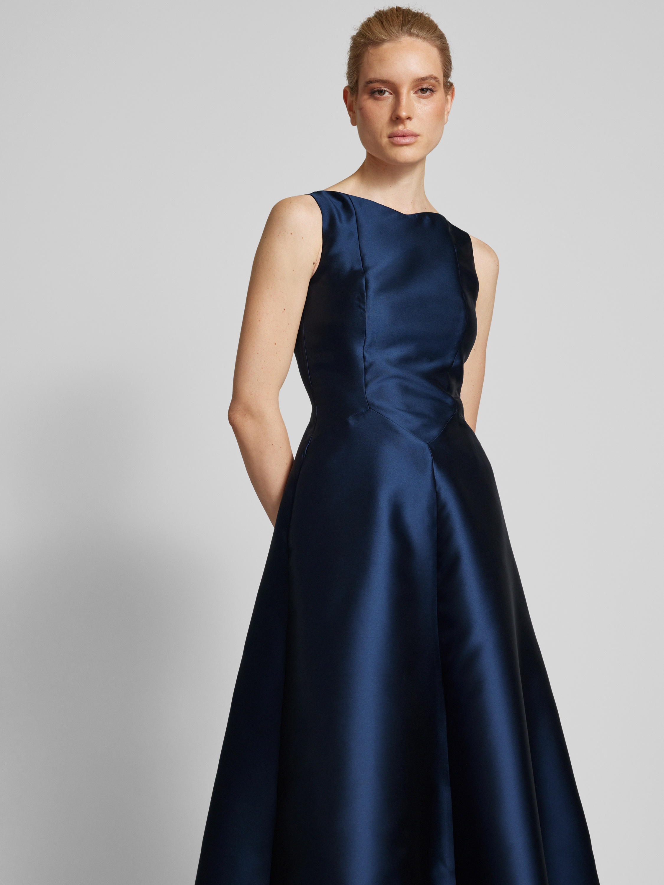 Sukienka wieczorowa z wpuszczanymi kieszeniami - granatowy