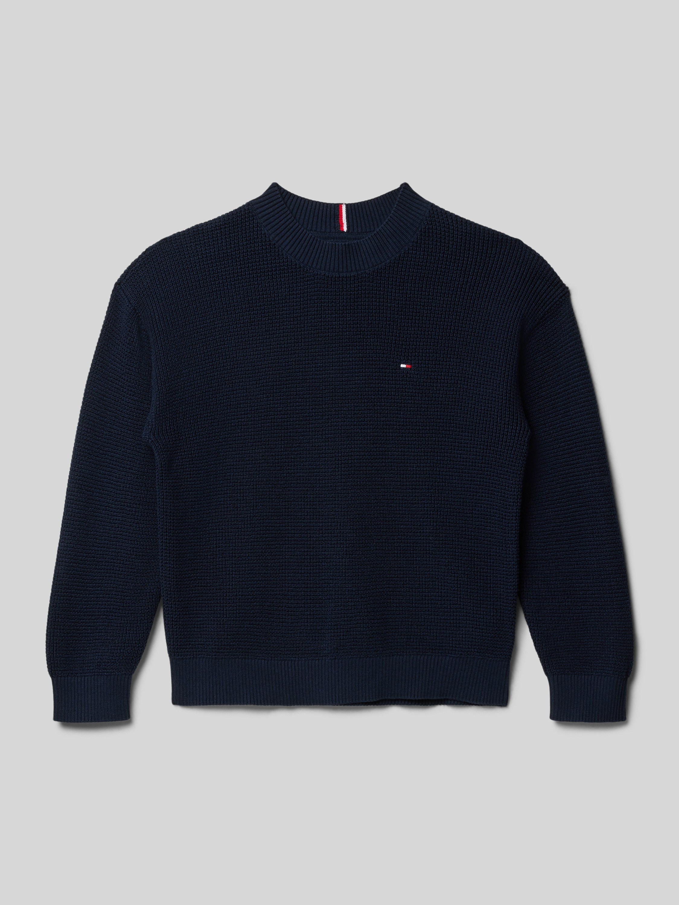 Sweter z dzianiny o kroju regular fit z czystej bawełny - granatowy
