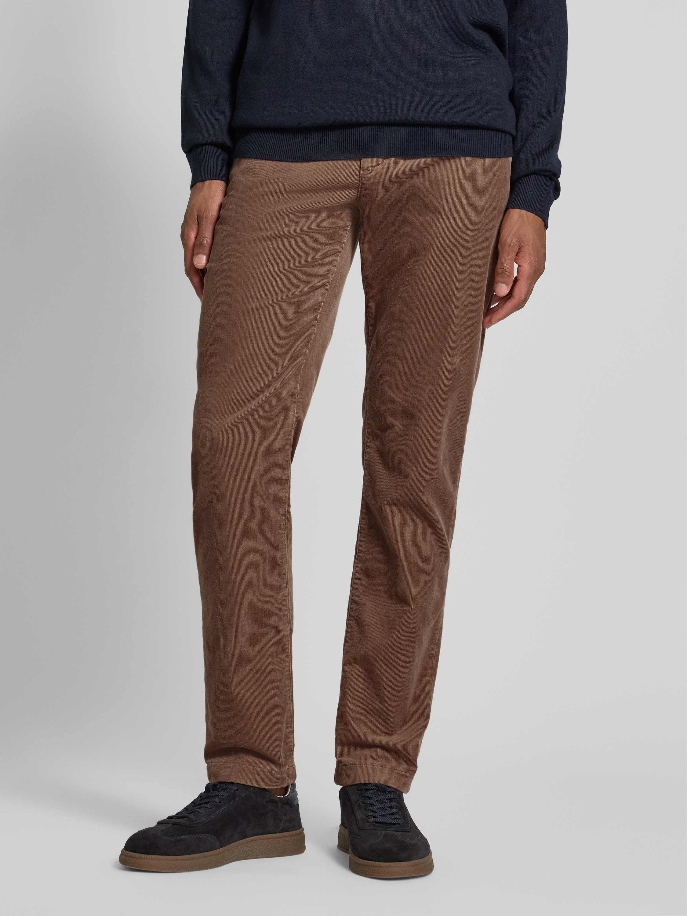 Spodnie sztruksowe z prostą nogawką z mieszanki bawełny model ‘DENTON’ - beżowy