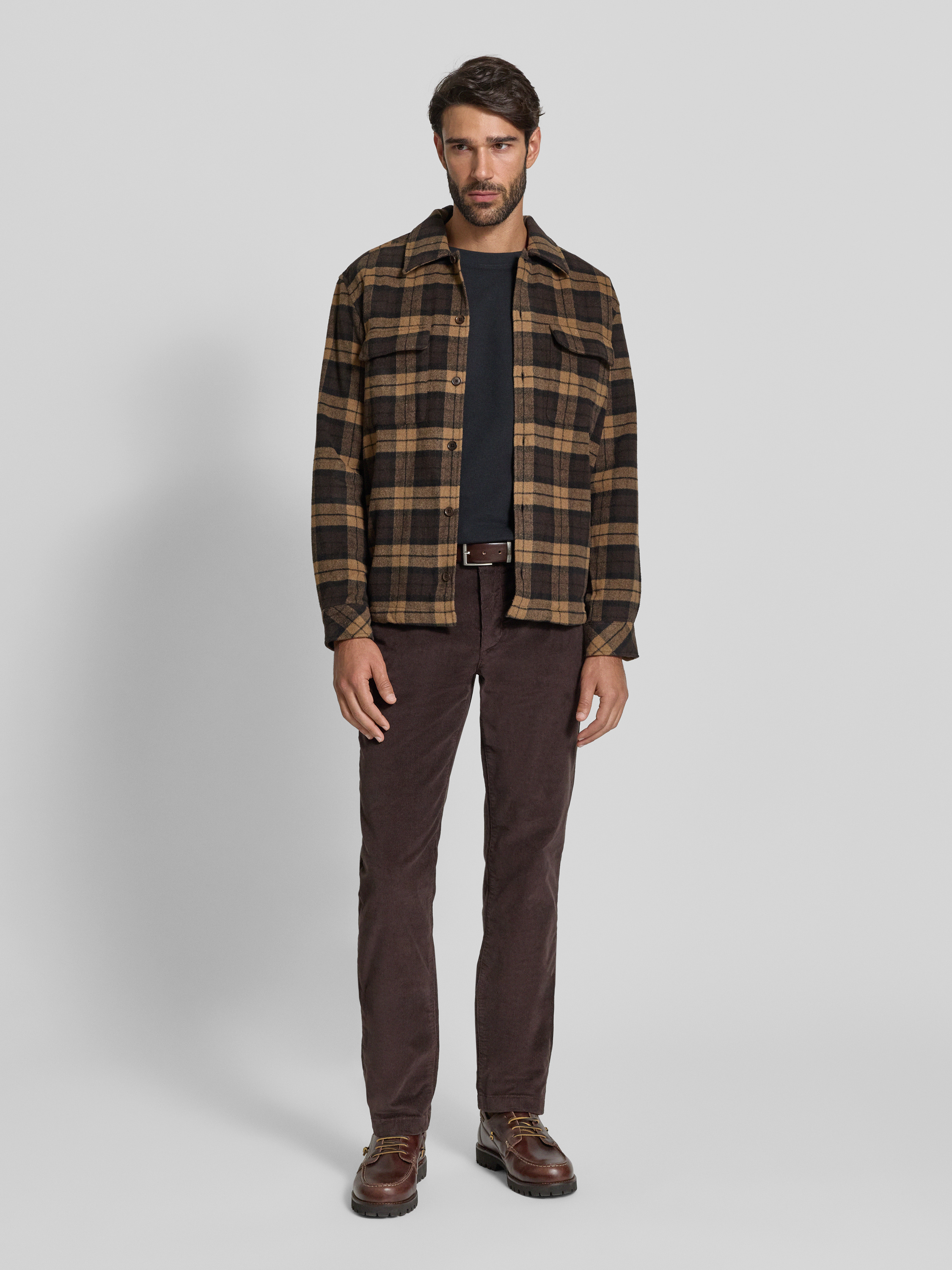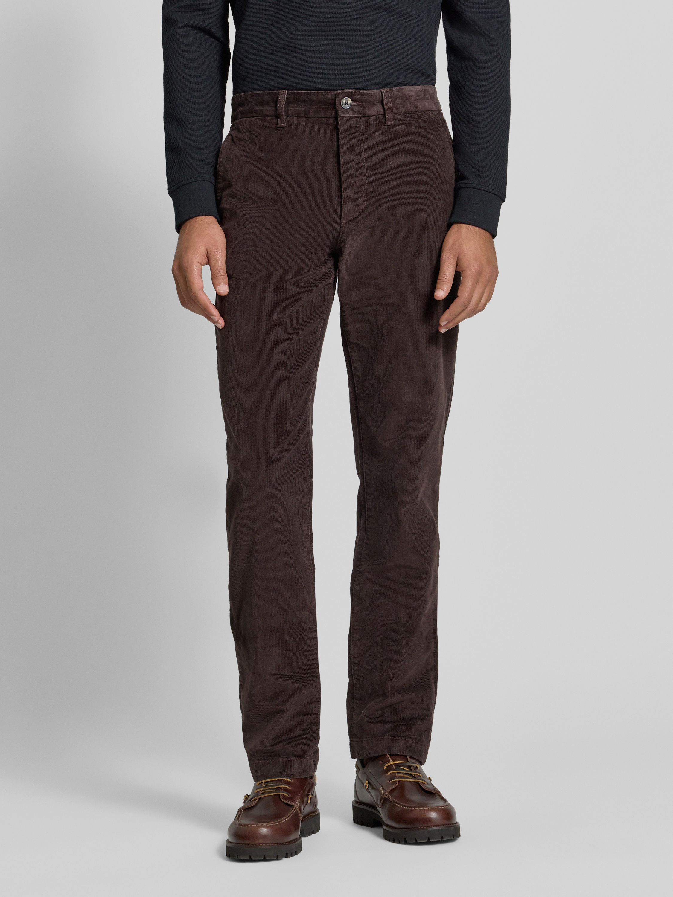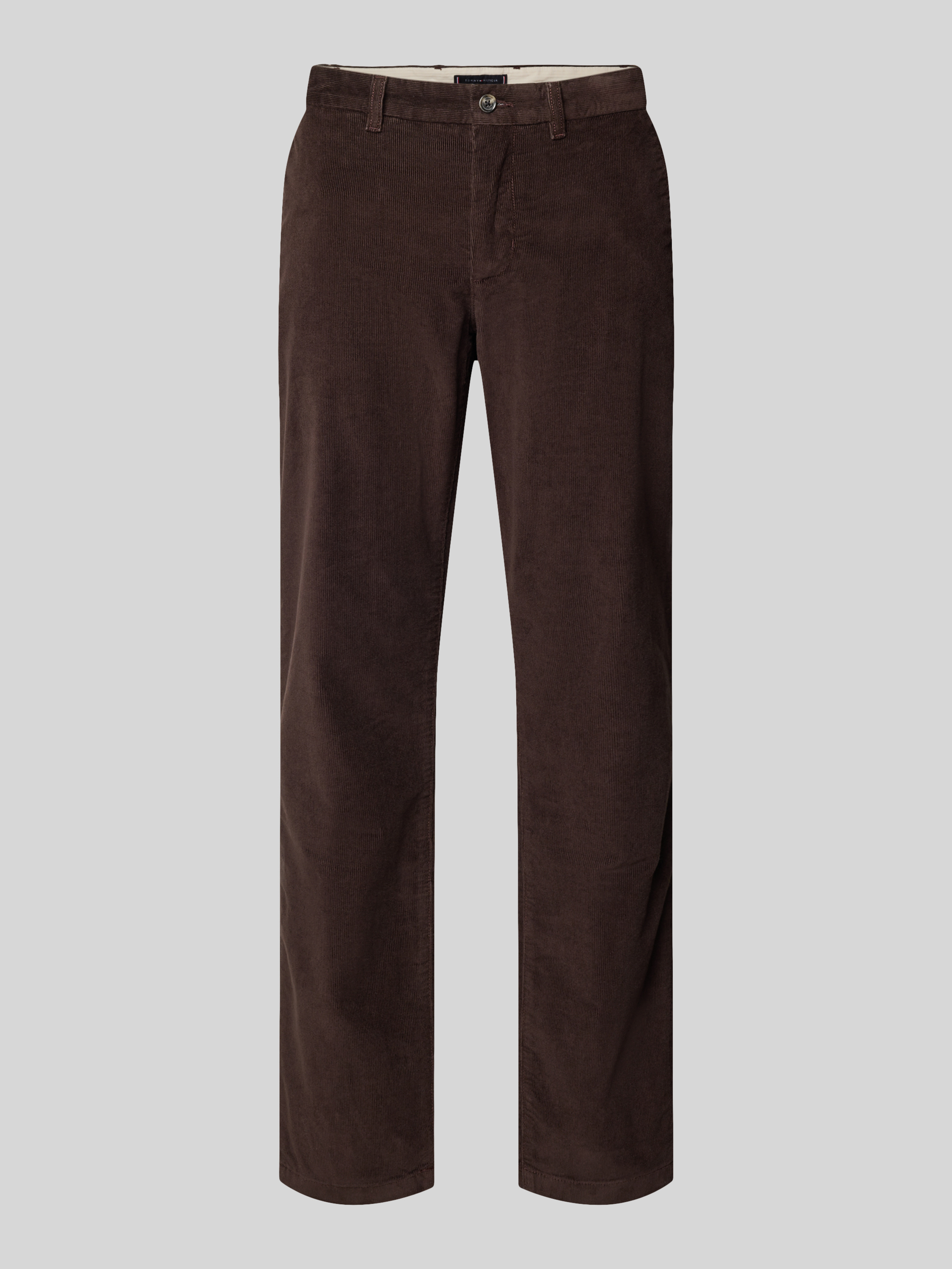 Spodnie sztruksowe z prostą nogawką z mieszanki bawełny model ‘DENTON’ - ciemnobrązowy