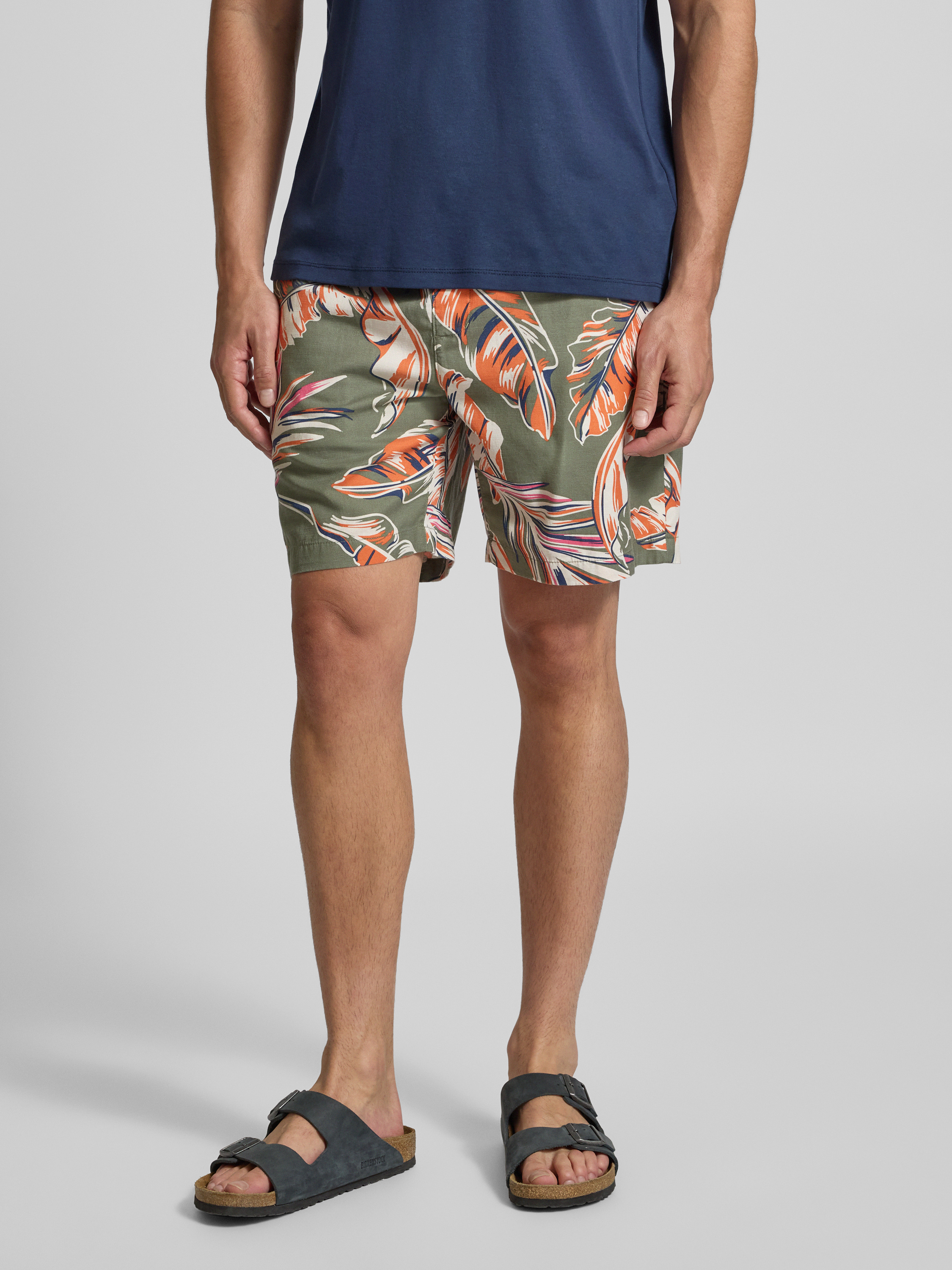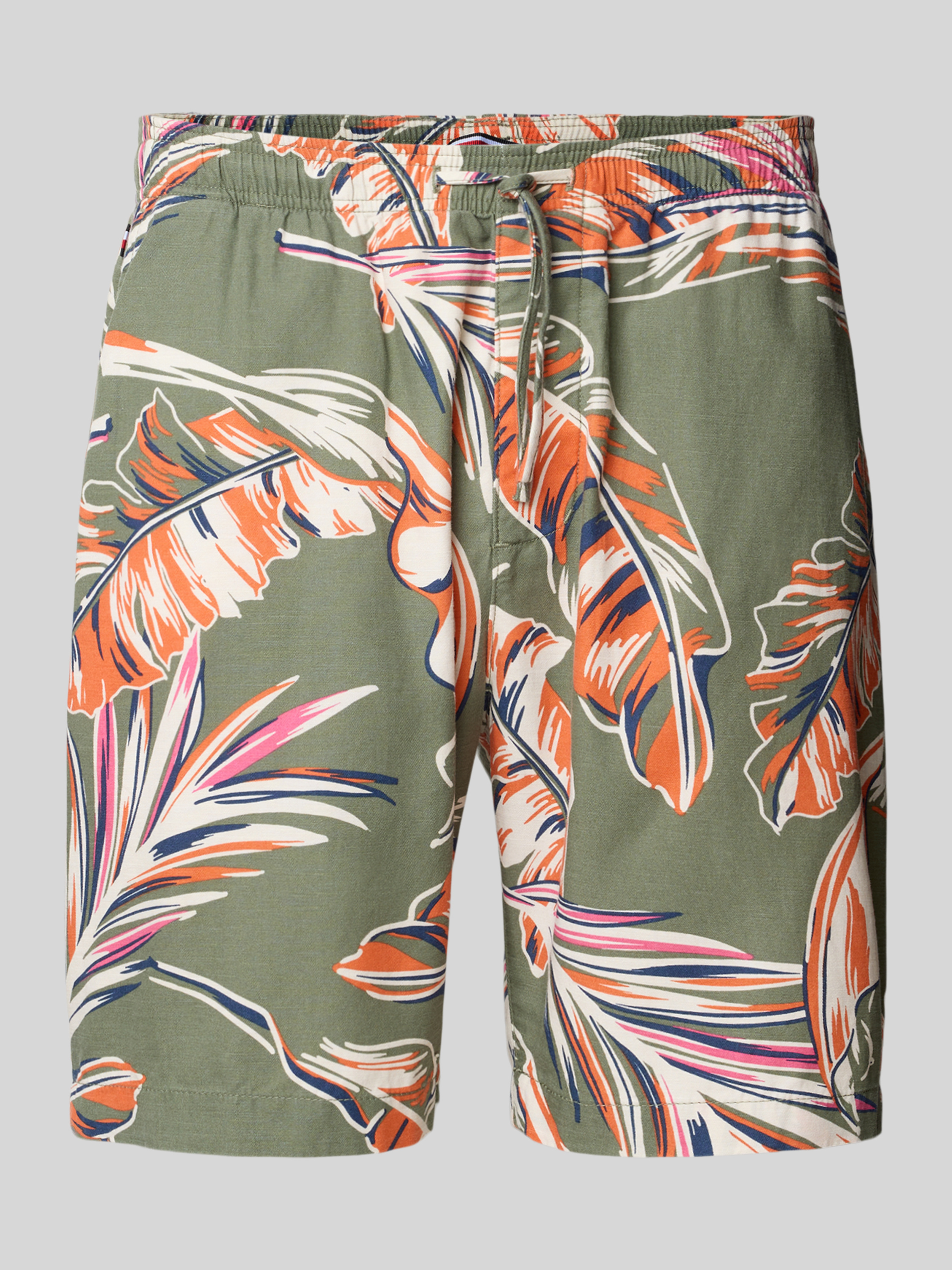 Bermudy o kroju regular fit ze wzorem na całej powierzchni - oliwkowy