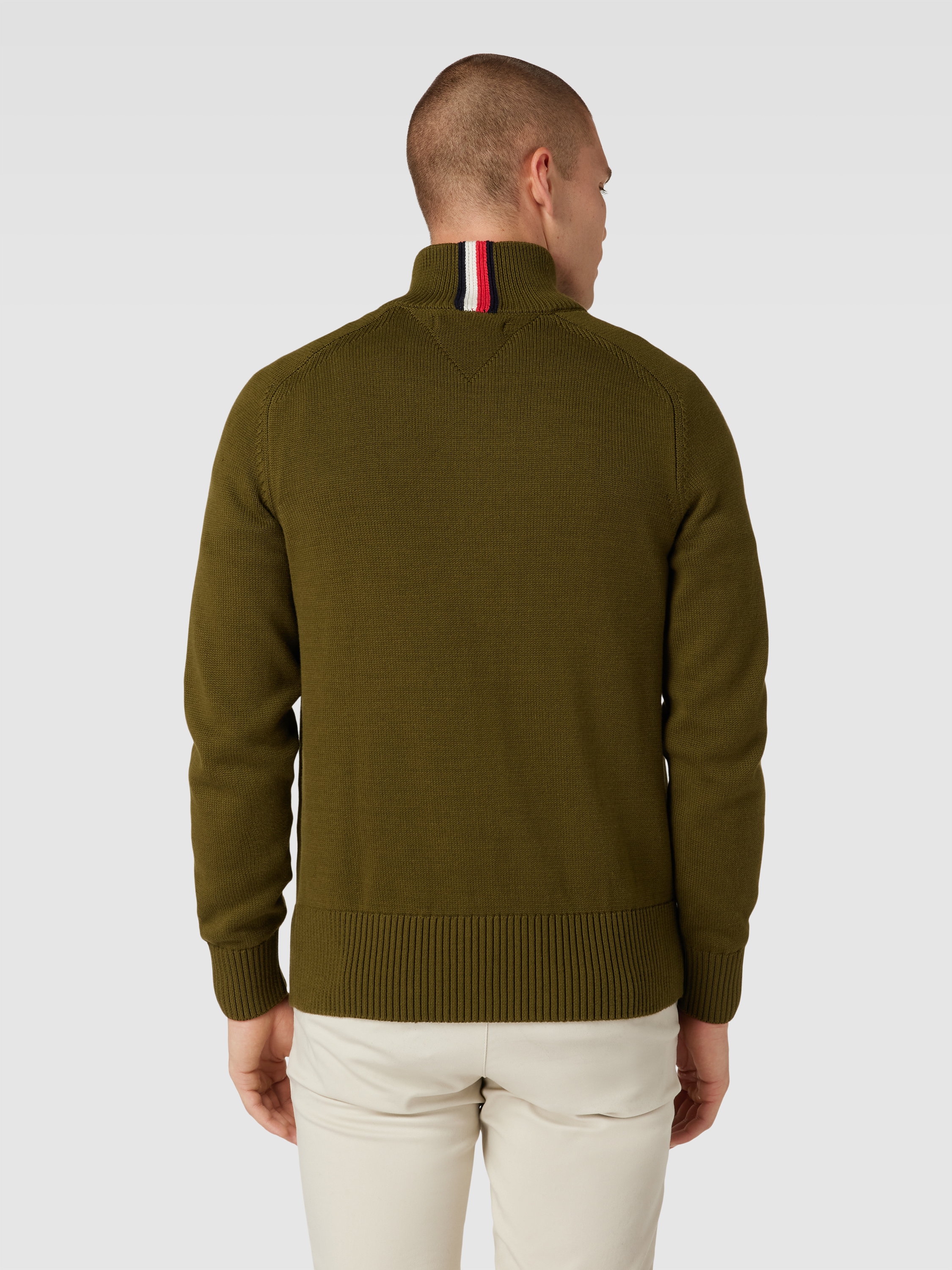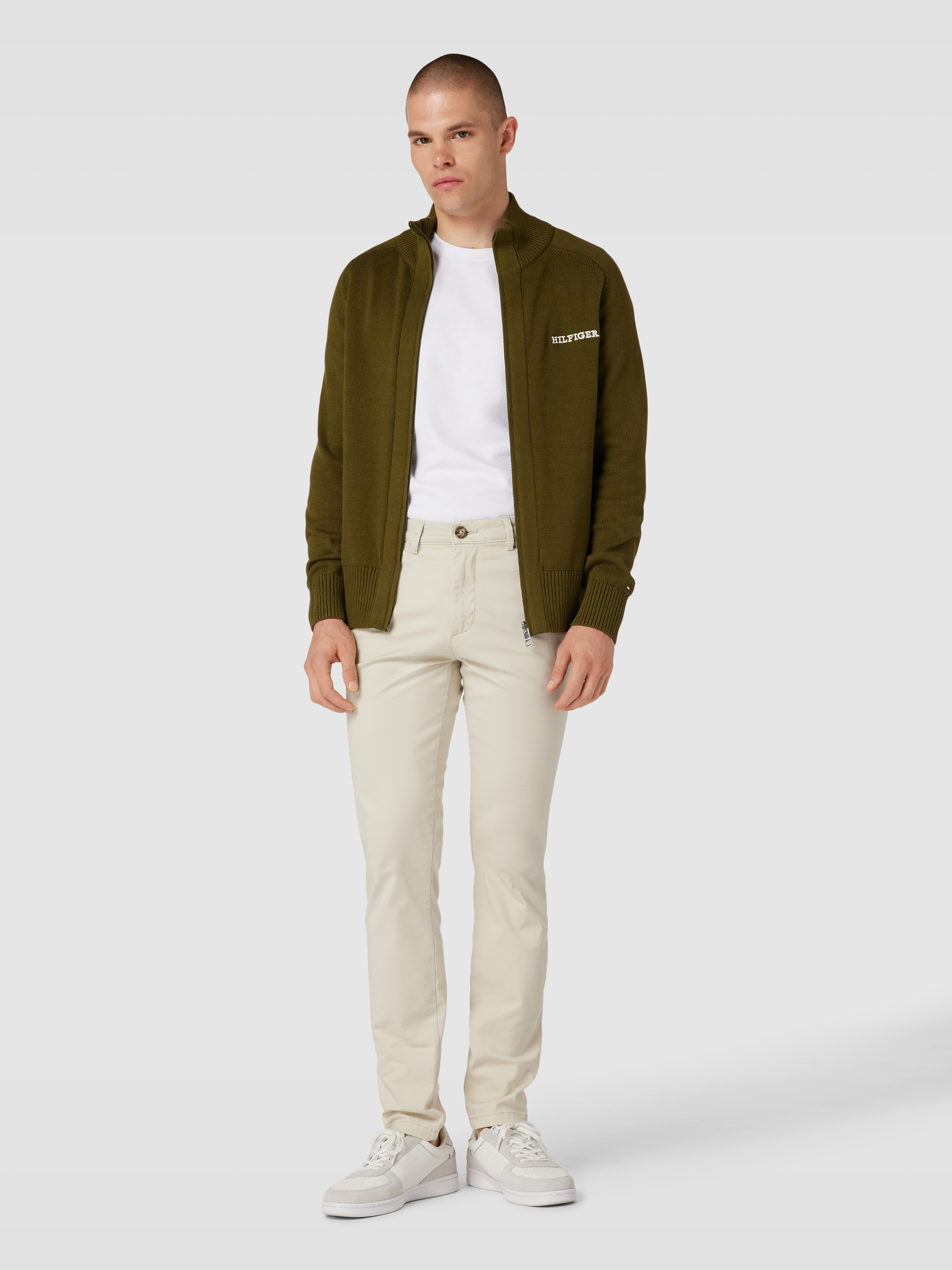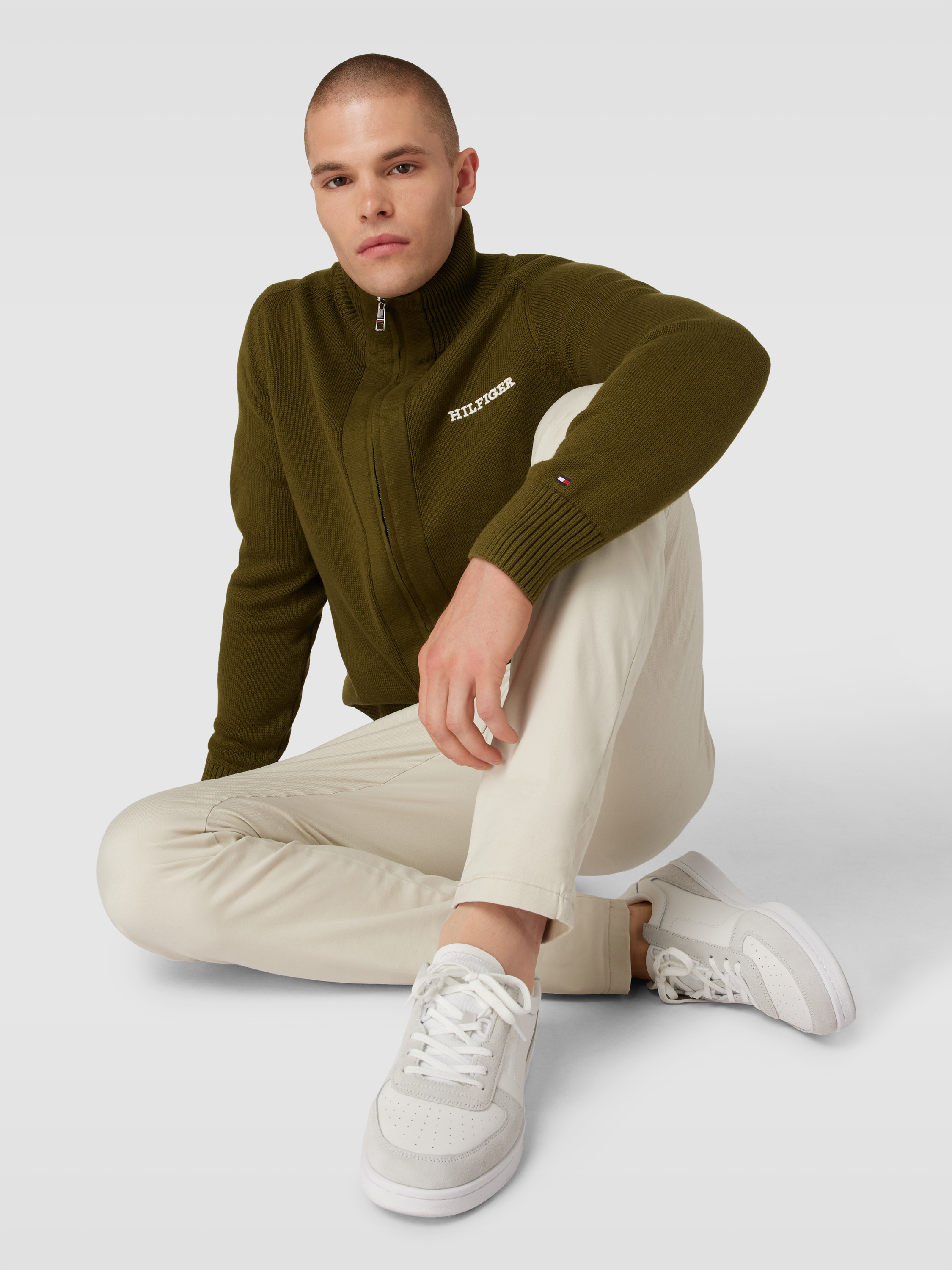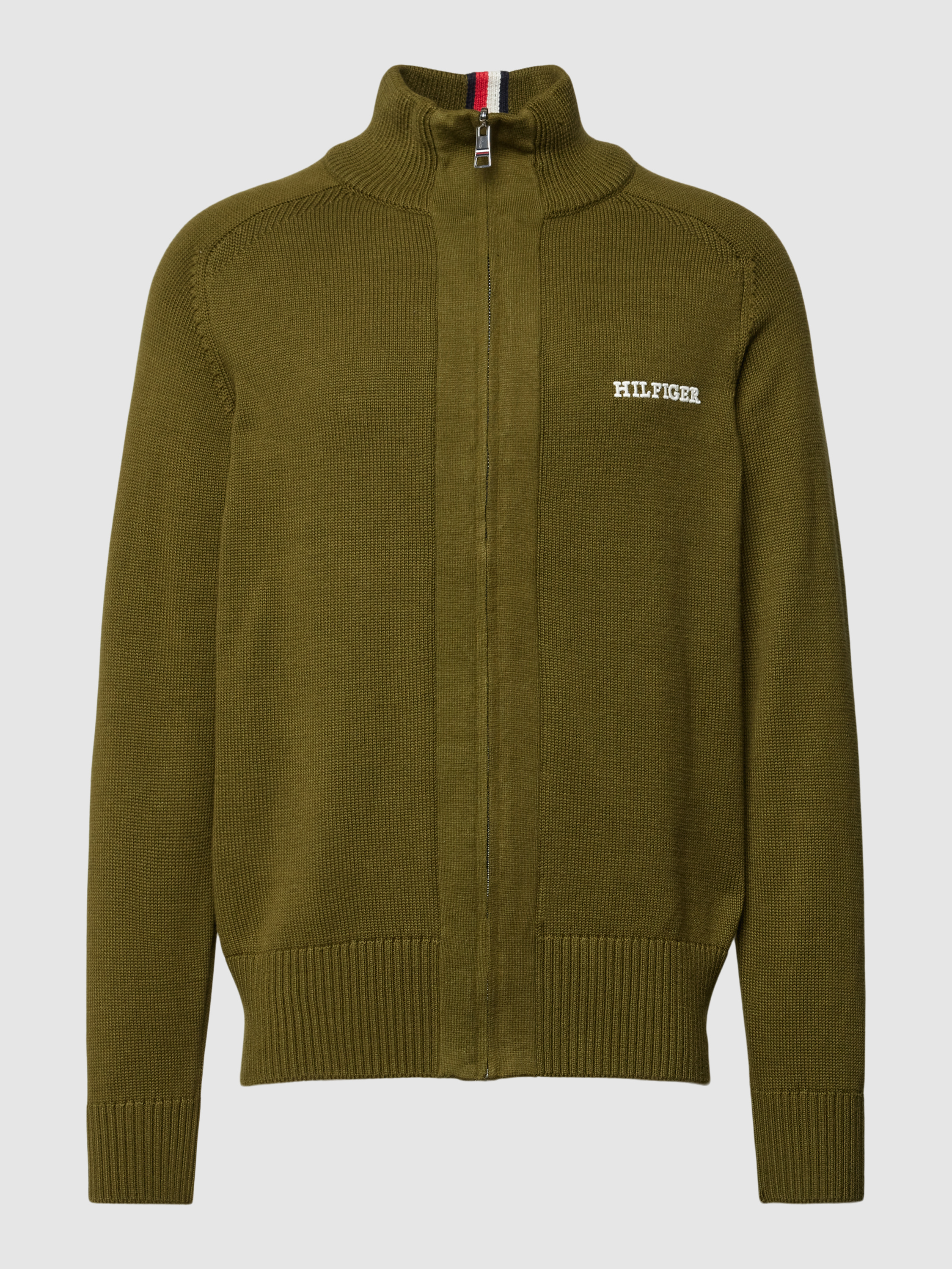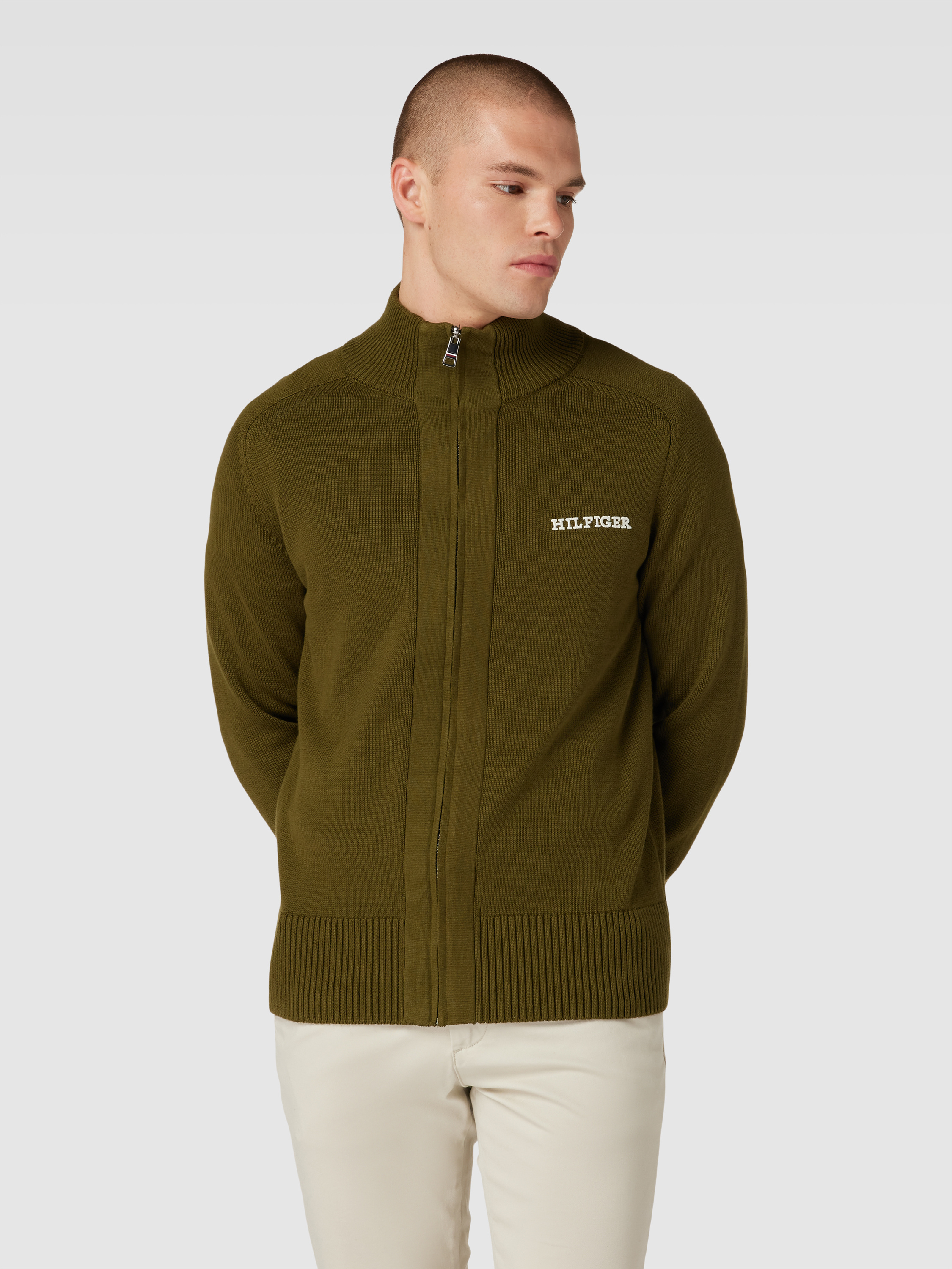 Kurtka z dzianiny z wyhaftowanym logo model ‘MONOTYPE’ - oliwkowy