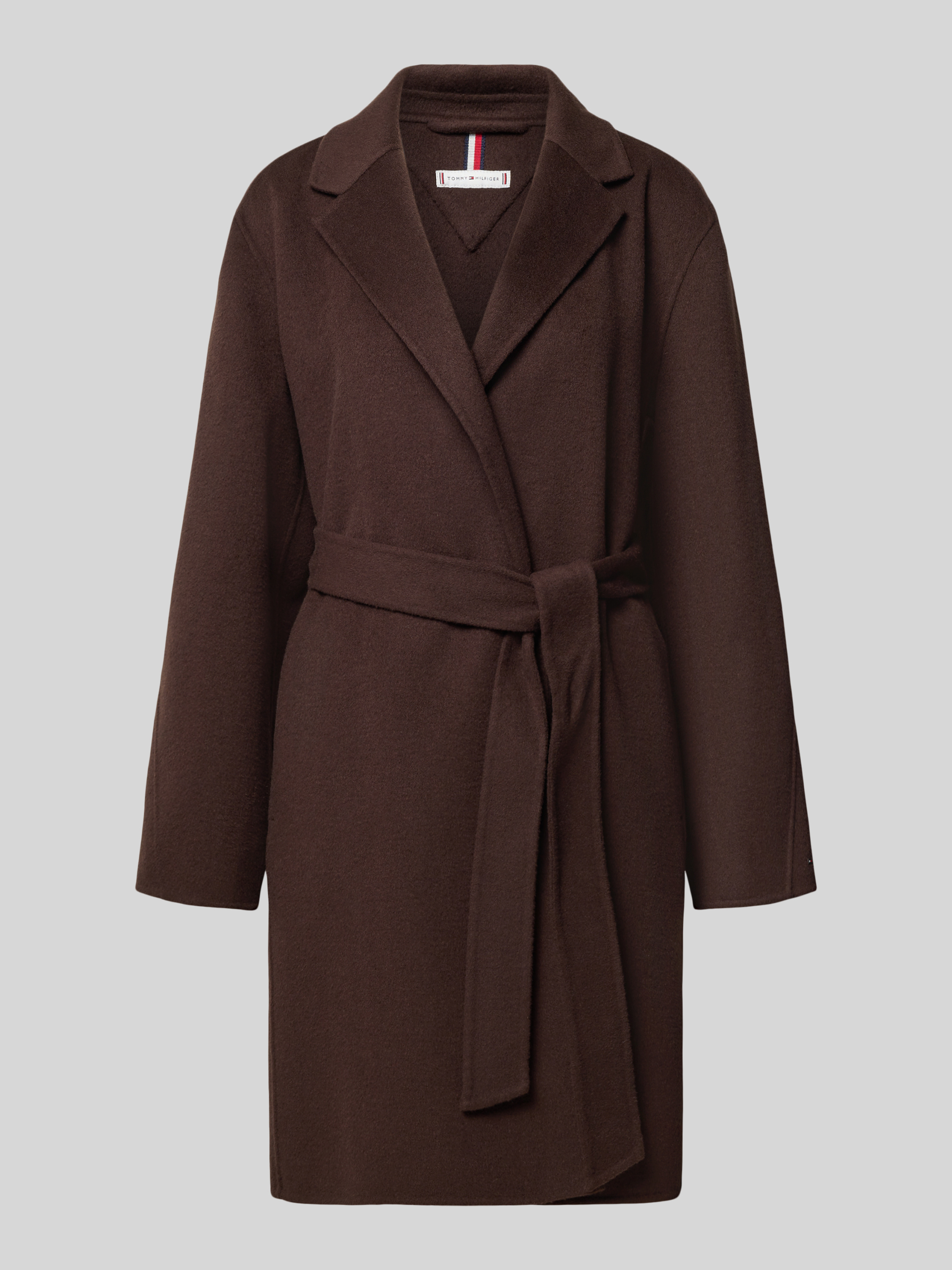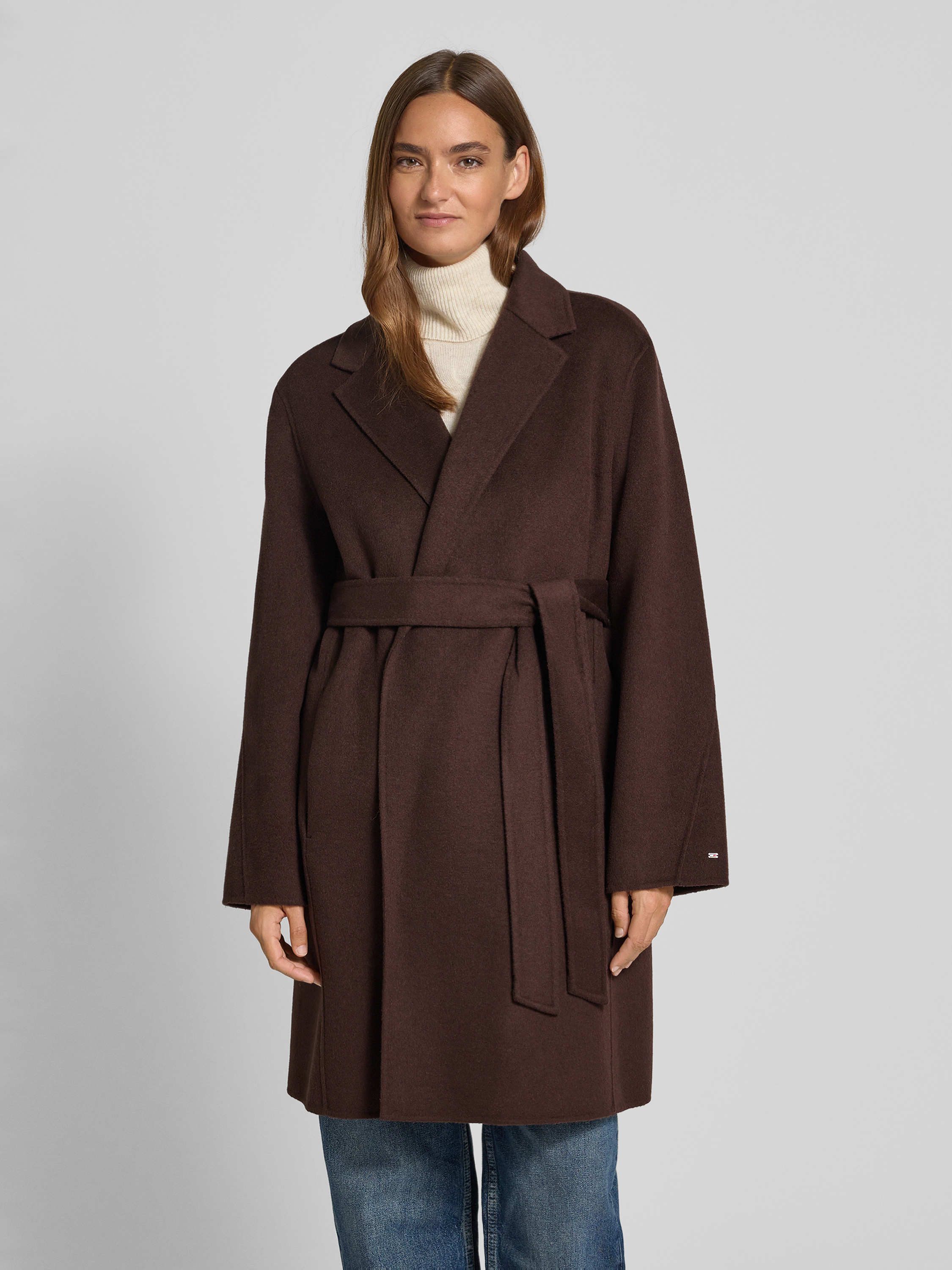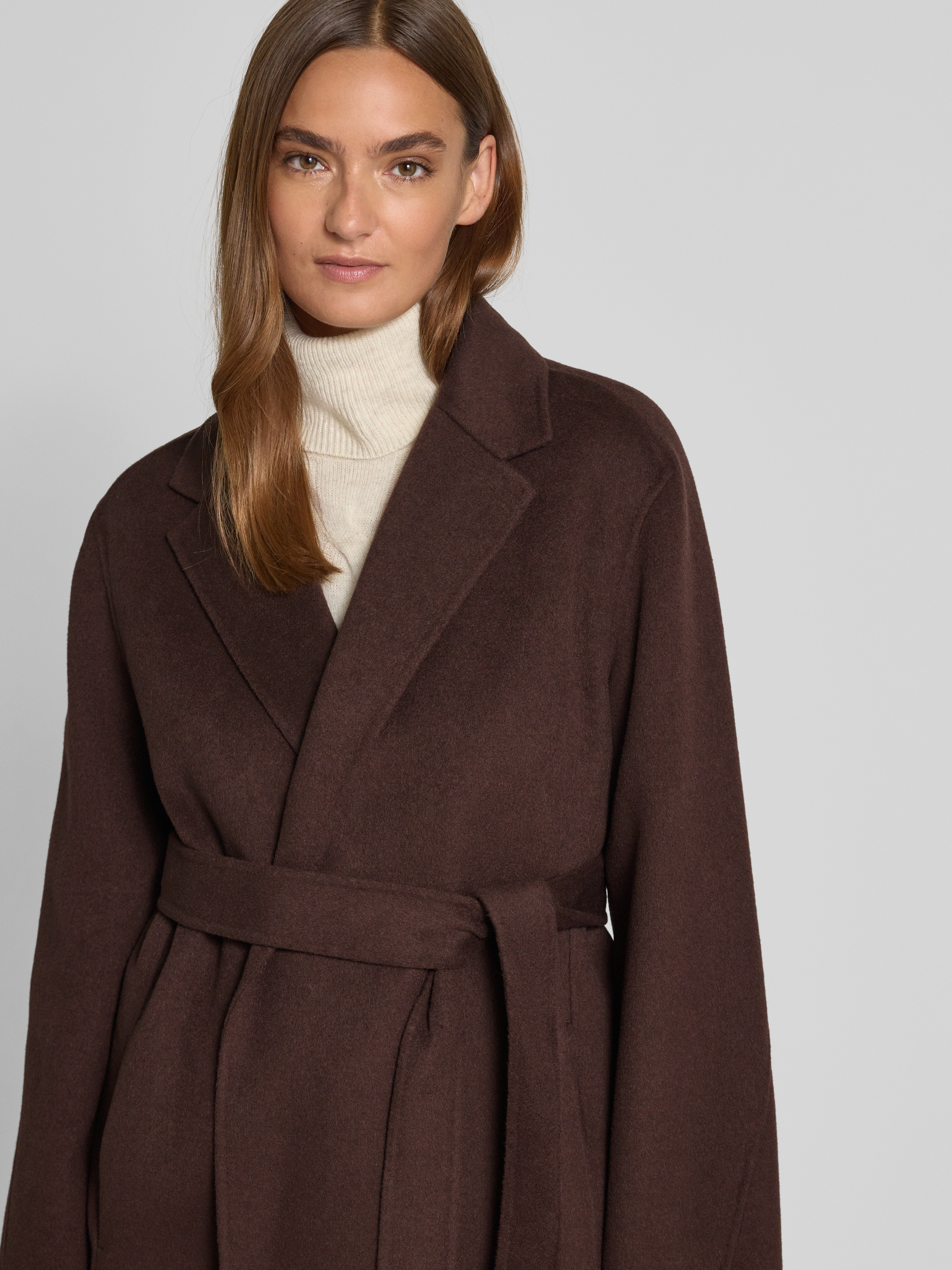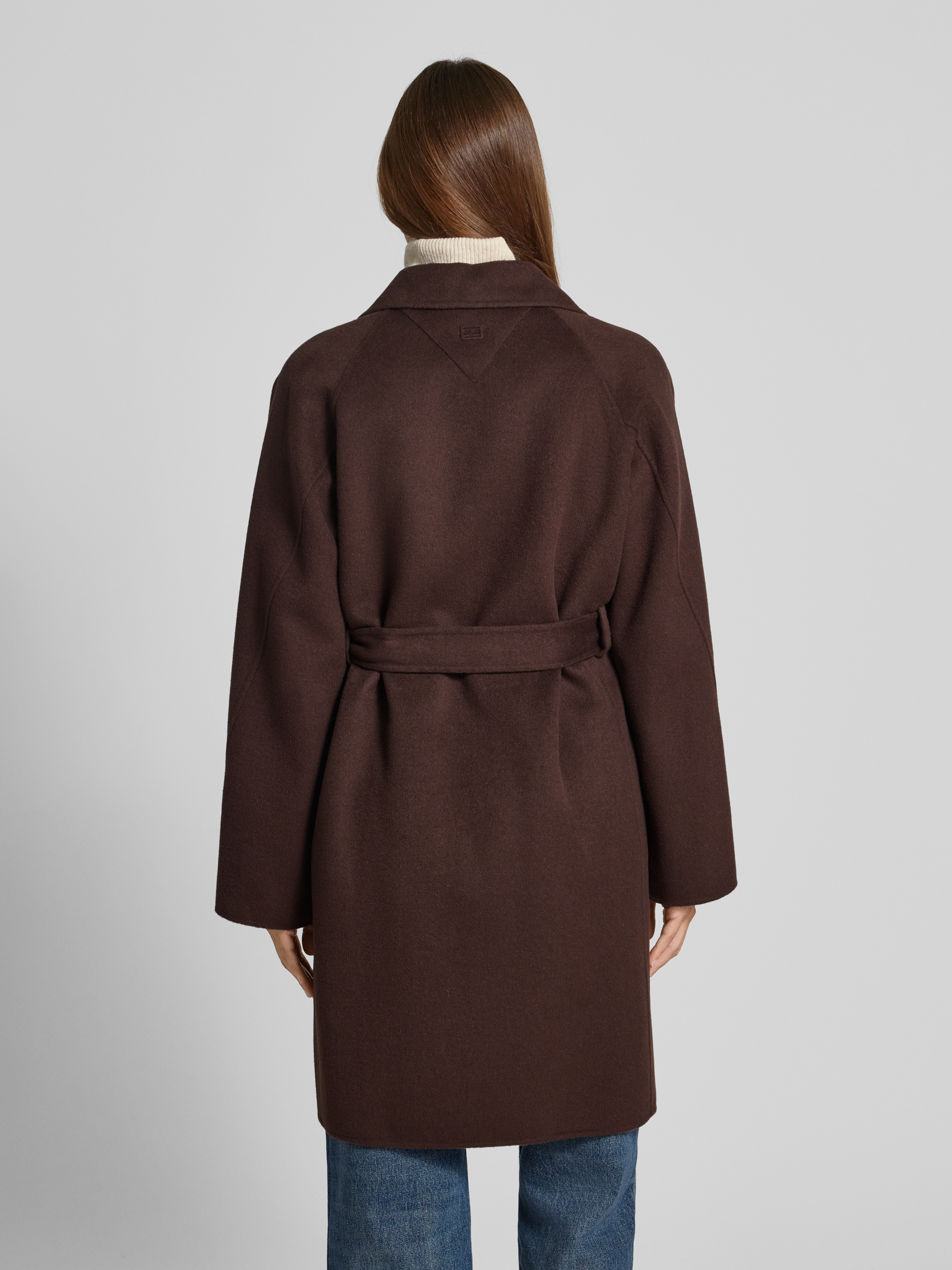 Płaszcz o kroju regular fit z mieszanki wełny - ciemnobrązowy