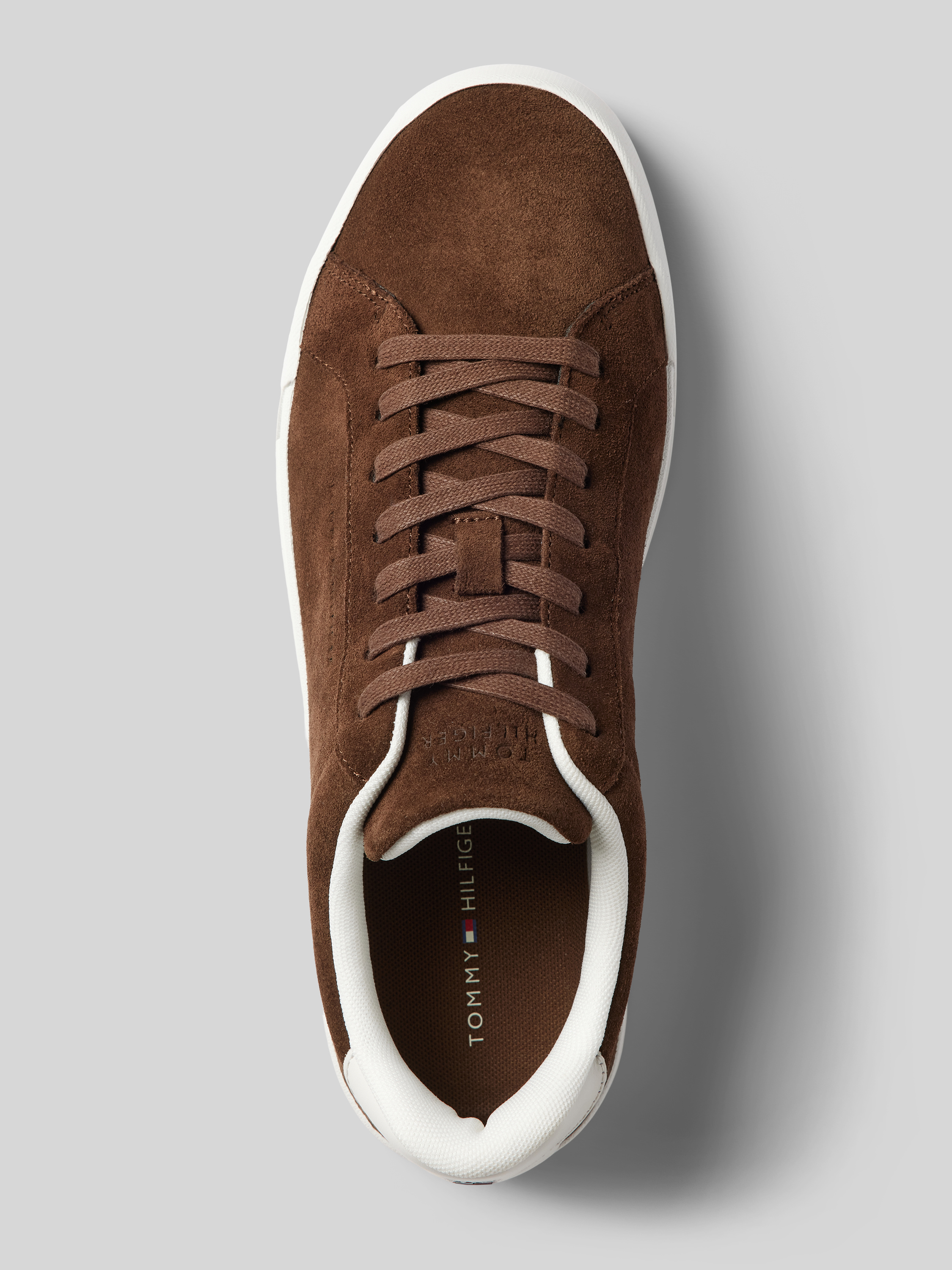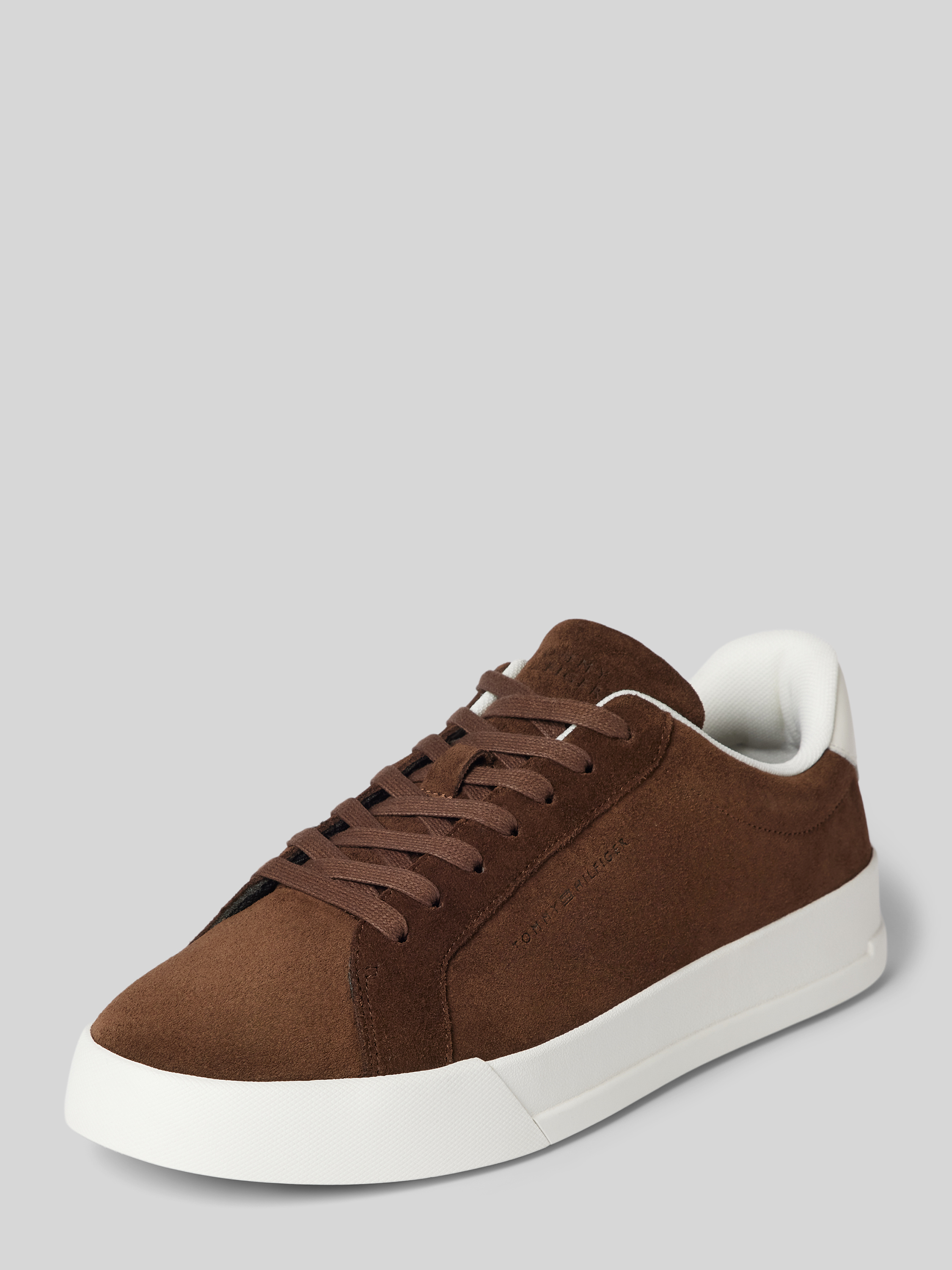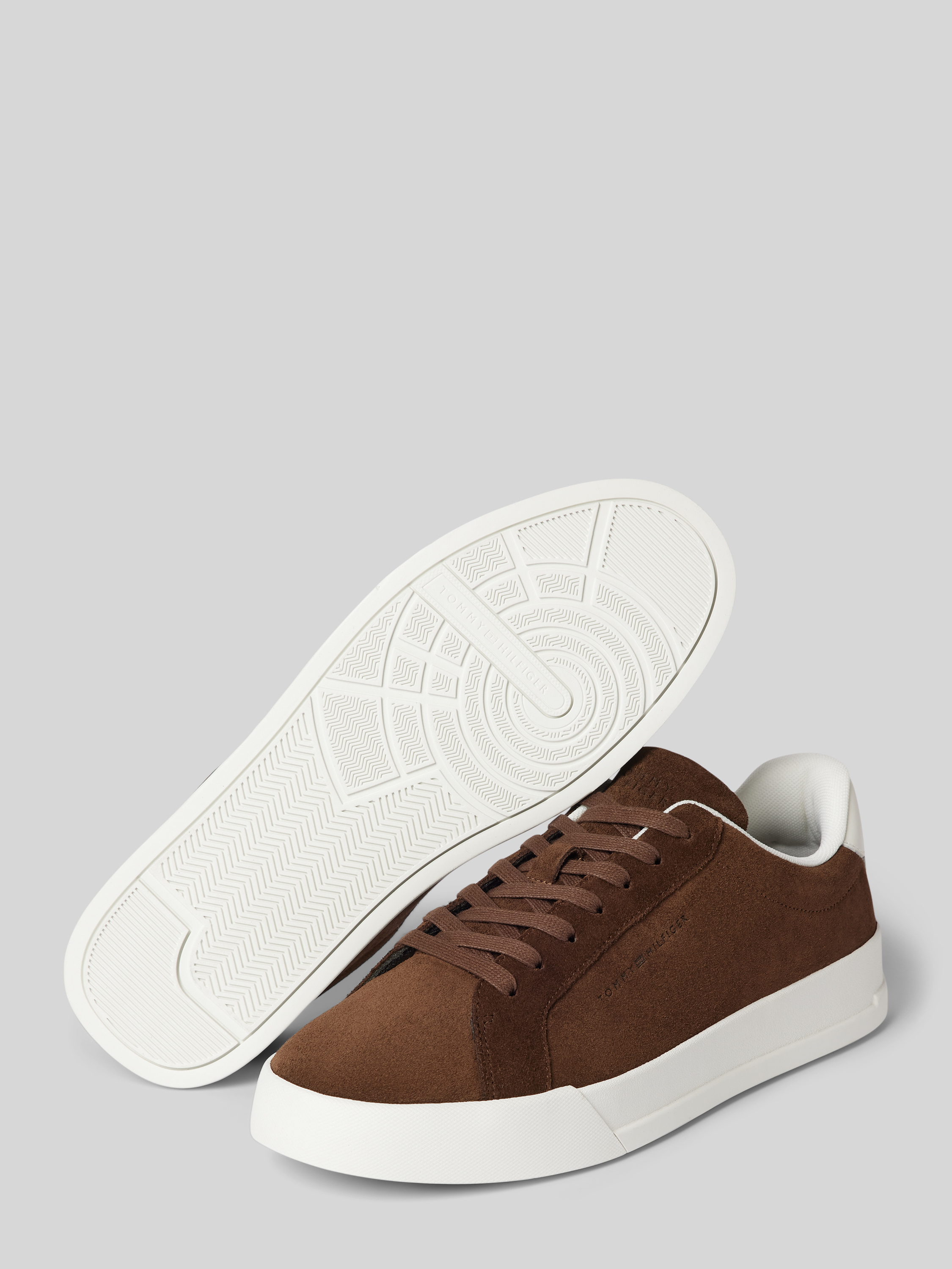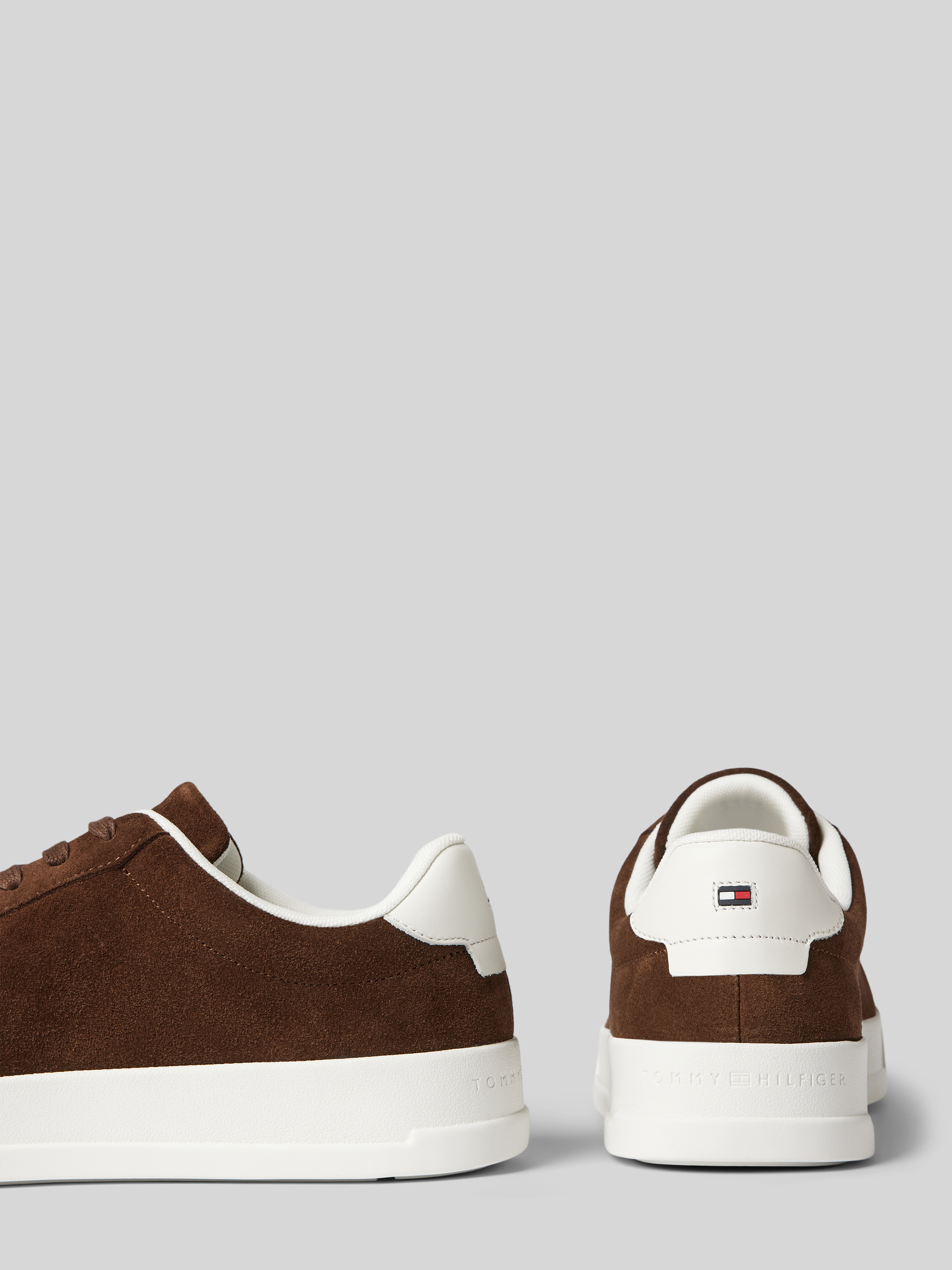 Sneakersy ze skóry z detalami z logo model ‘COURT BETTER’ - ciemnobrązowy