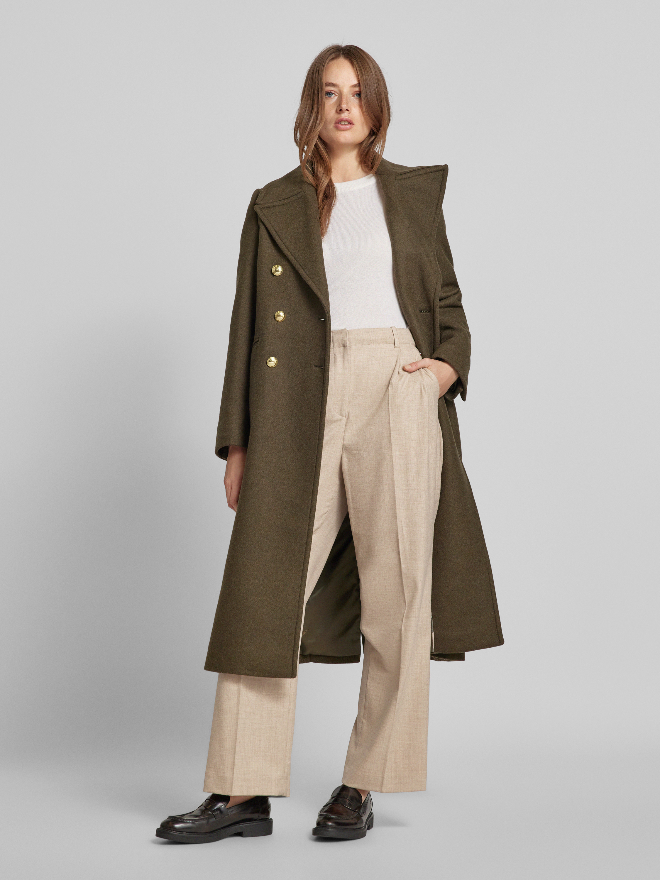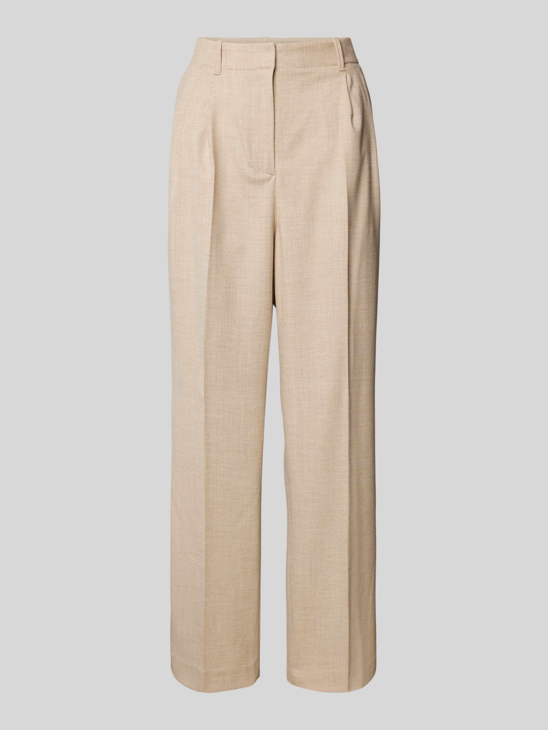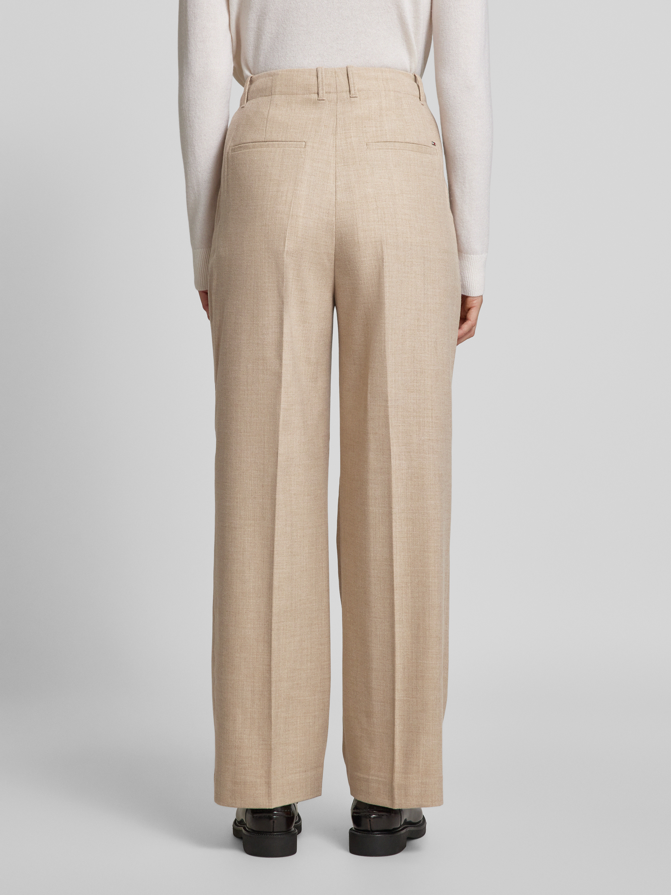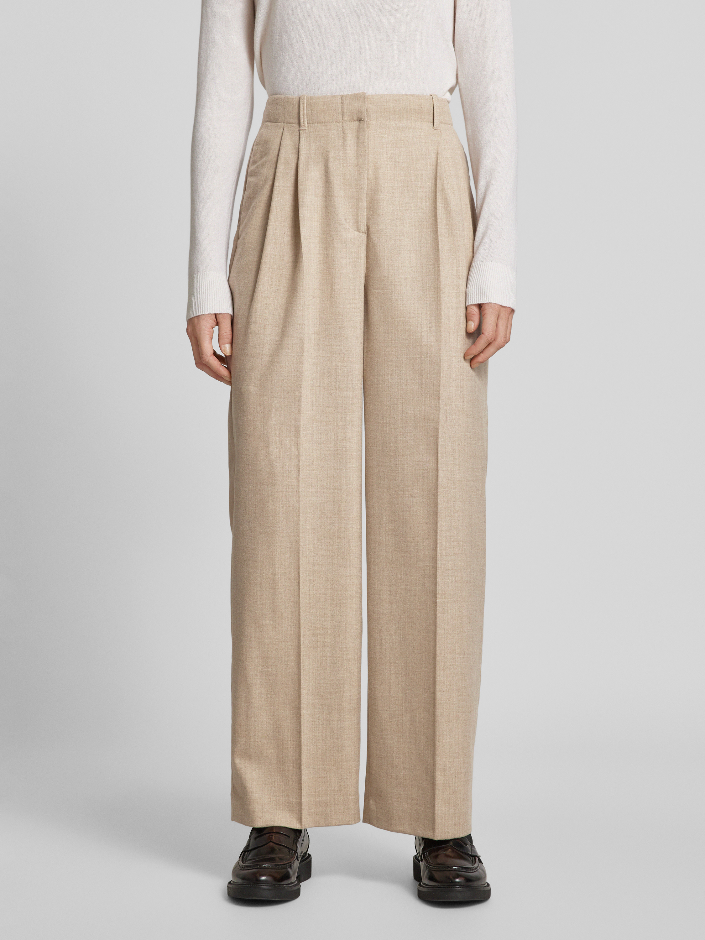 Spodnie wełniane z szeroką nogawką i zakładkami w pasie - beżowy