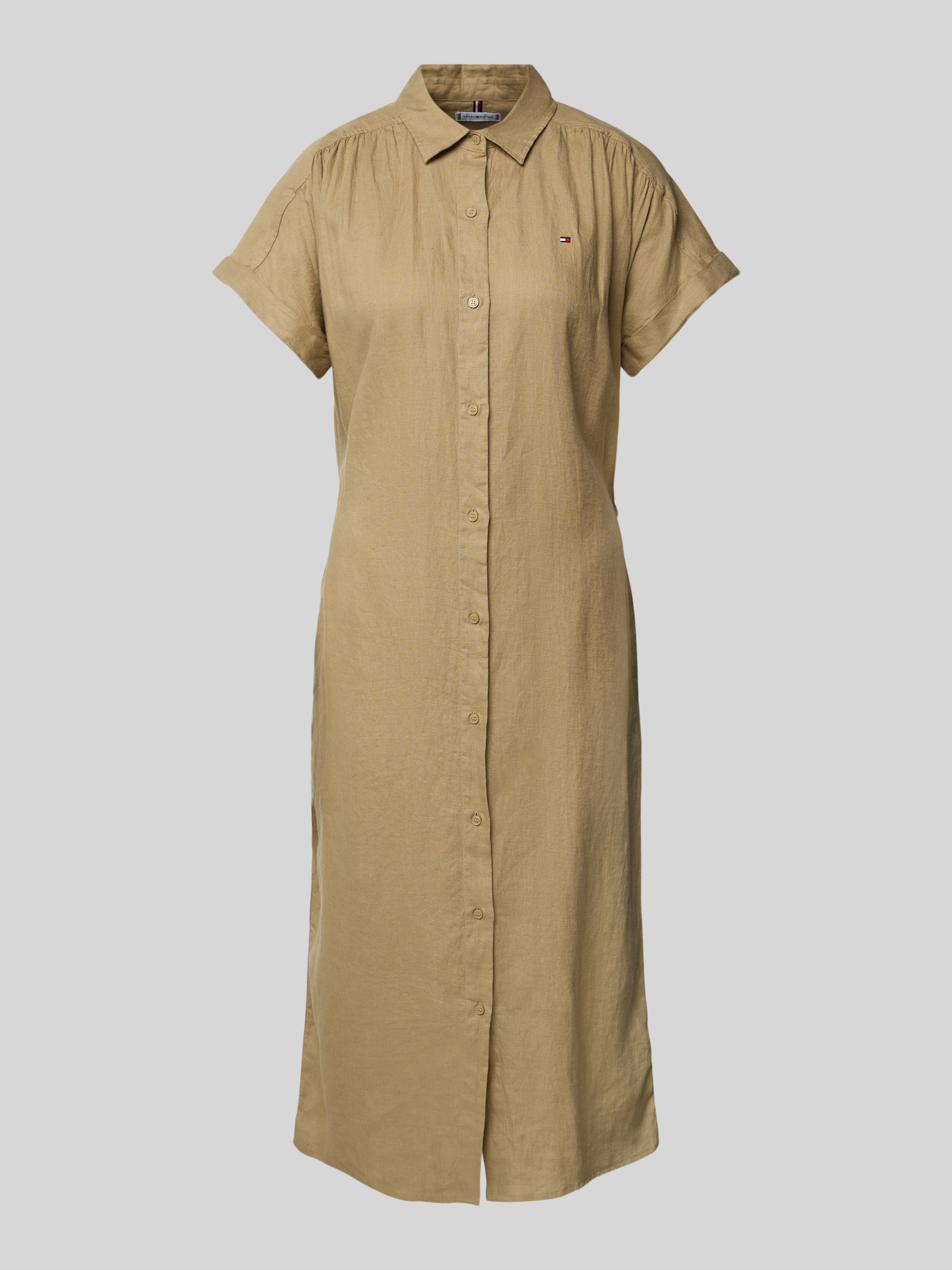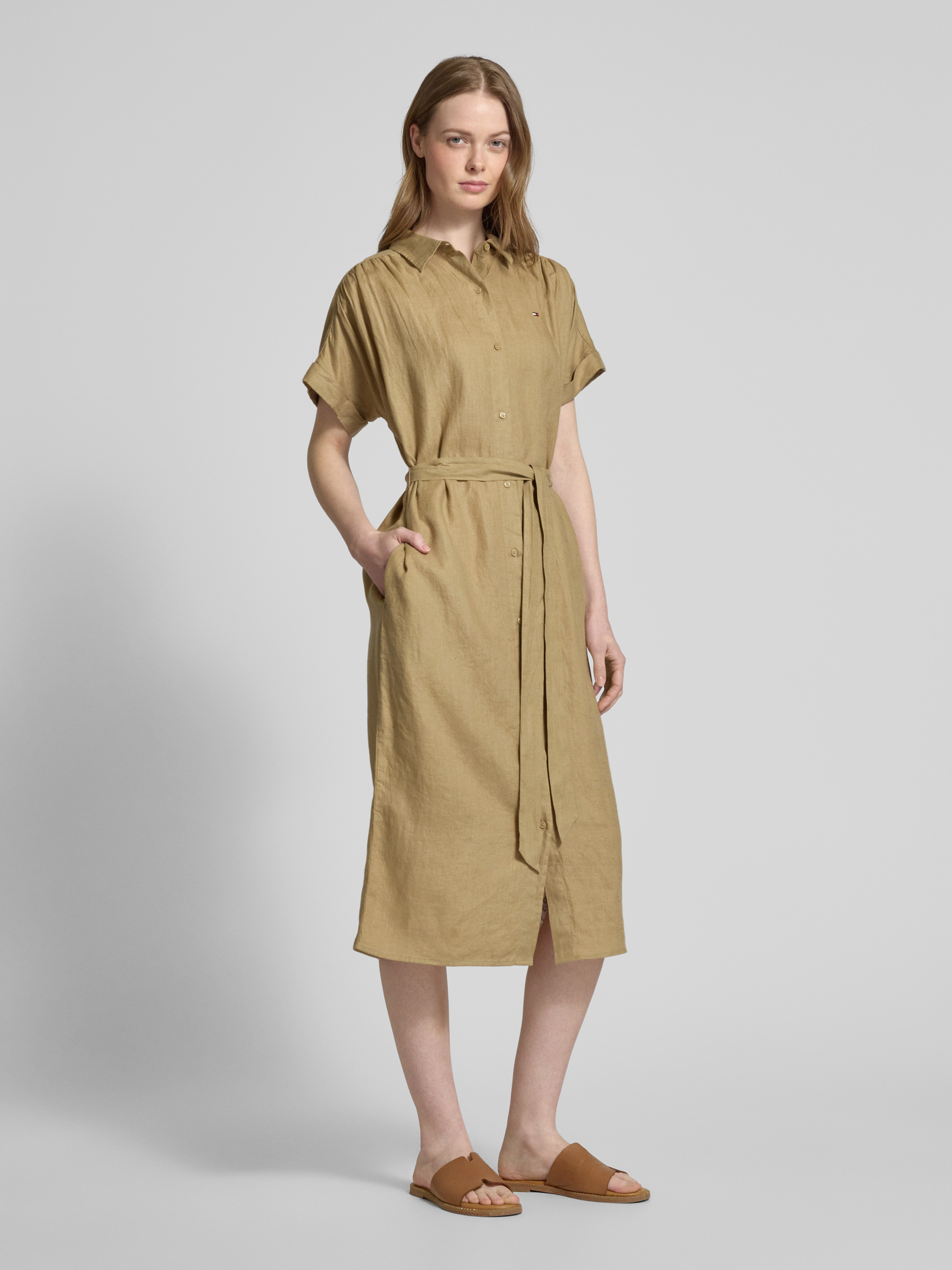 Sukienka koszulowa taliowana z czystego lnu - camel