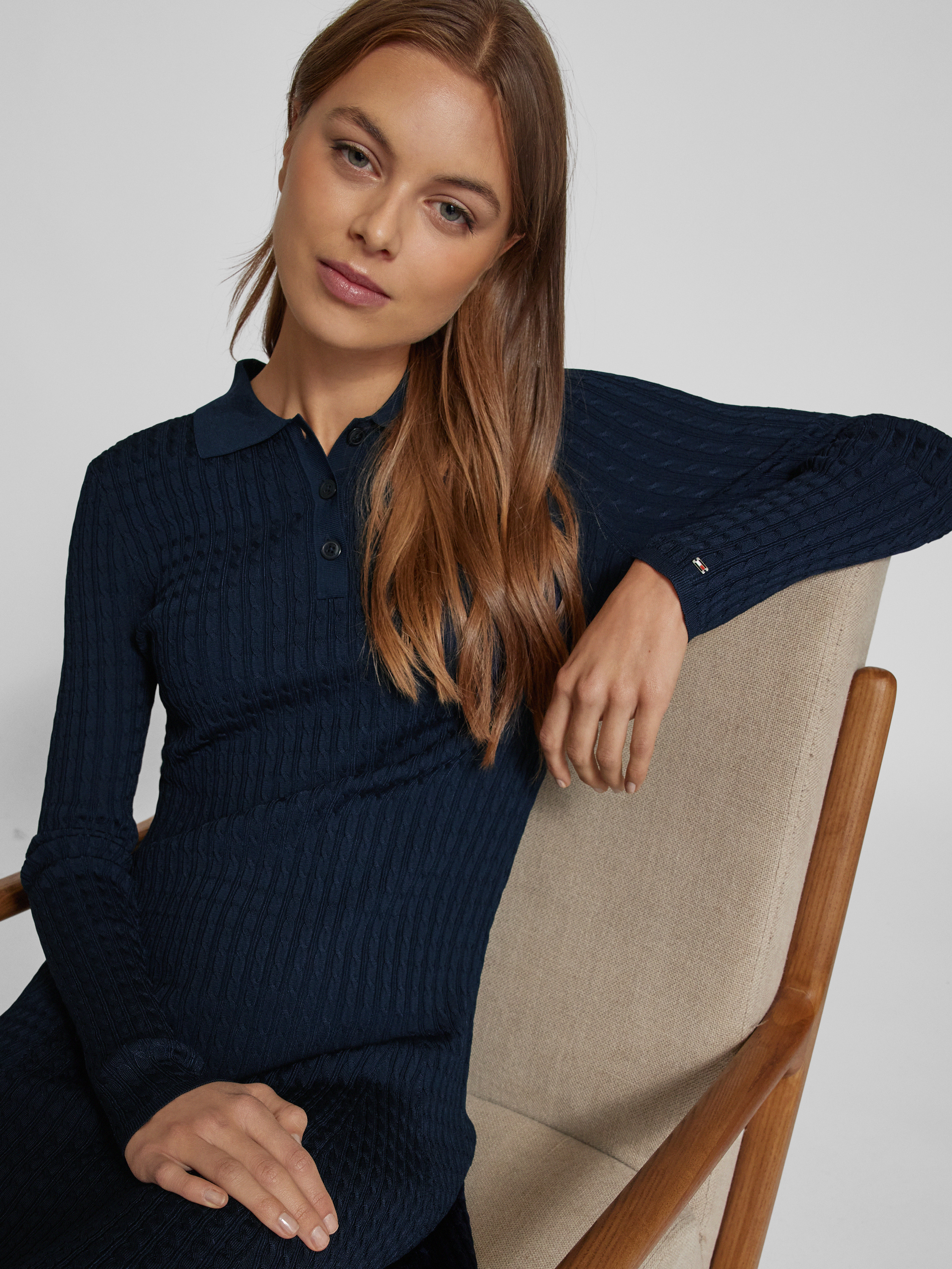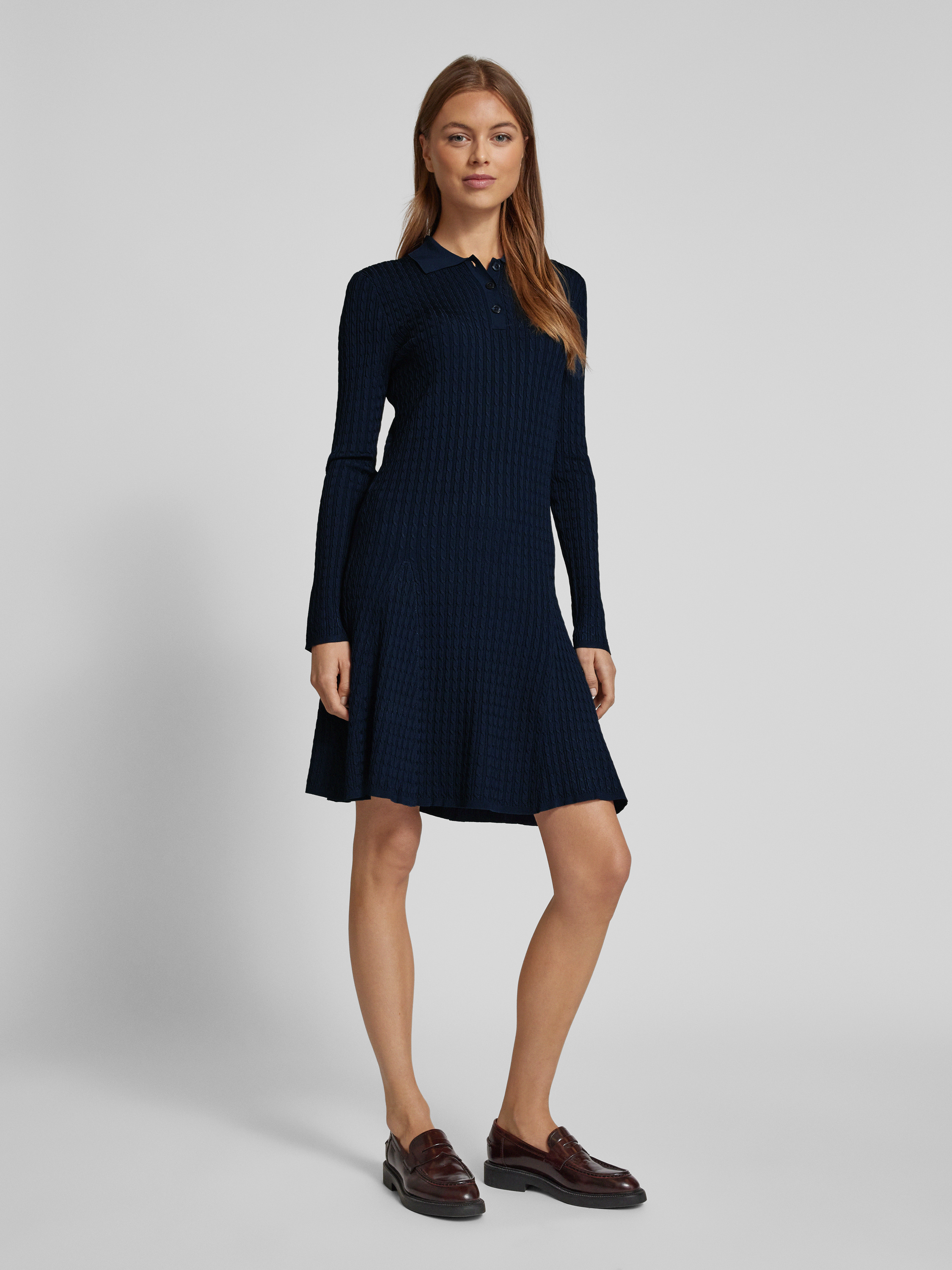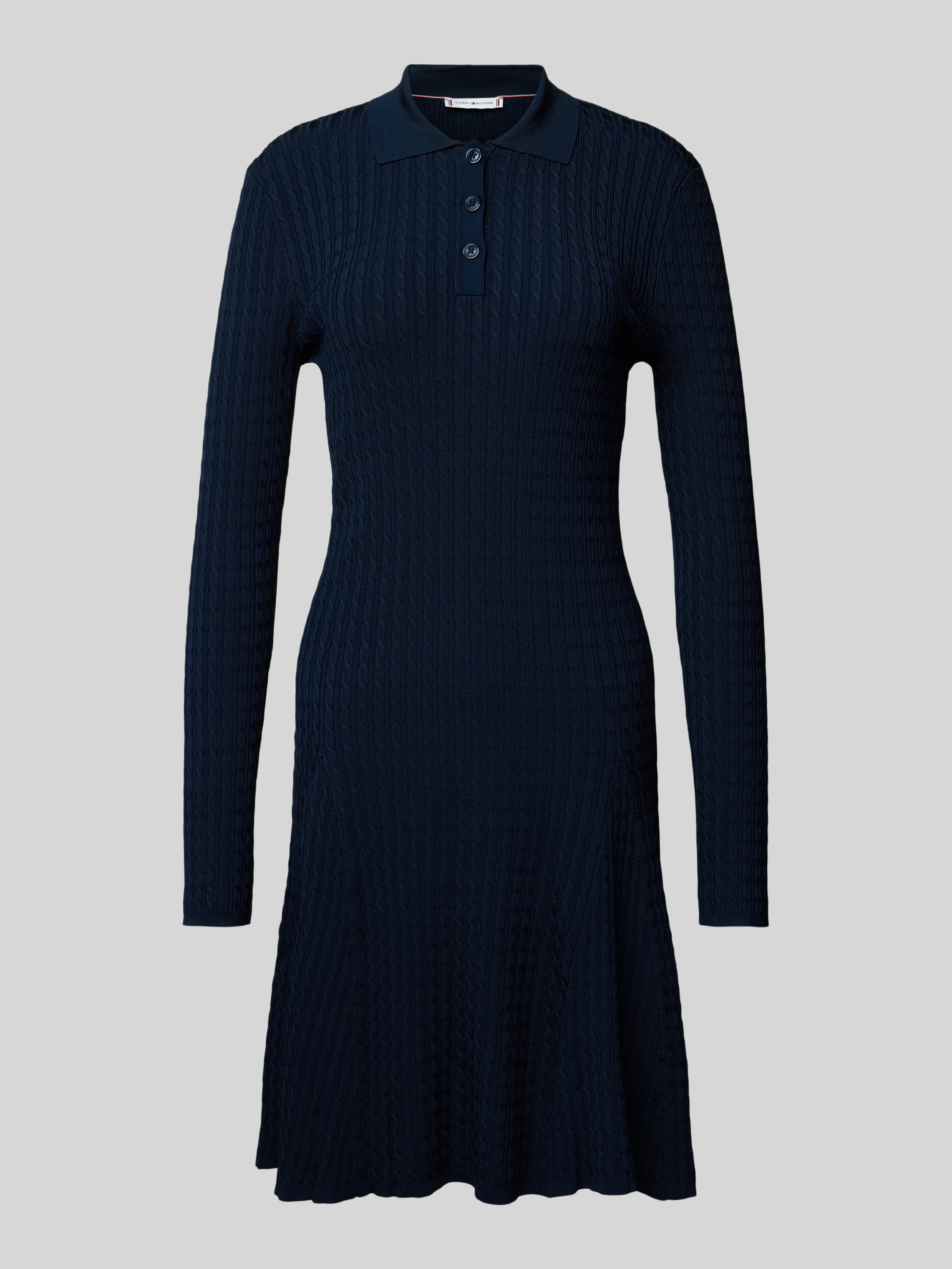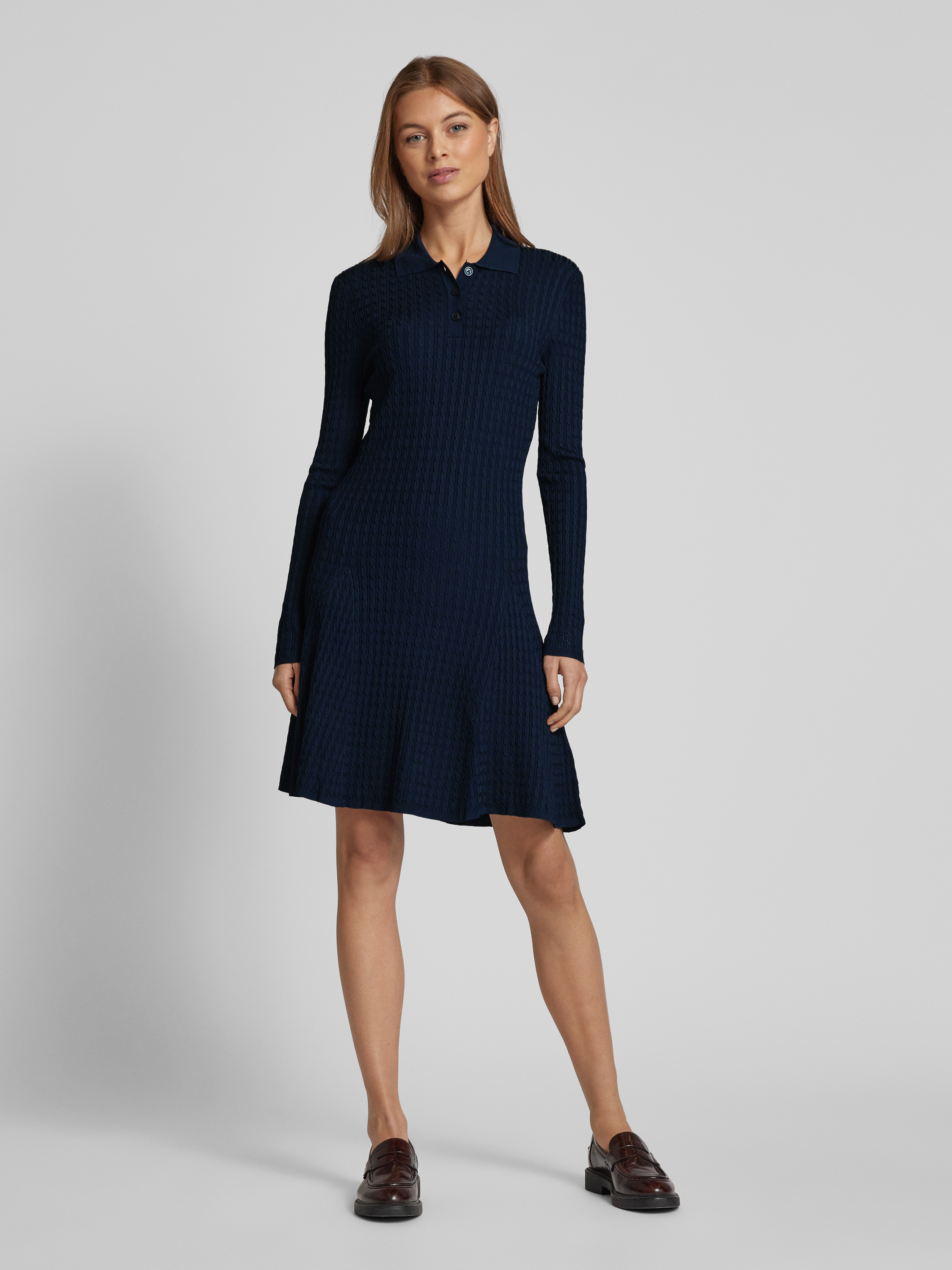 Sukienka polo z fakturowanym wzorem model ‘RAYON CABLE’ - granatowy