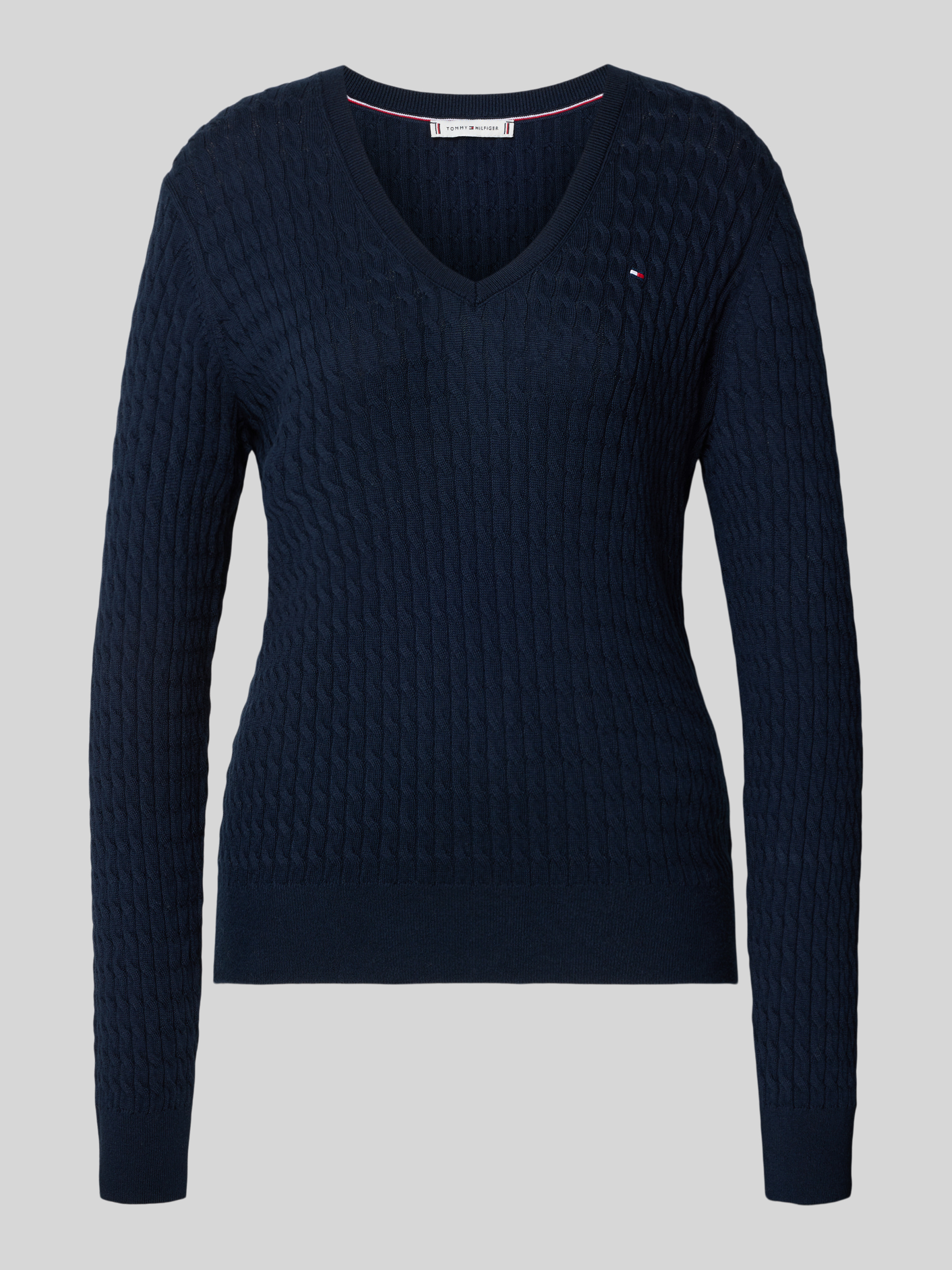 Tommy HilfigerSweter z dzianiny o kroju regular fit z czystej bawełny - granatowy