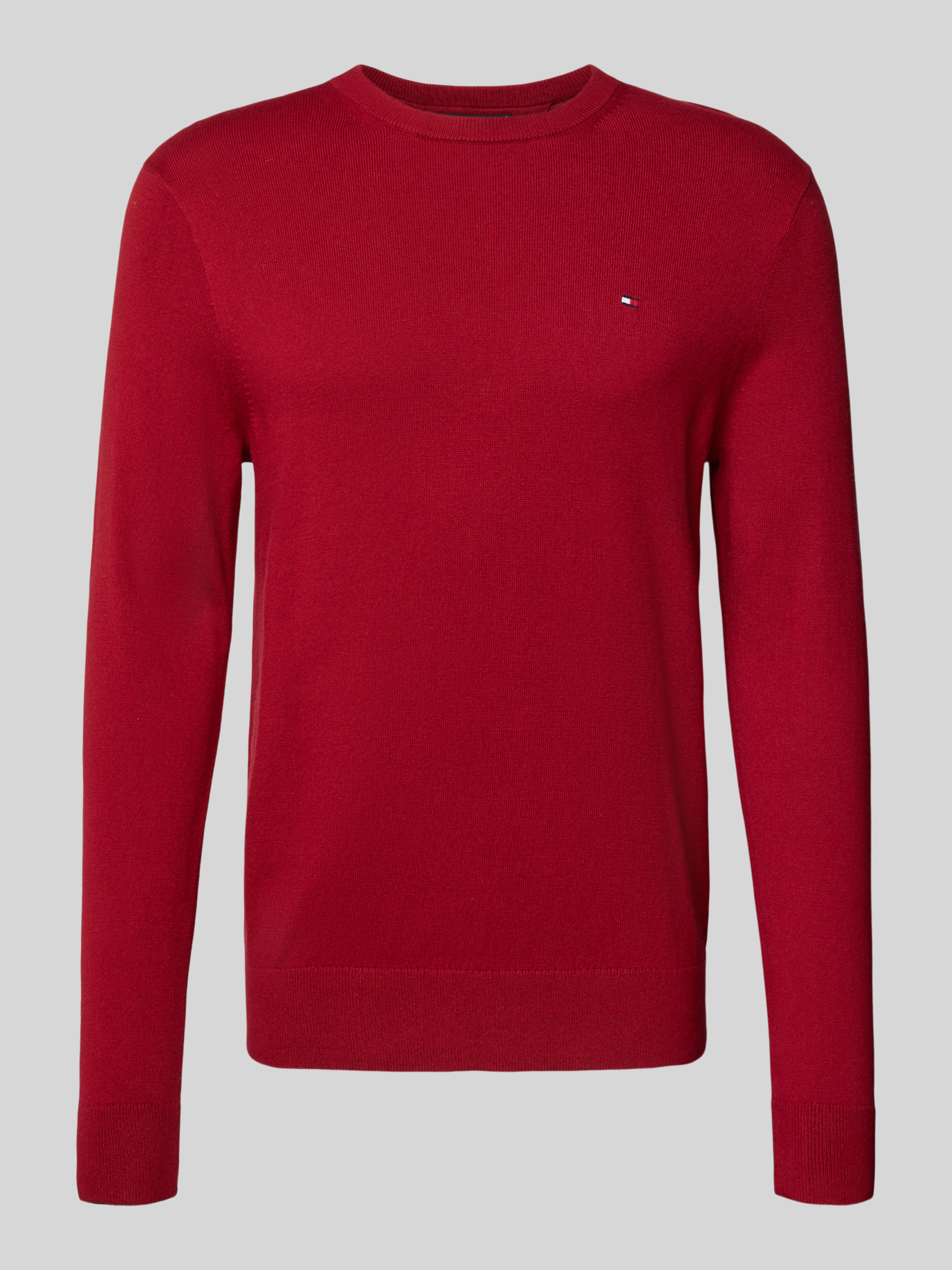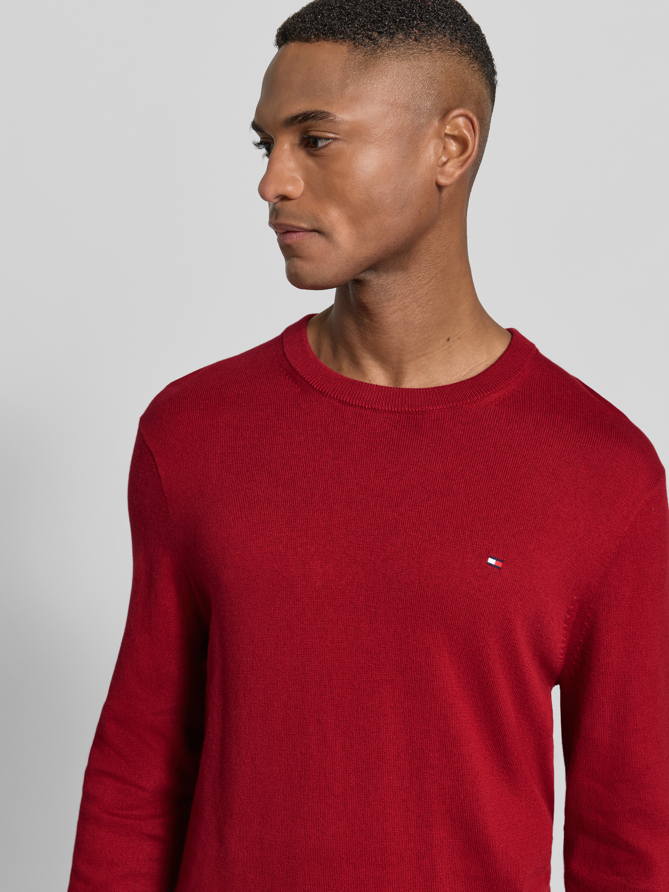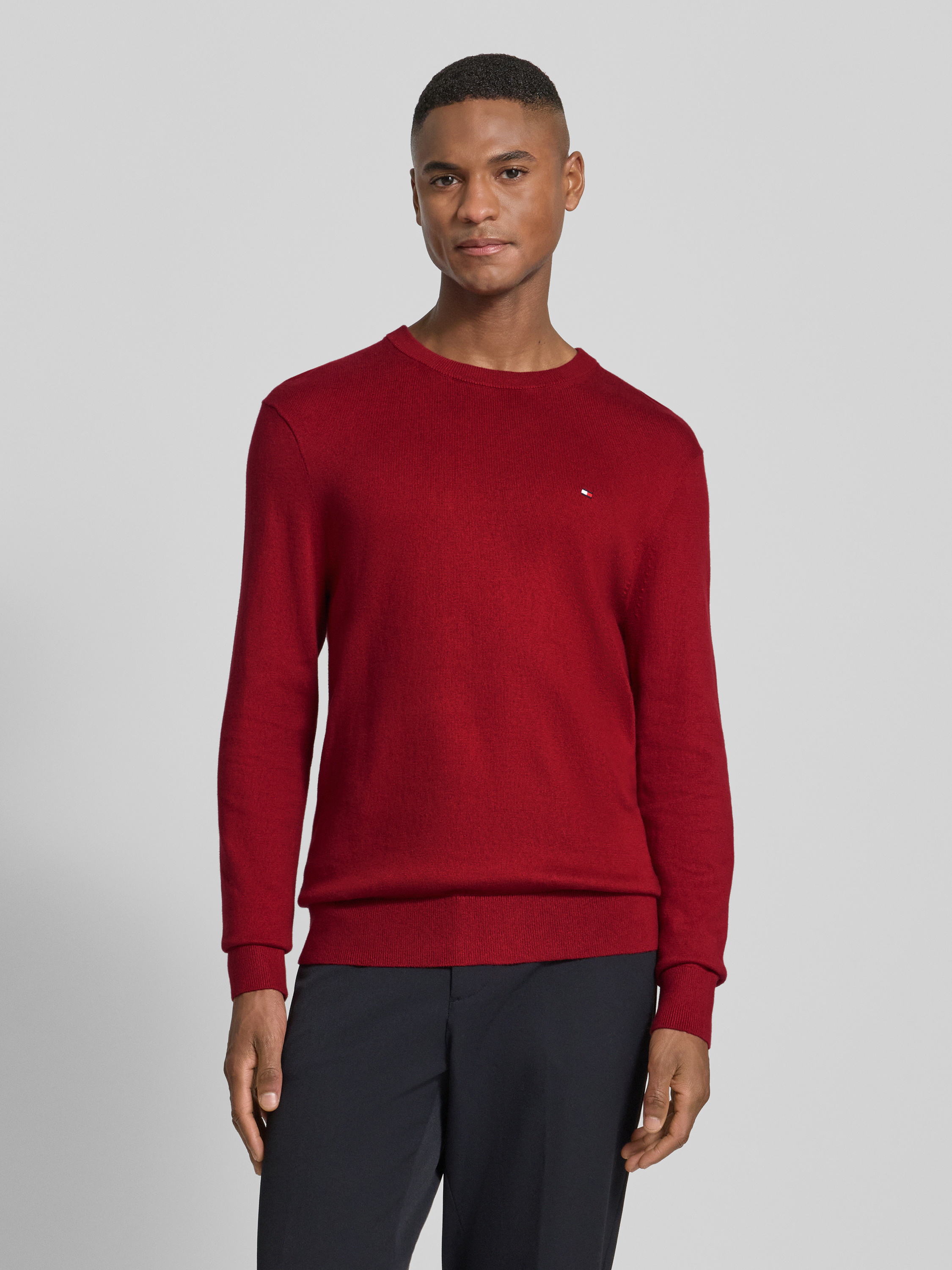 Sweter z dzianiny o kroju regular fit z mieszanki bawełny i kaszmiru - czerwony