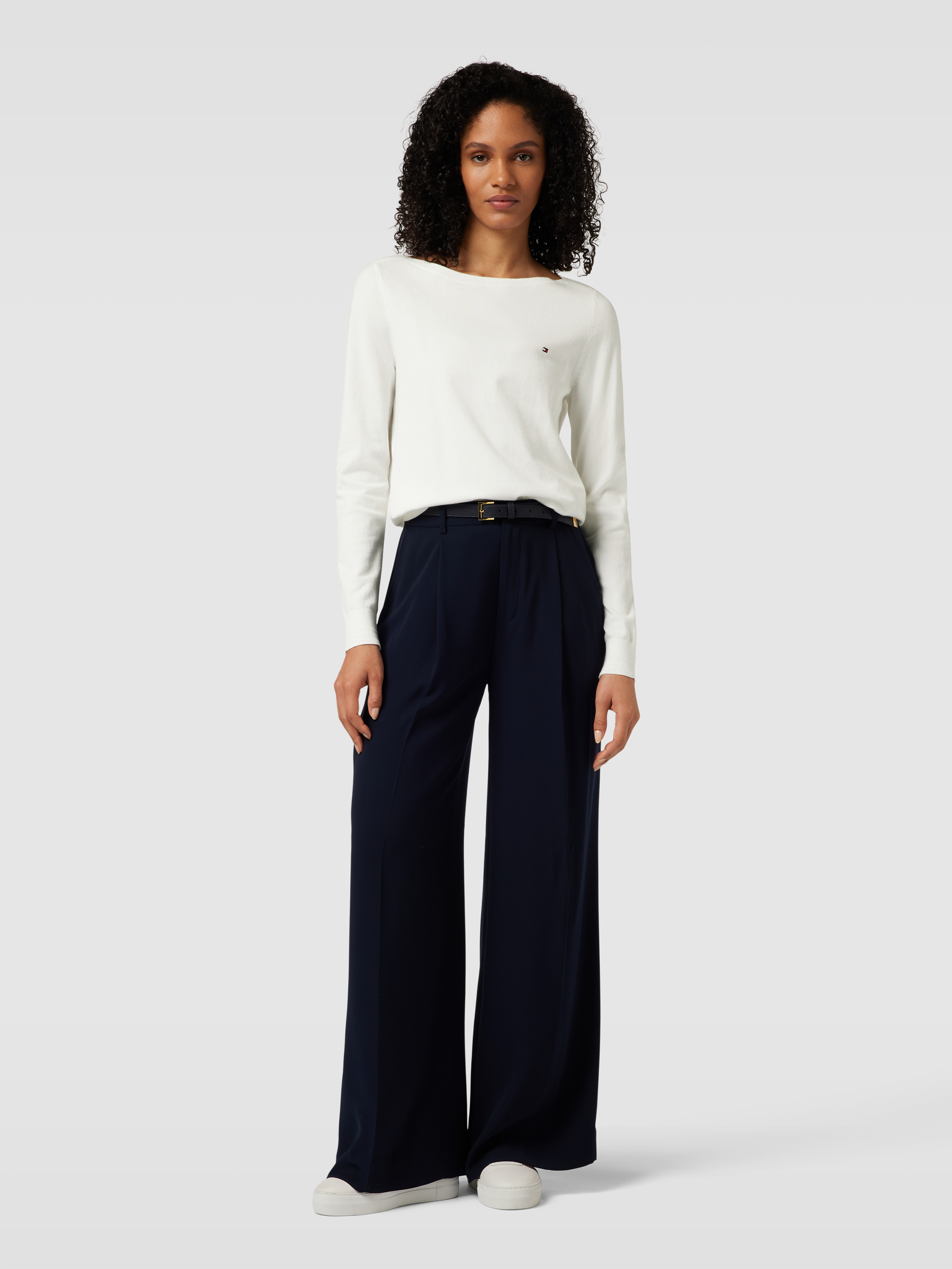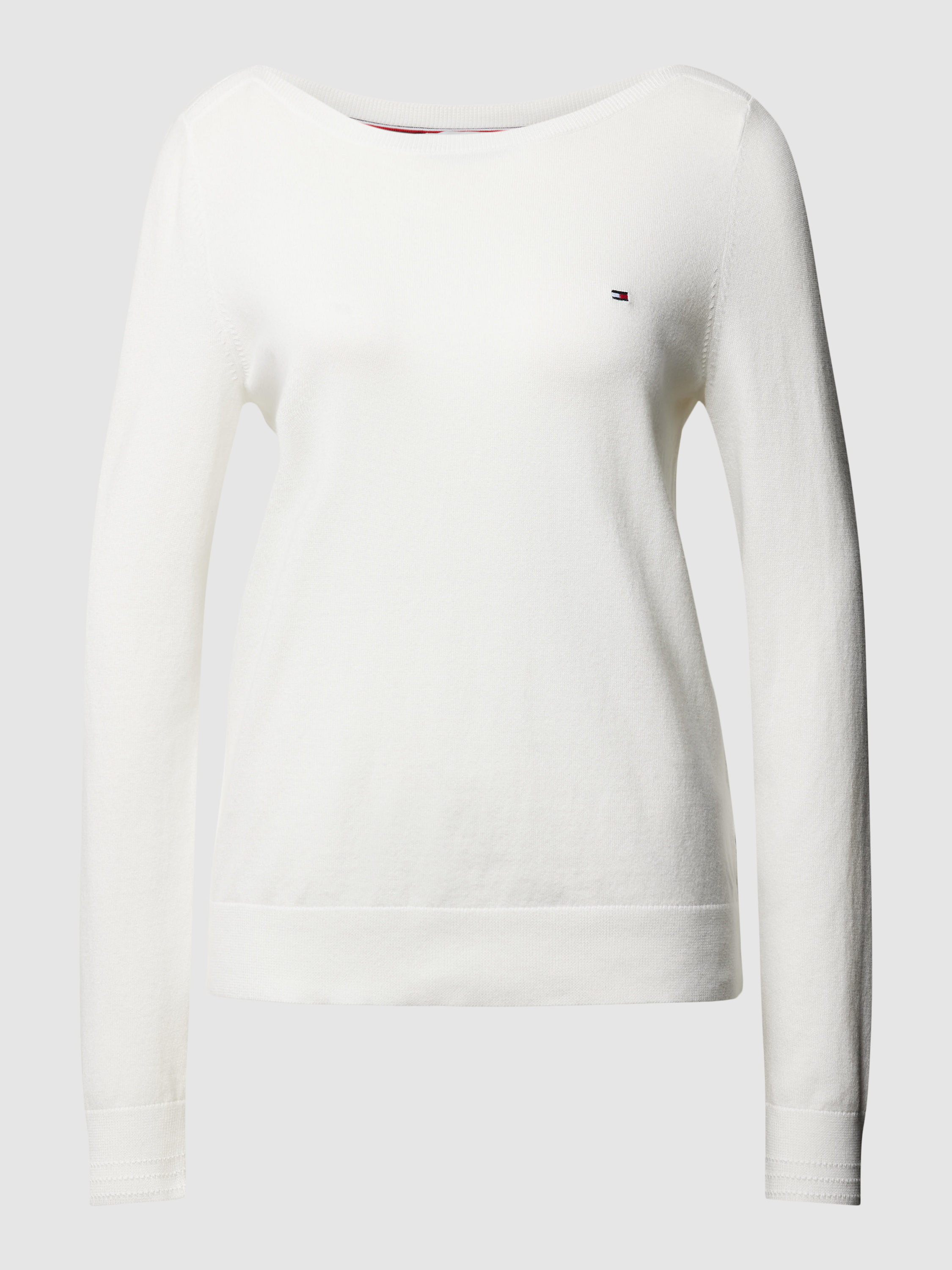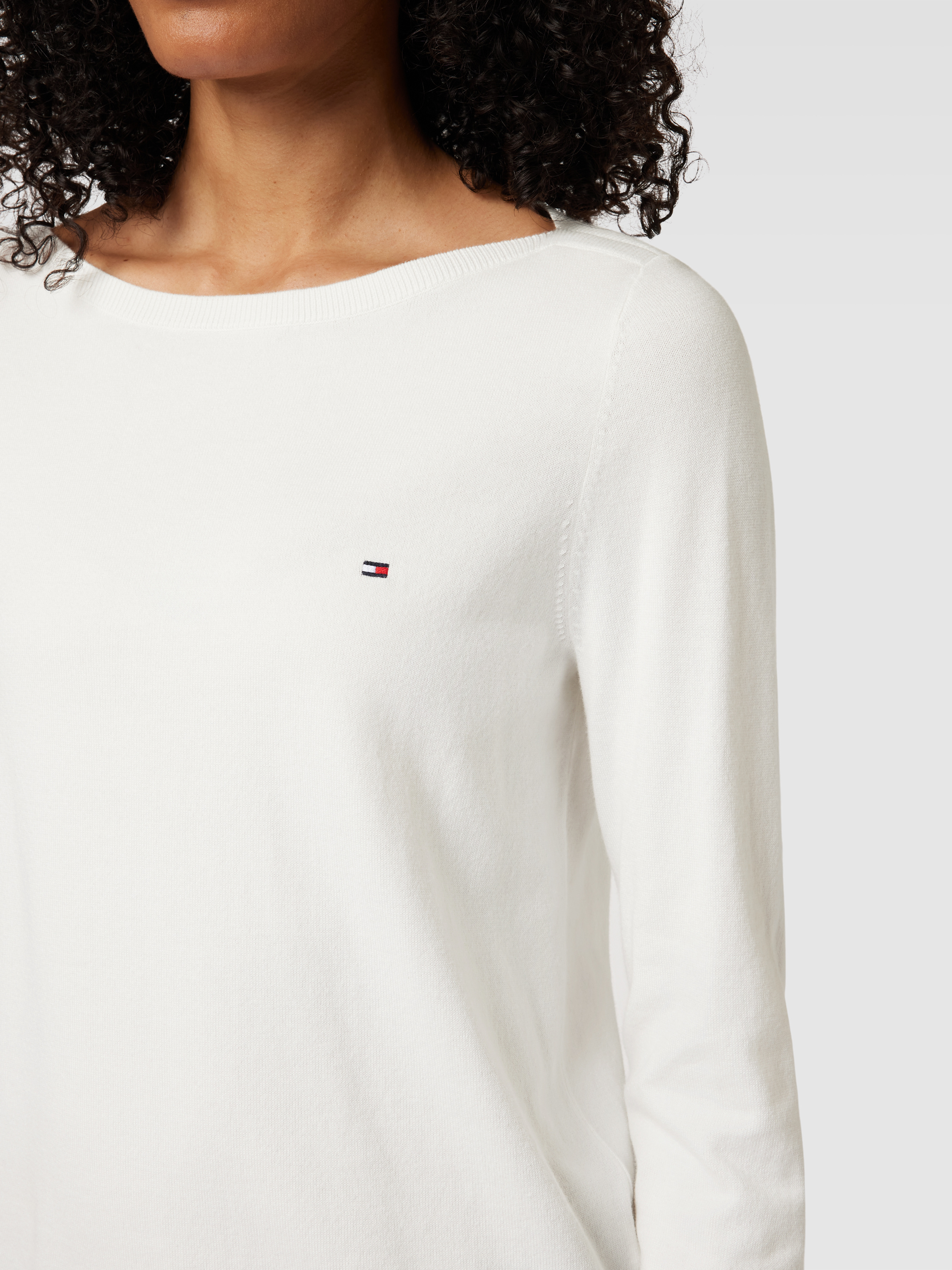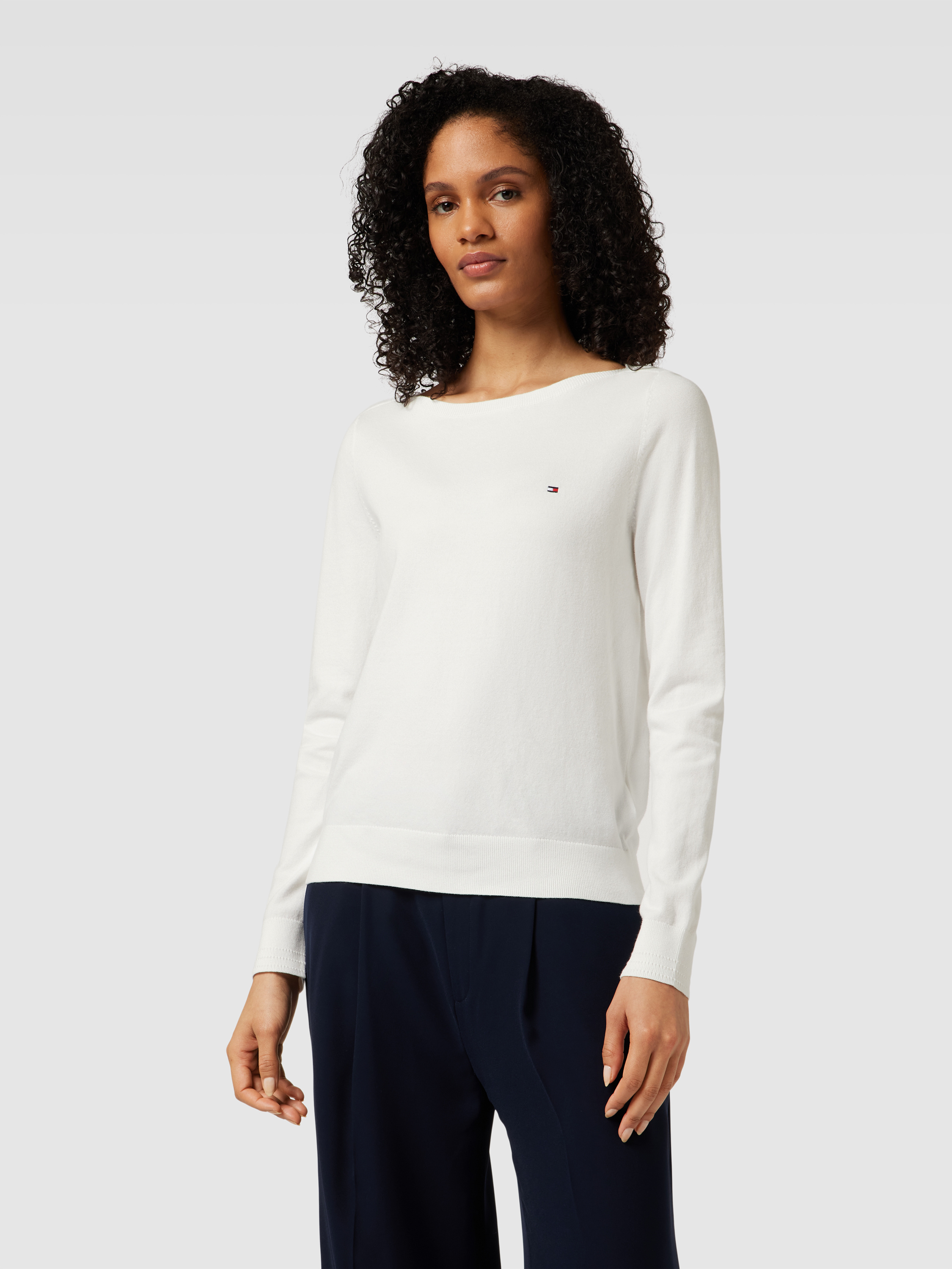 Sweter z dzianiny z wyhaftowanym logo - złamany biały