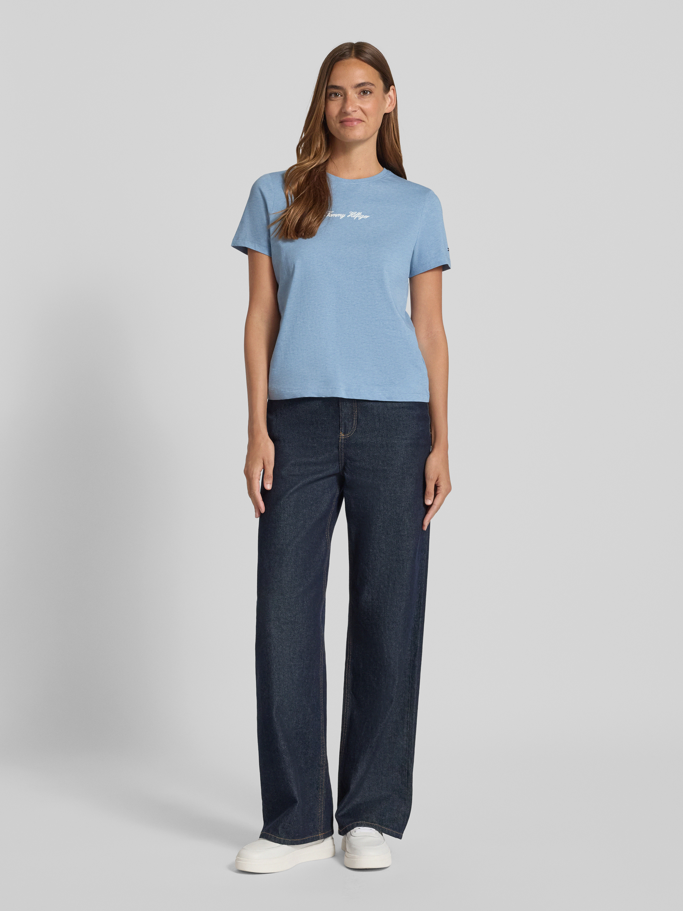 T-shirt o kroju regular fit z czystej bawełny - jasnoniebieski