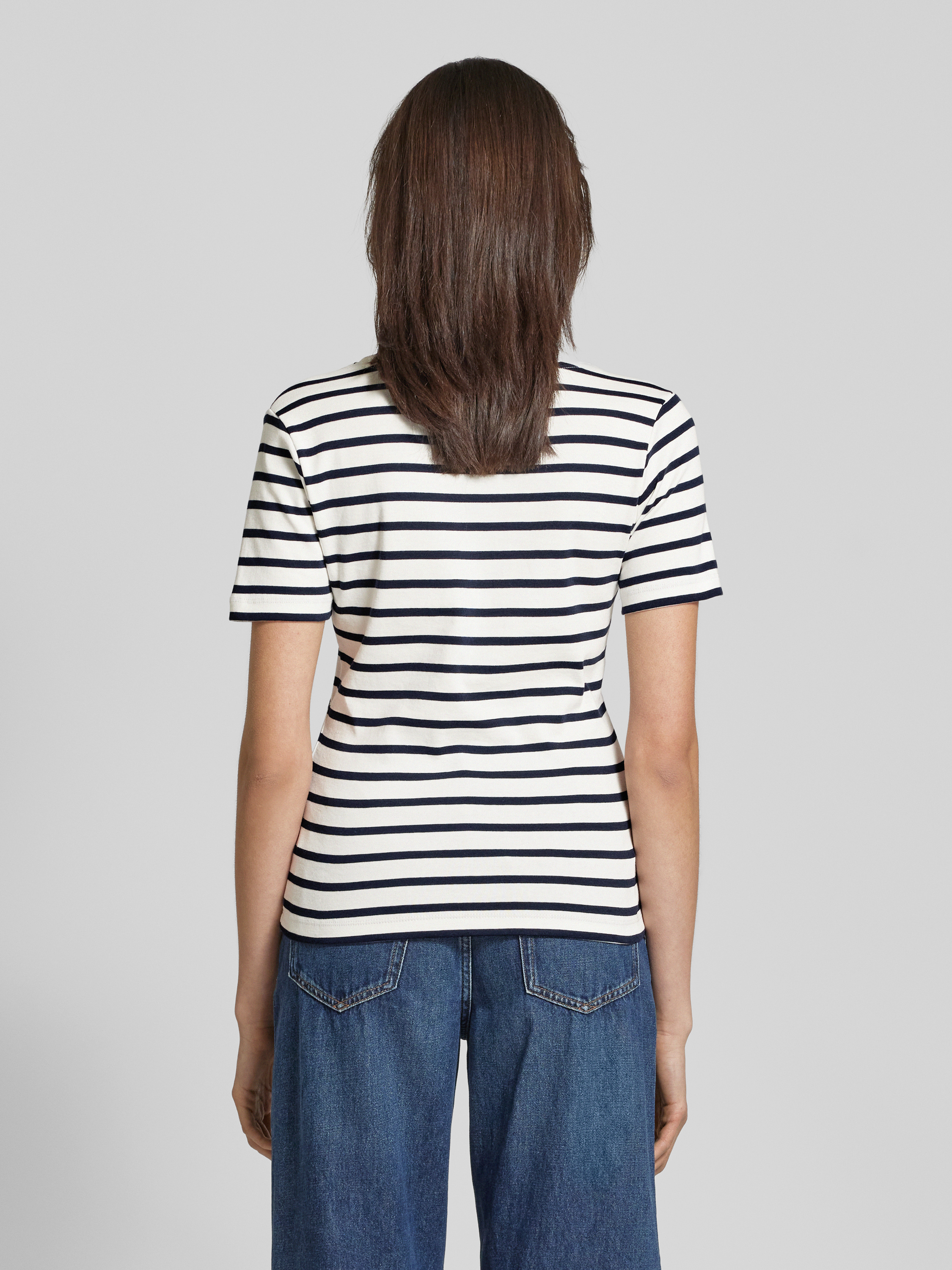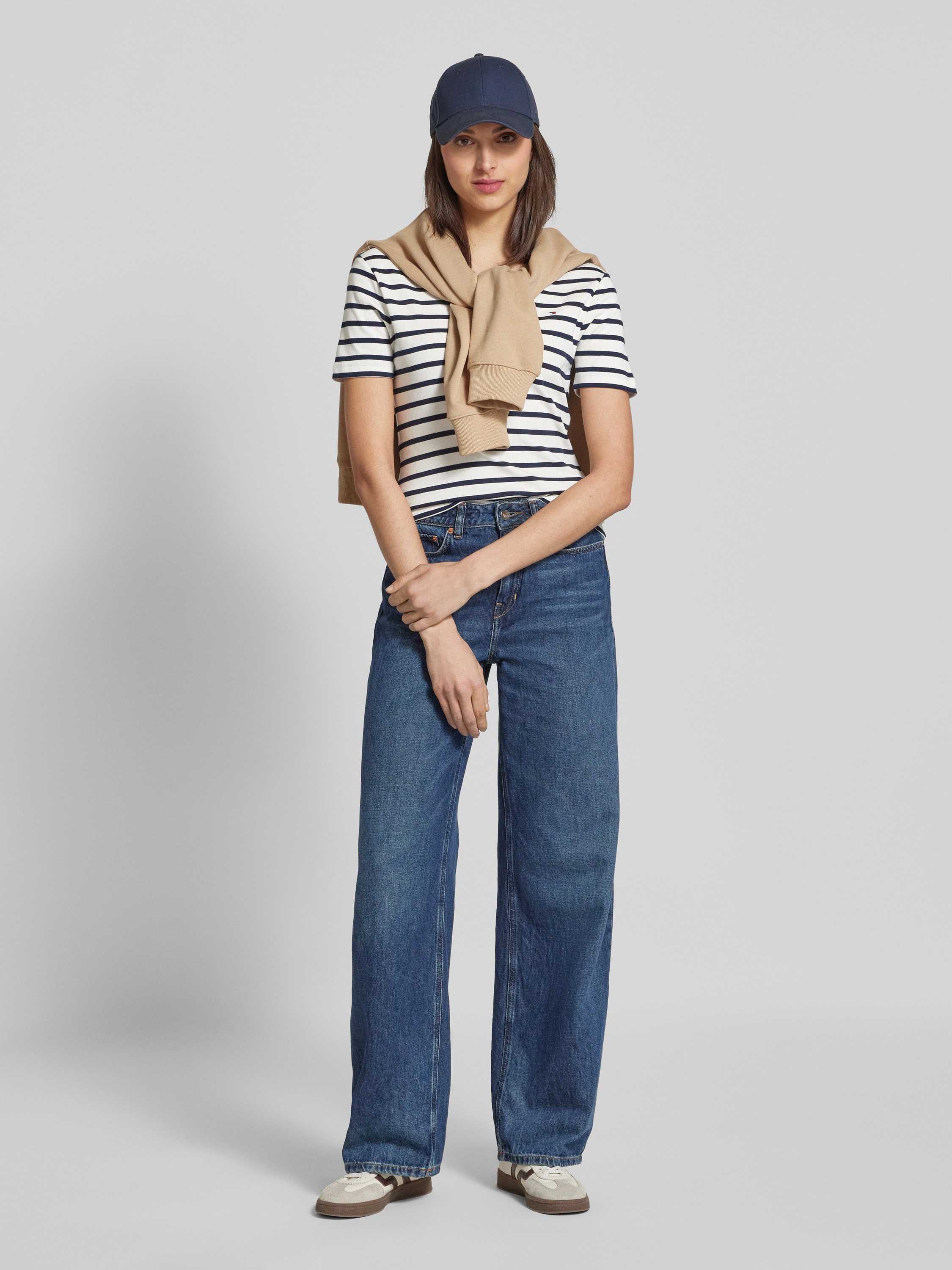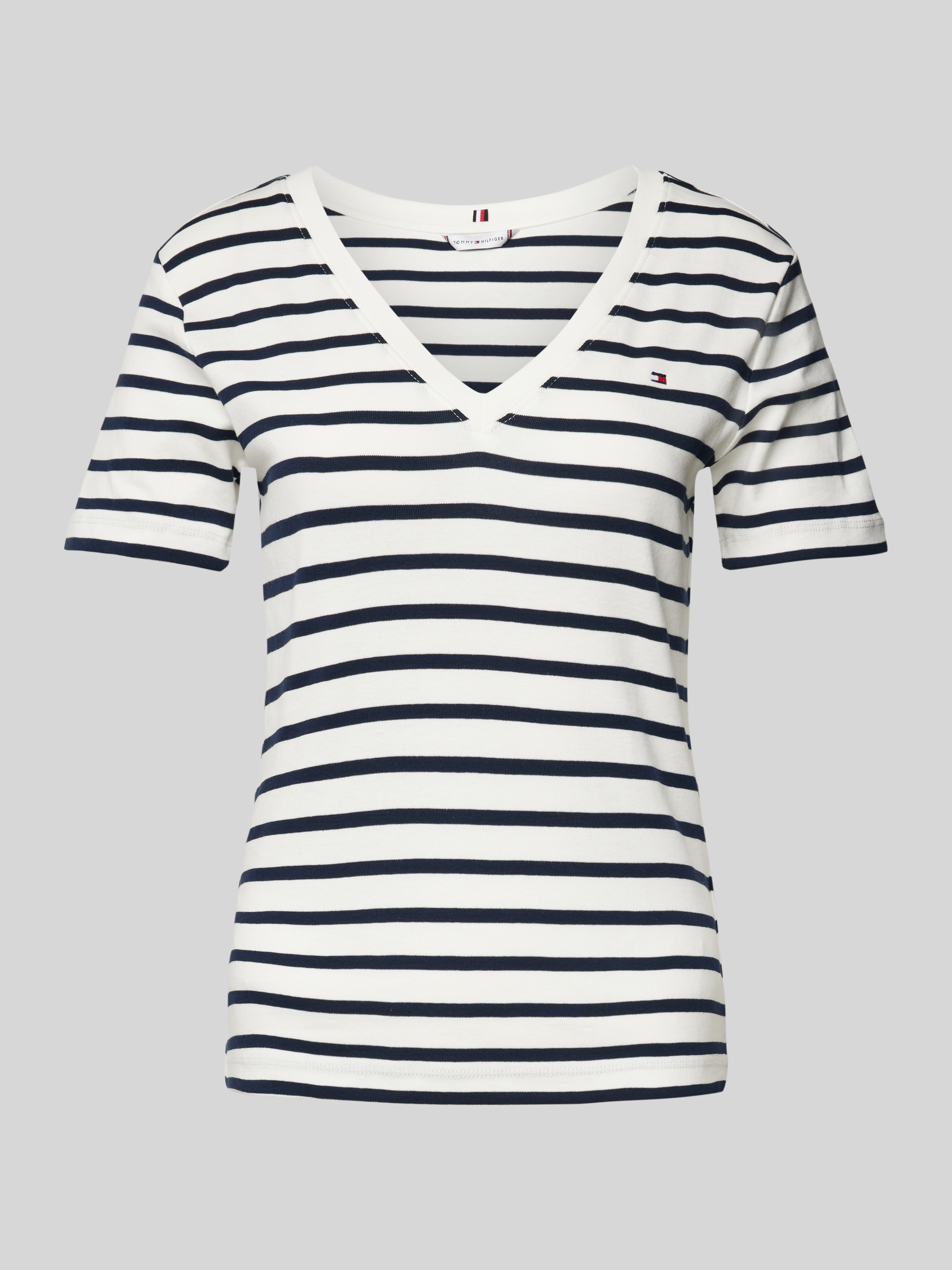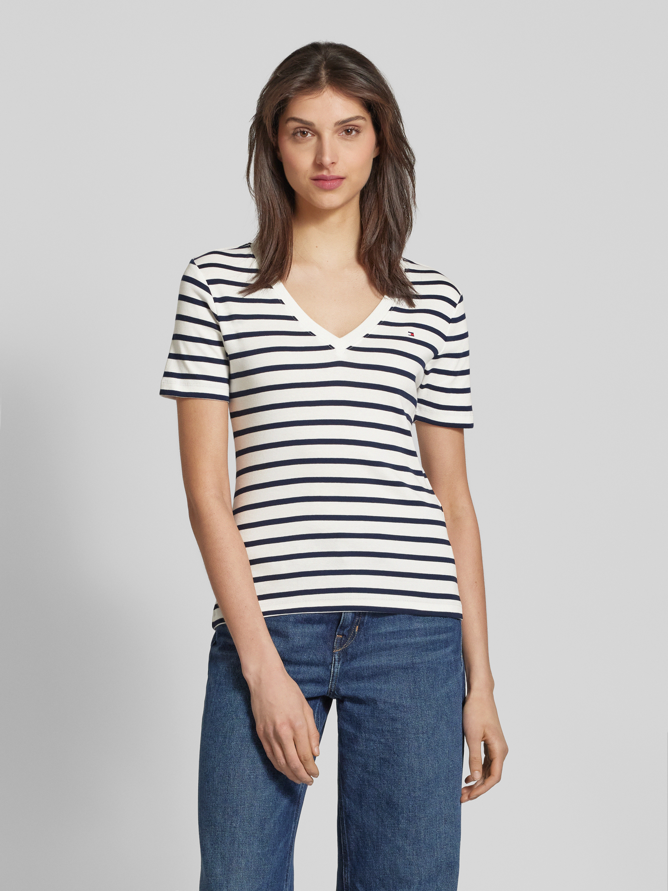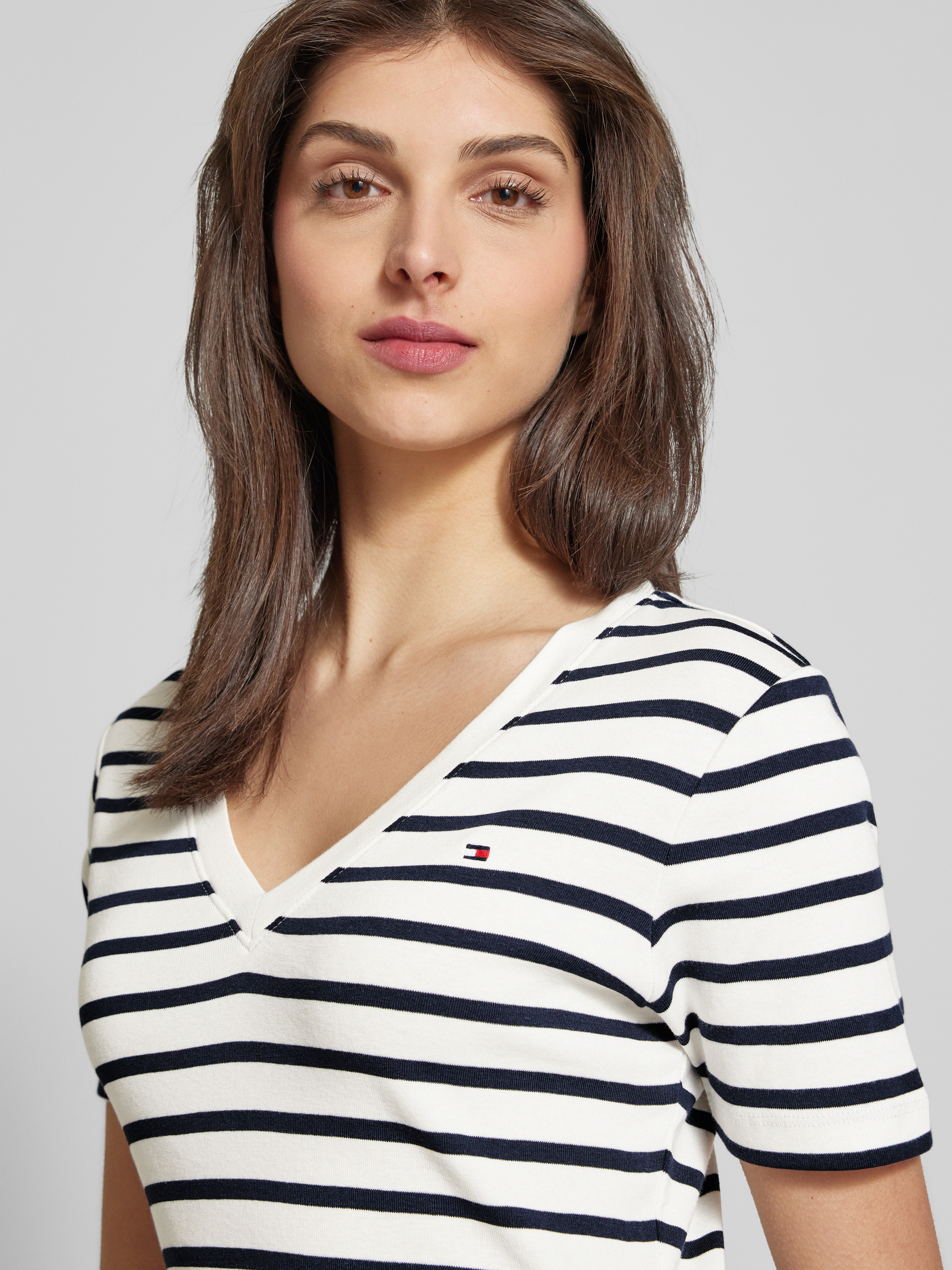 T-shirt o kroju slim fit z dekoltem w serek model ‘CODY’ - granatowy