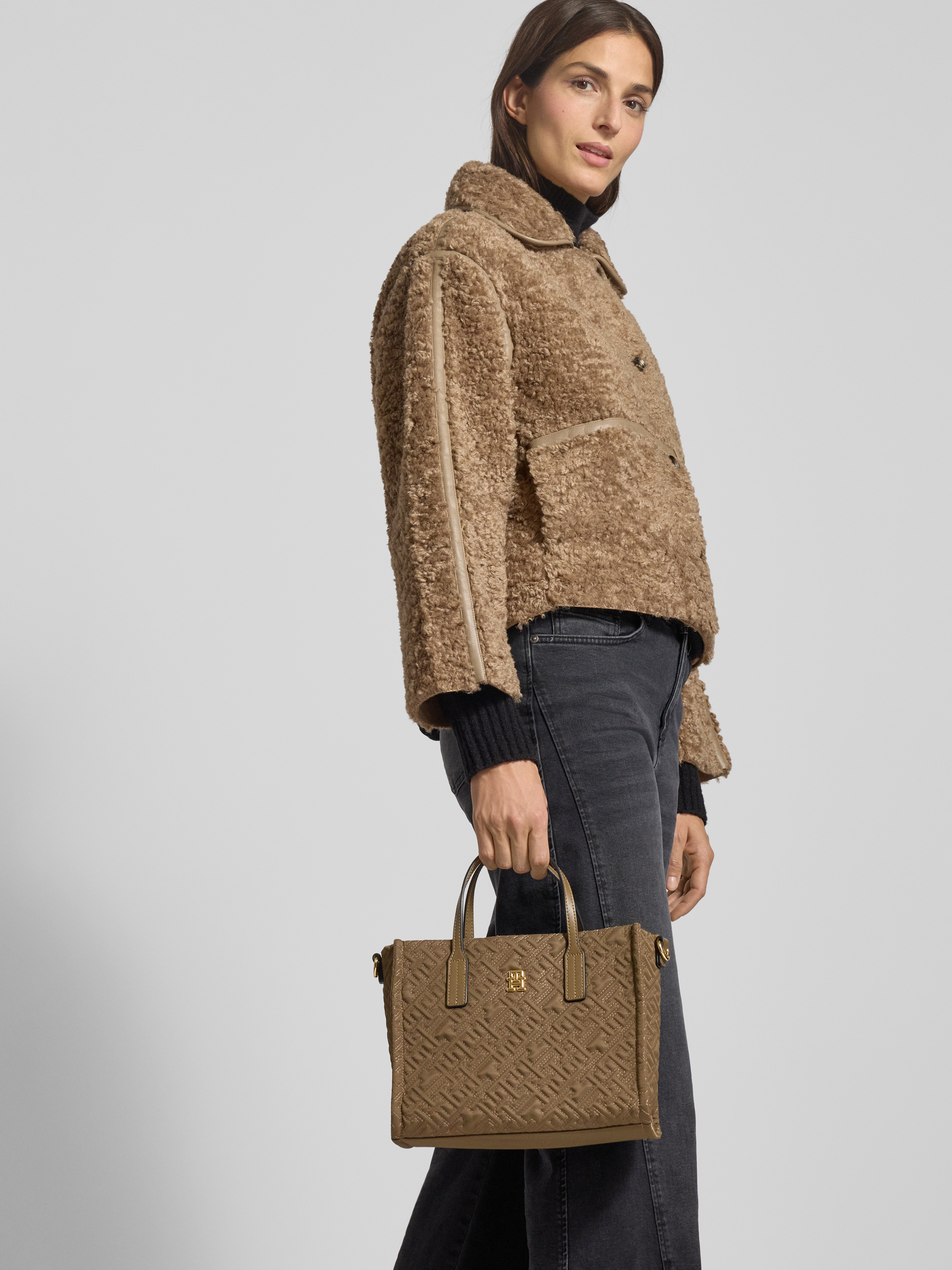 Torba z uchwytami i odpinanym paskiem na ramię - szarobrązowy