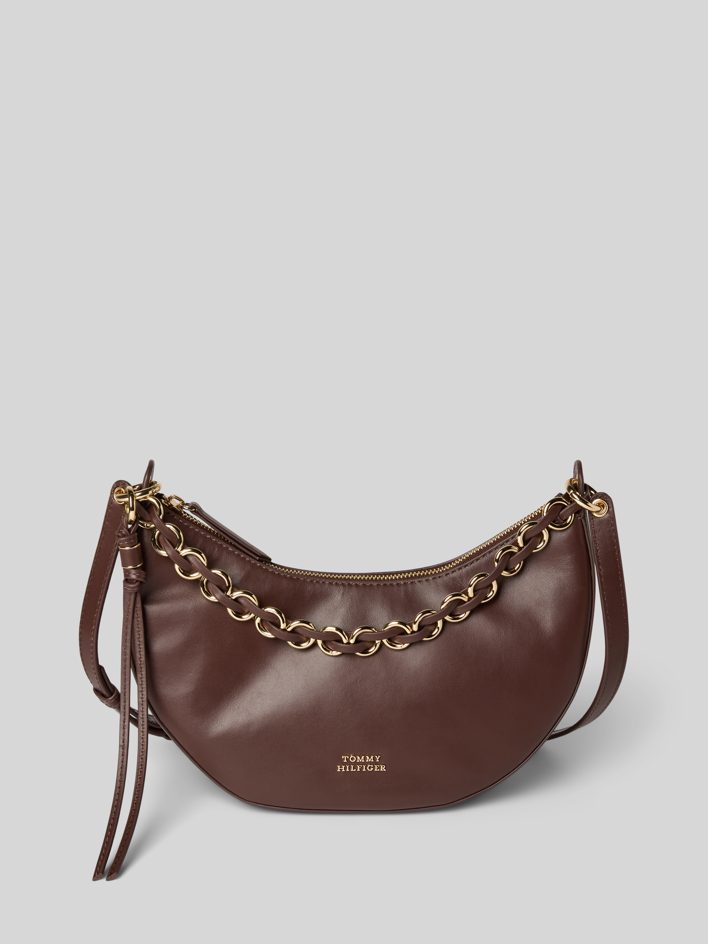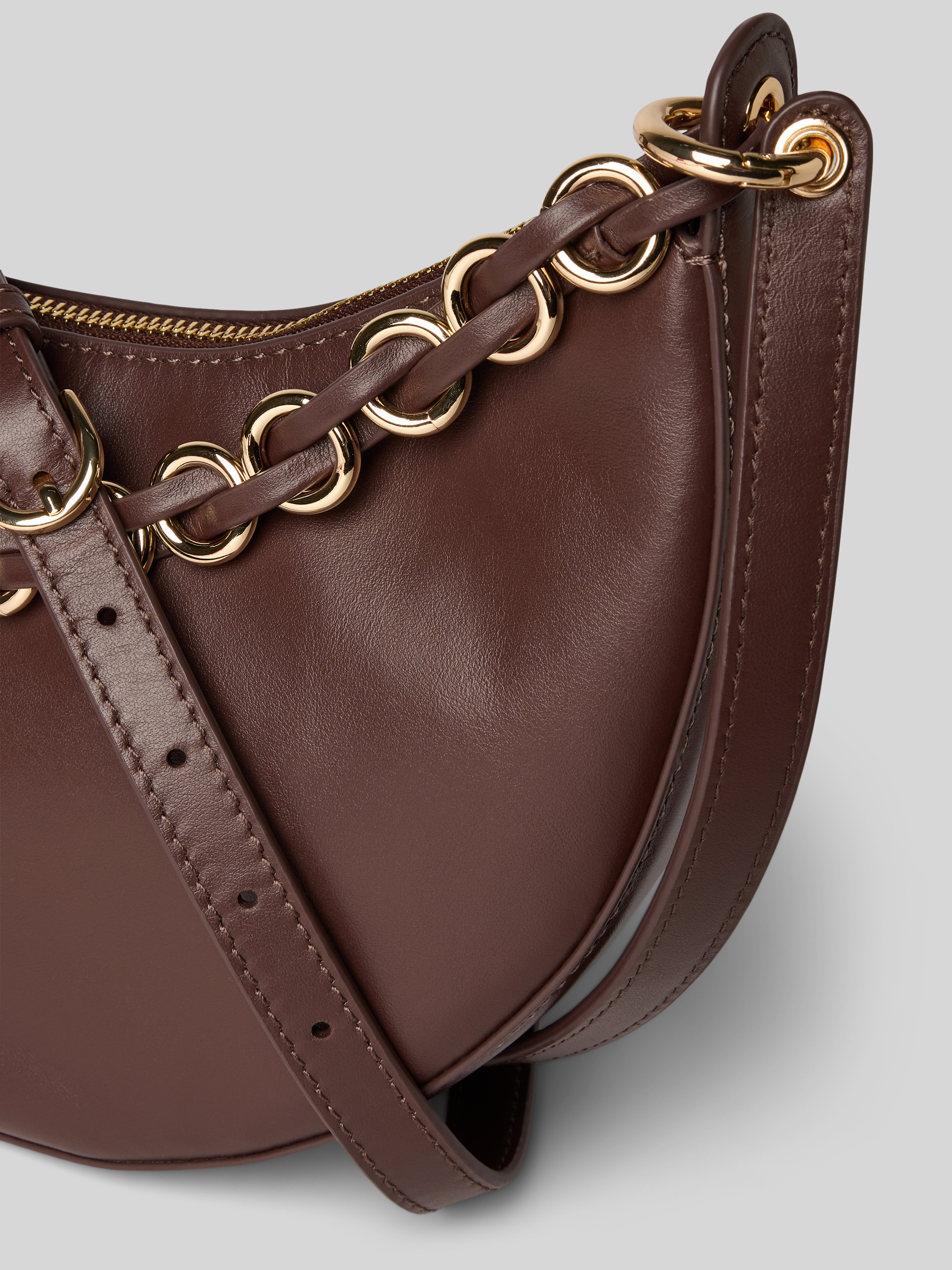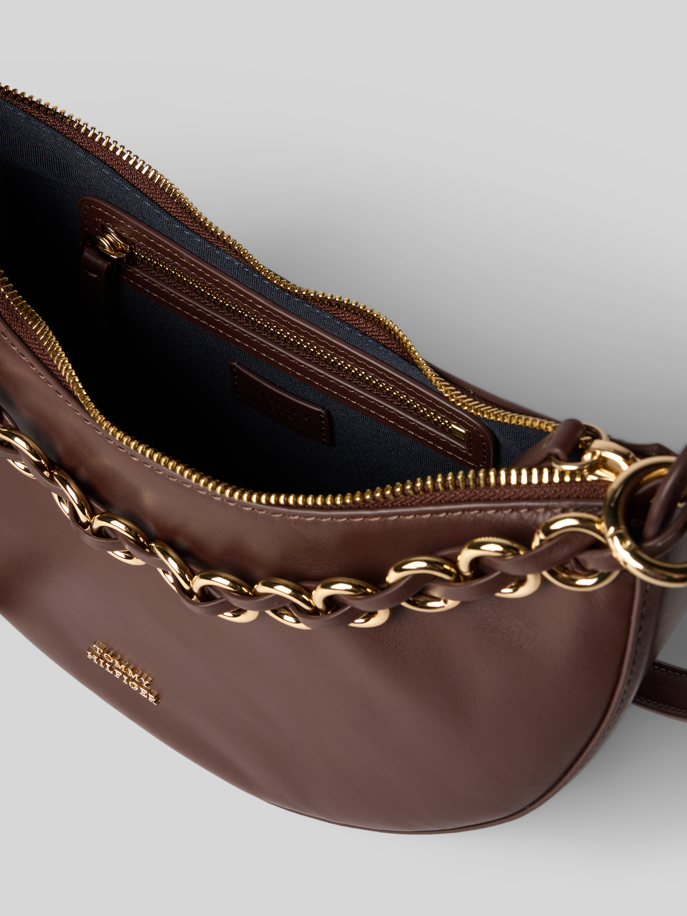 Torebka ze skóry naturalnej na długim pasku - ciemnobrązowy