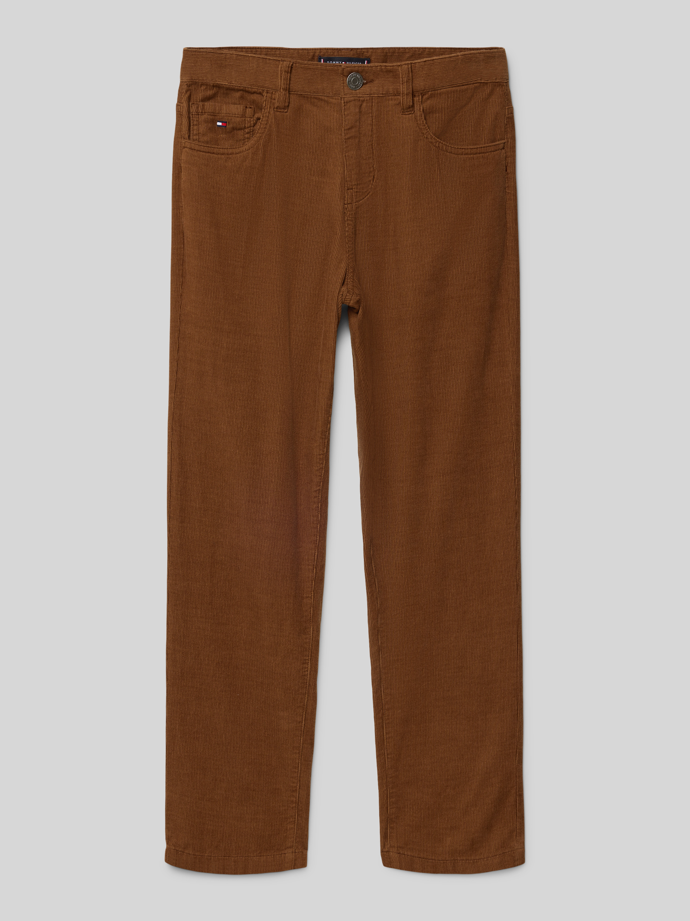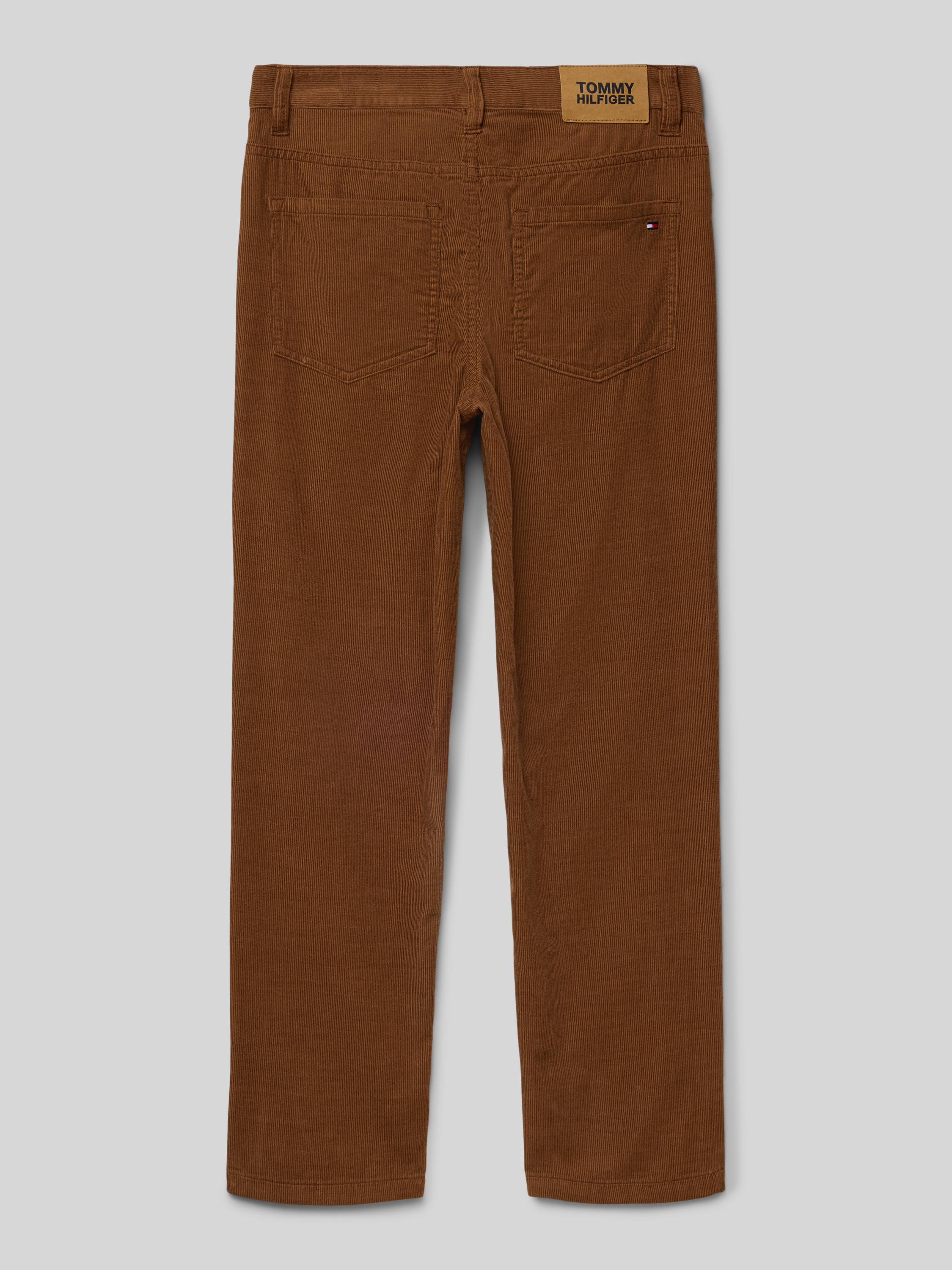 Spodnie sztruksowe o kroju straight fit z czystej bawełny - koniakowy