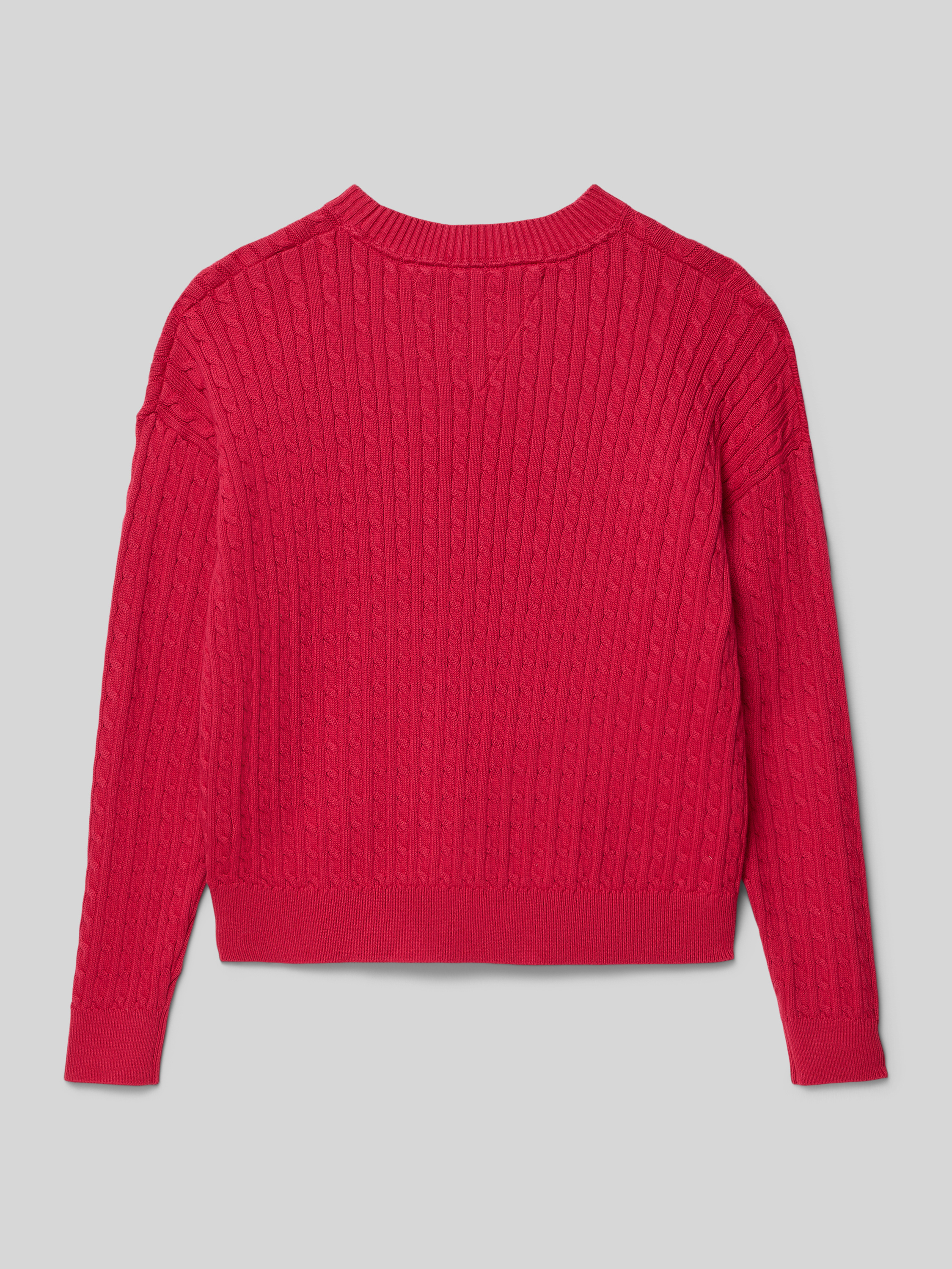 Sweter z dzianiny o kroju regular fit z czystej bawełny - wiśniowy