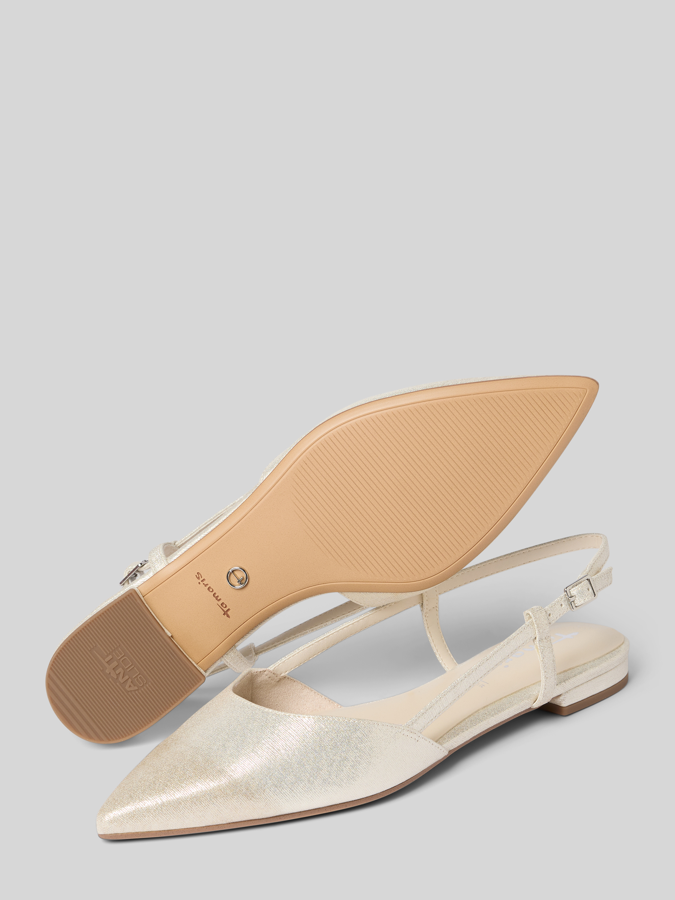 Baleriny z efektem błyszczącym, paskami i sprzączką - srebrny