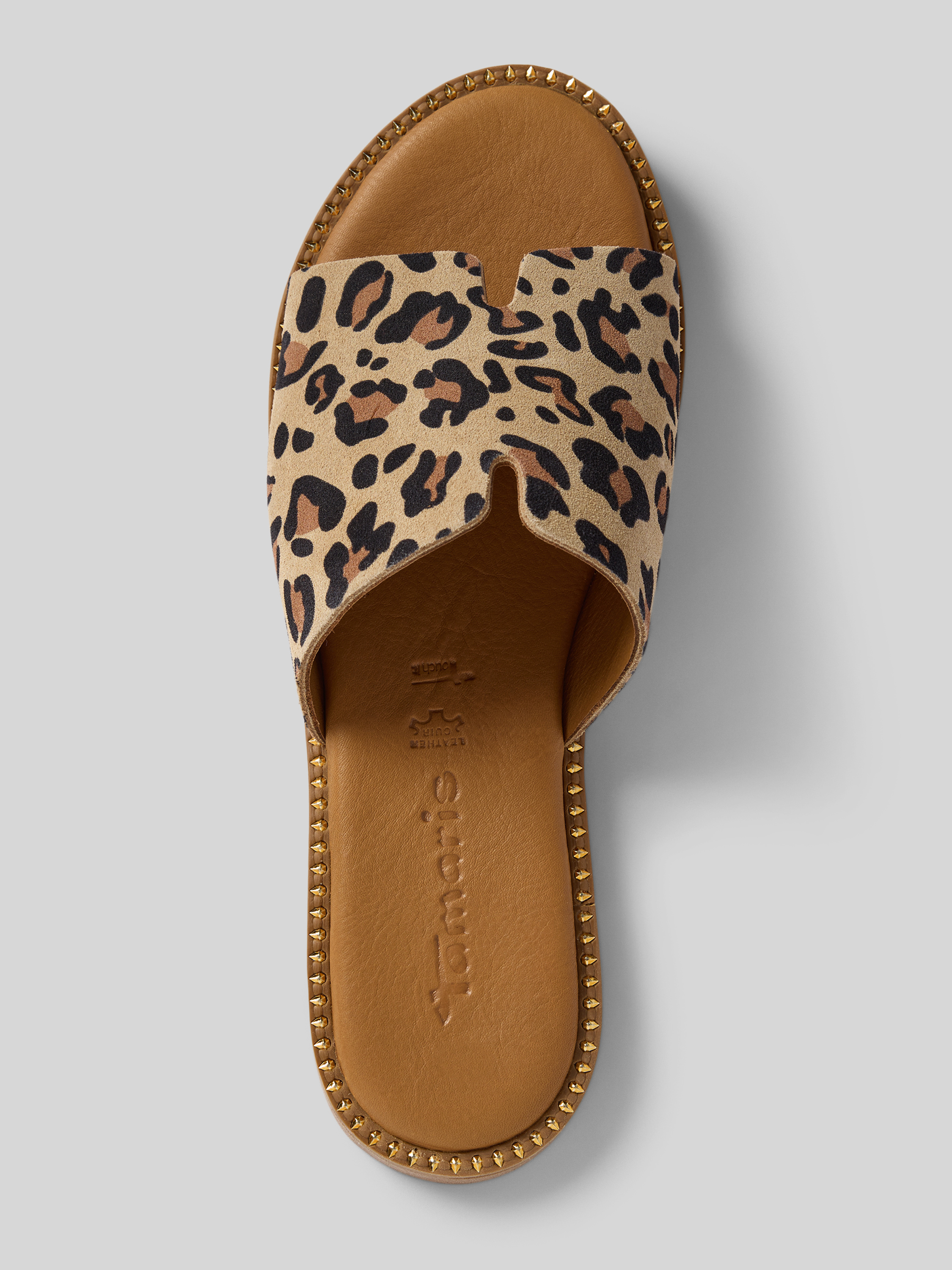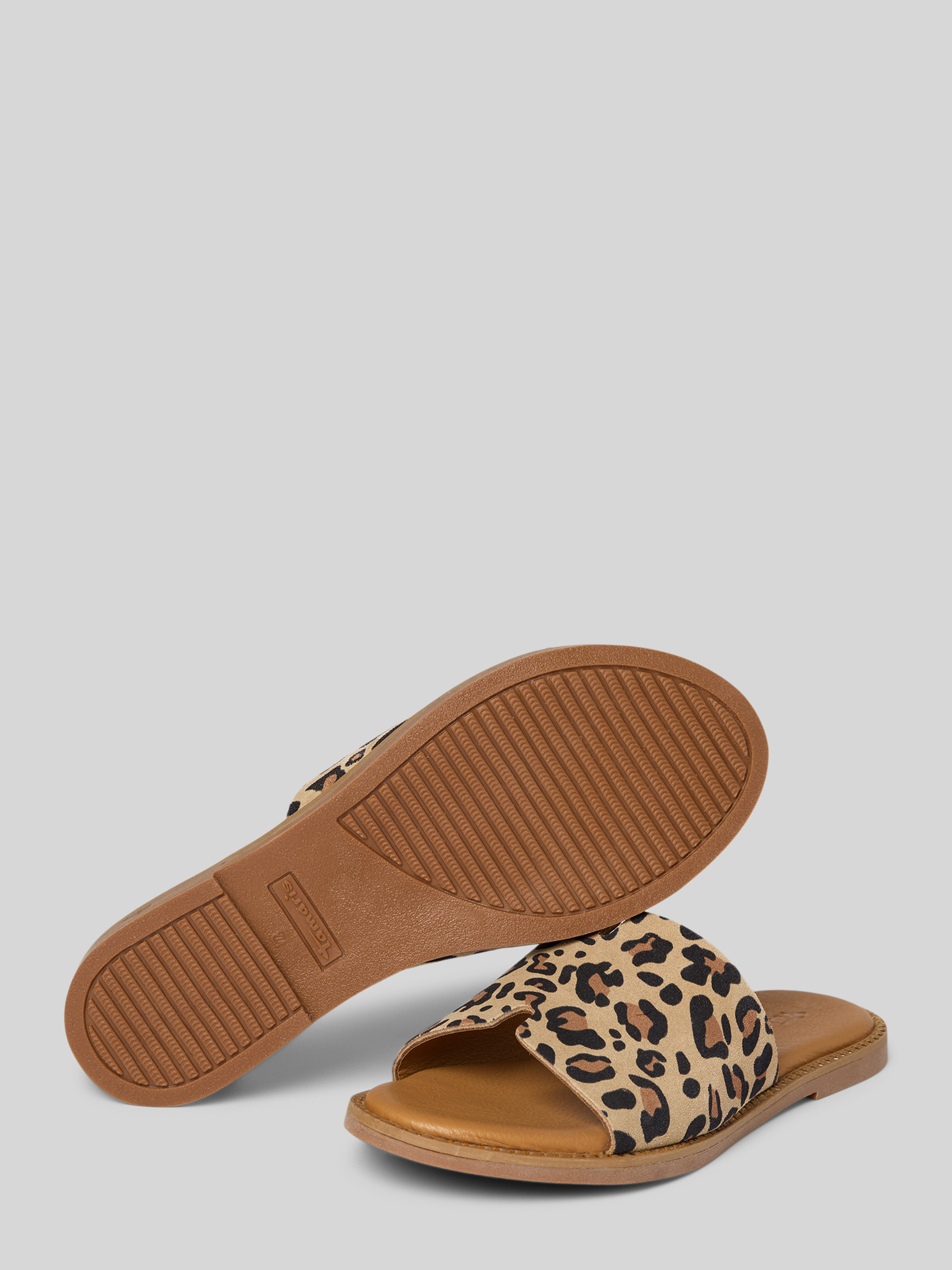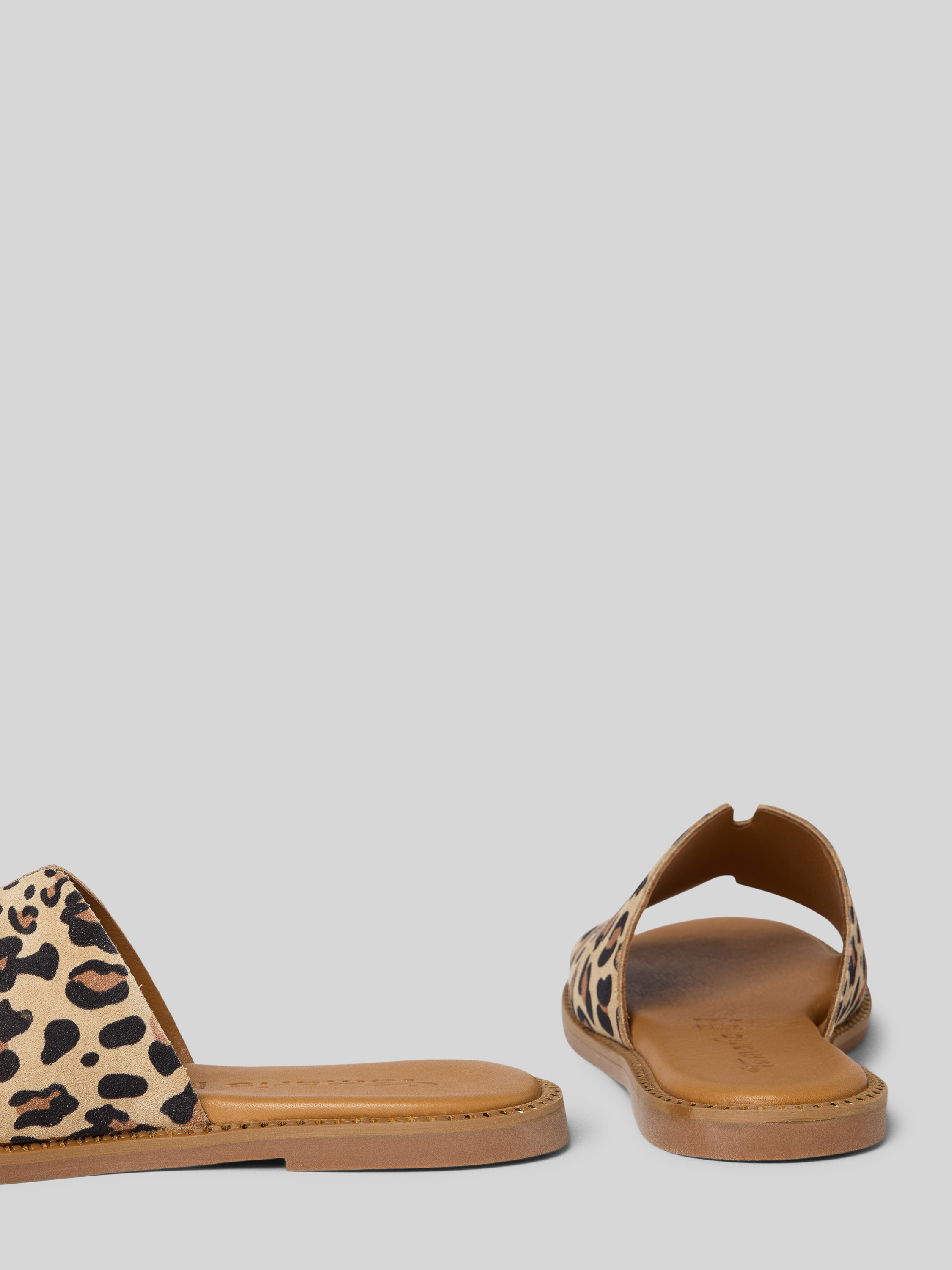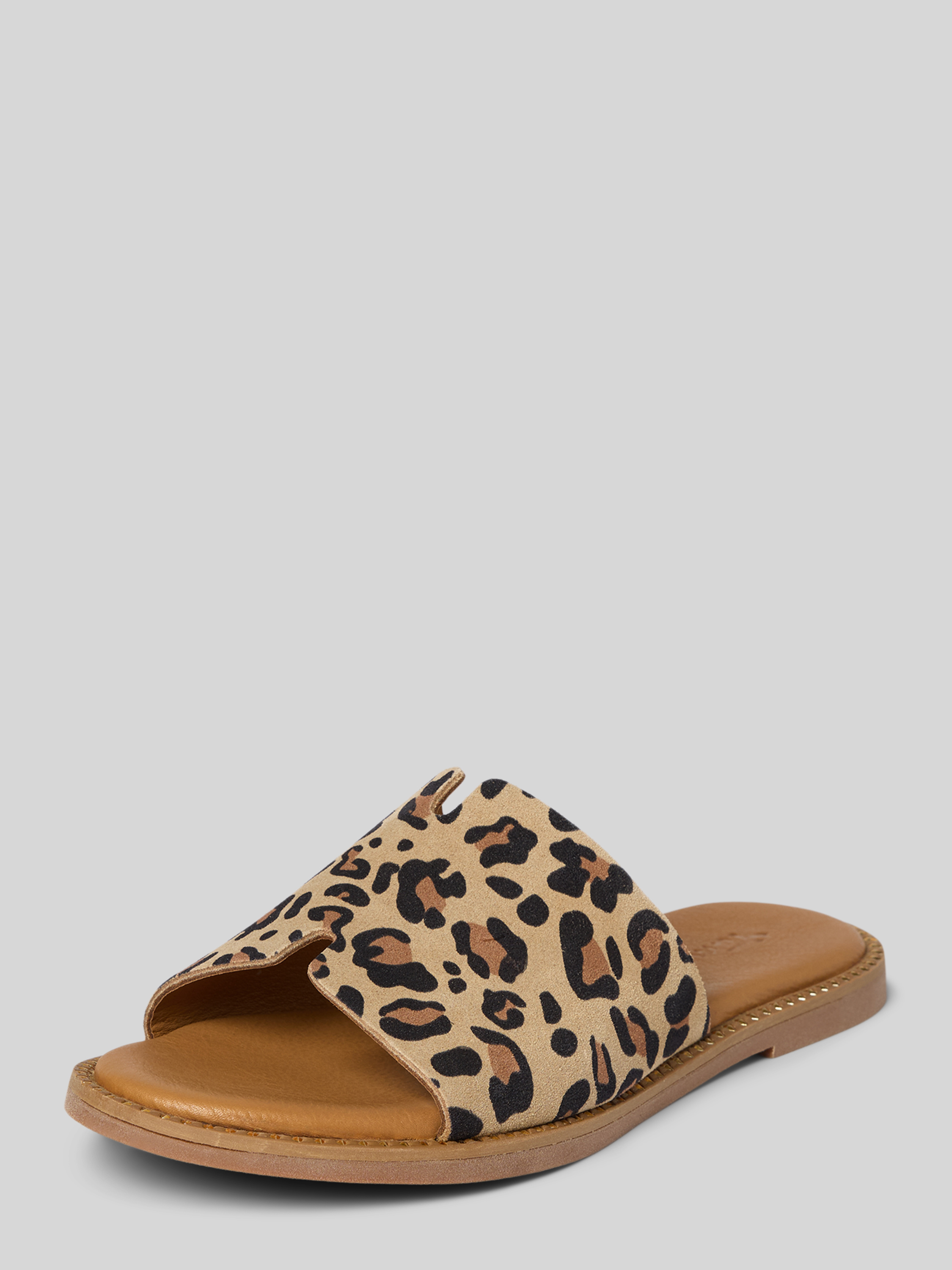 Klapki skórzane z fakturowaną podeszwą - beżowy