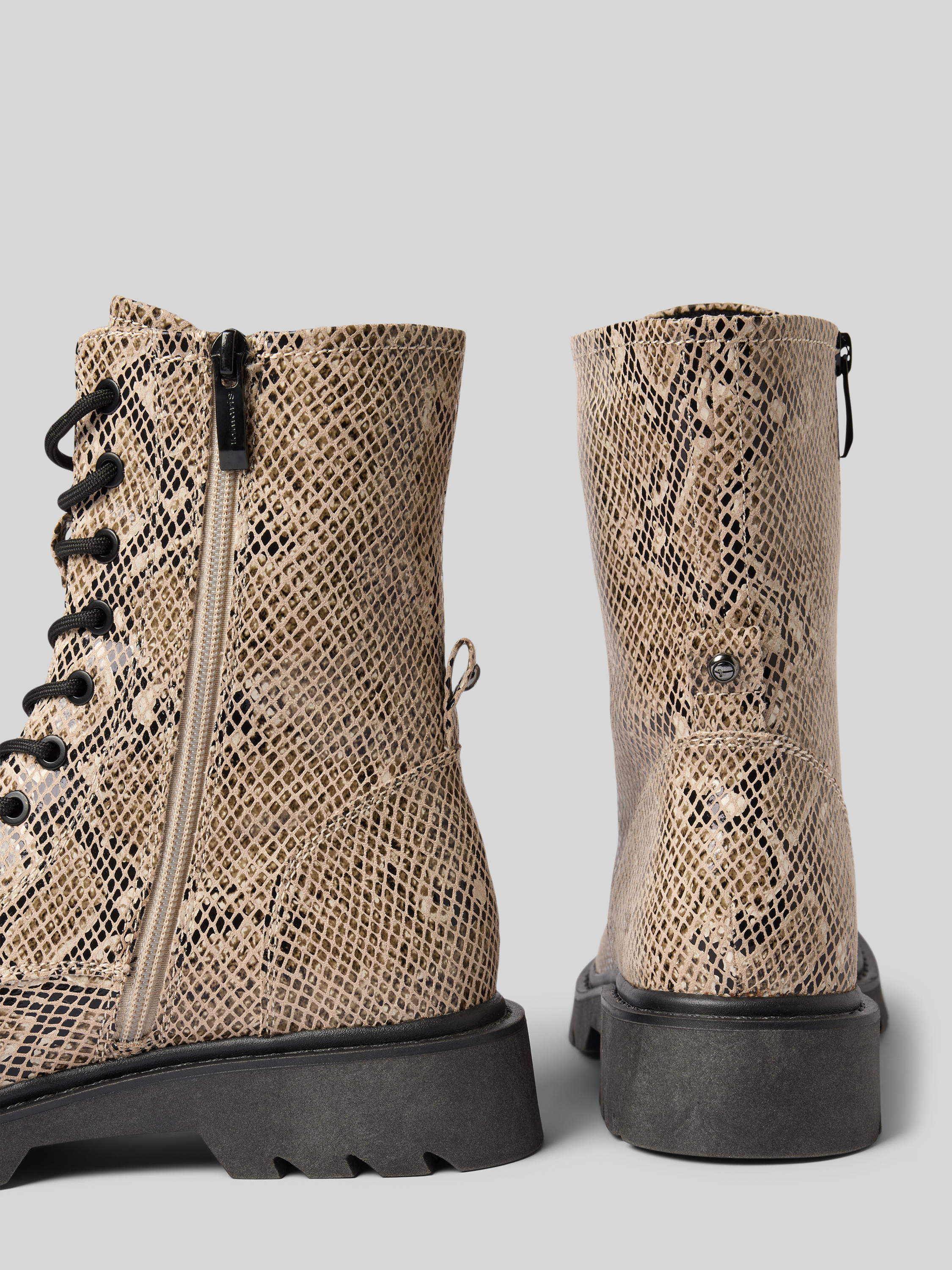 Kozaki sznurowane z zamkiem błyskawicznym - beżowy