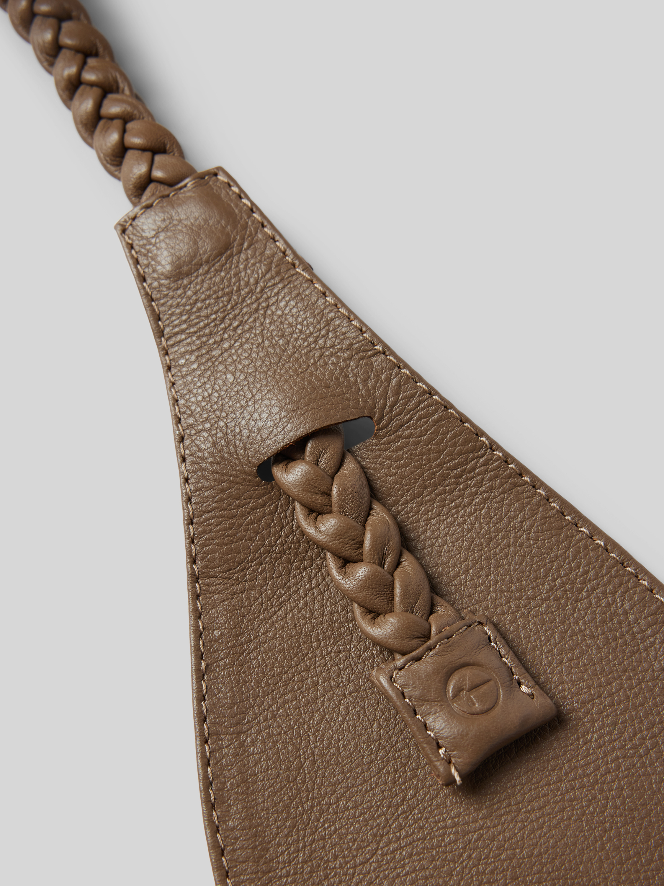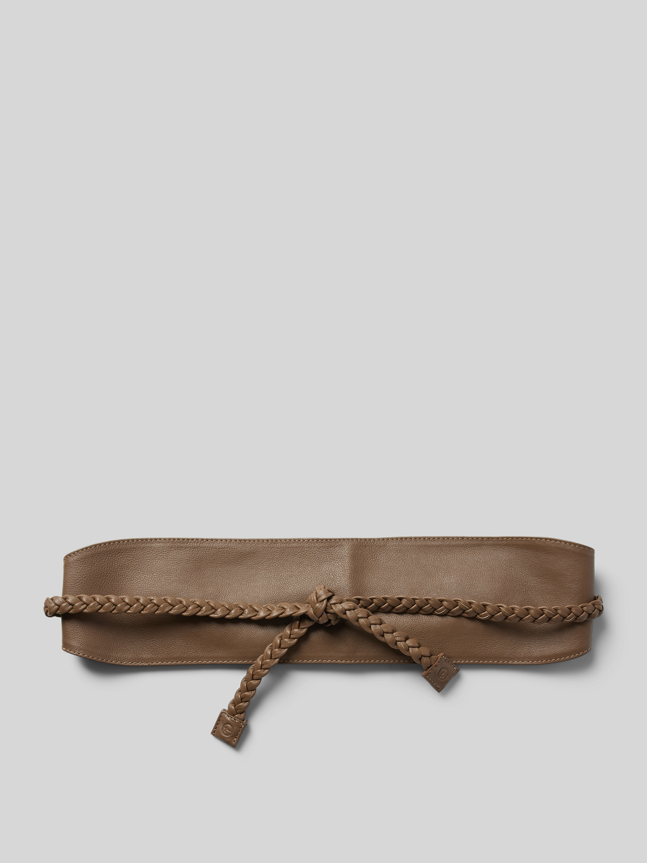 Pasek ze skóry z wiązanym detalem - szarobrązowy