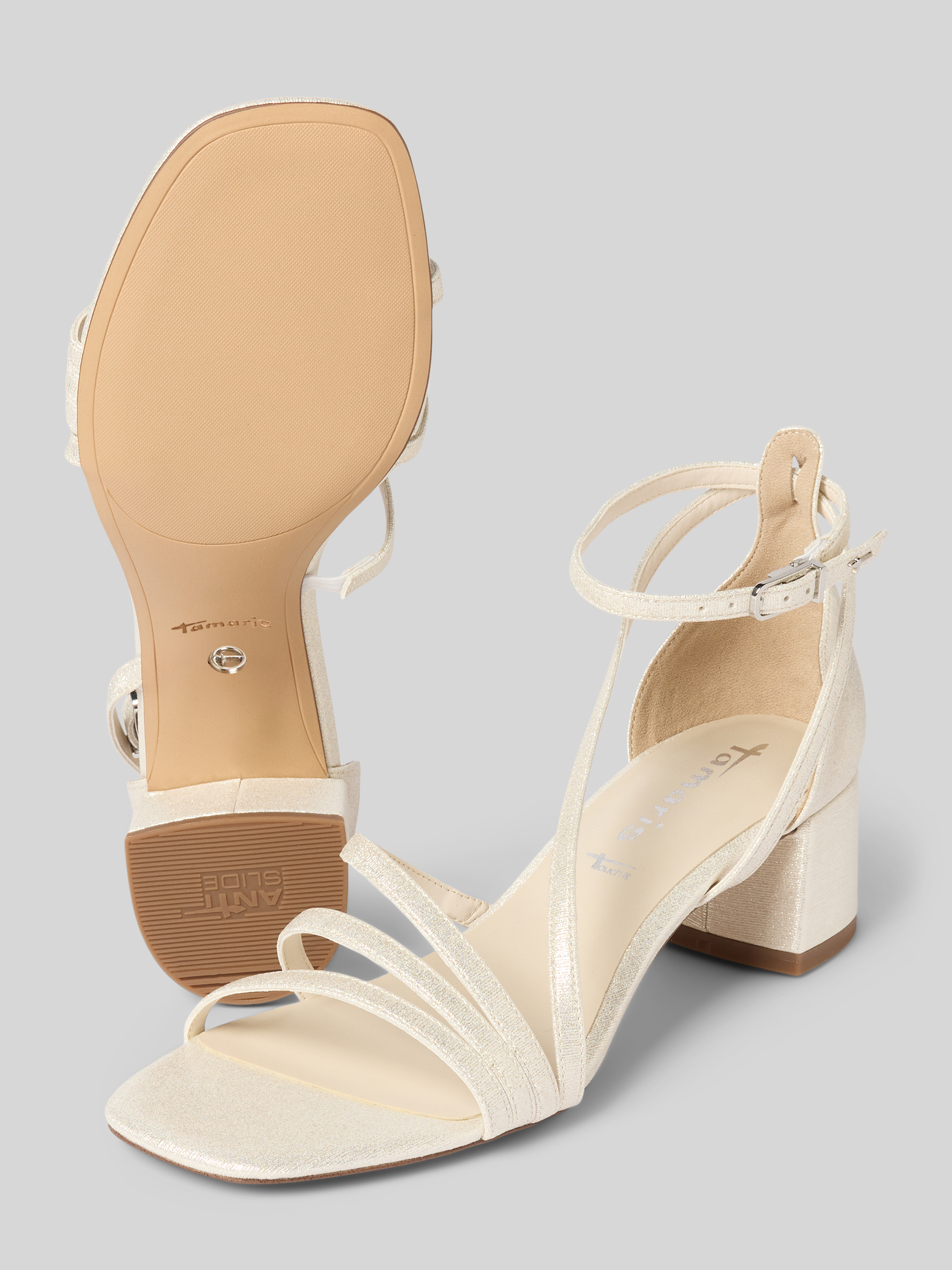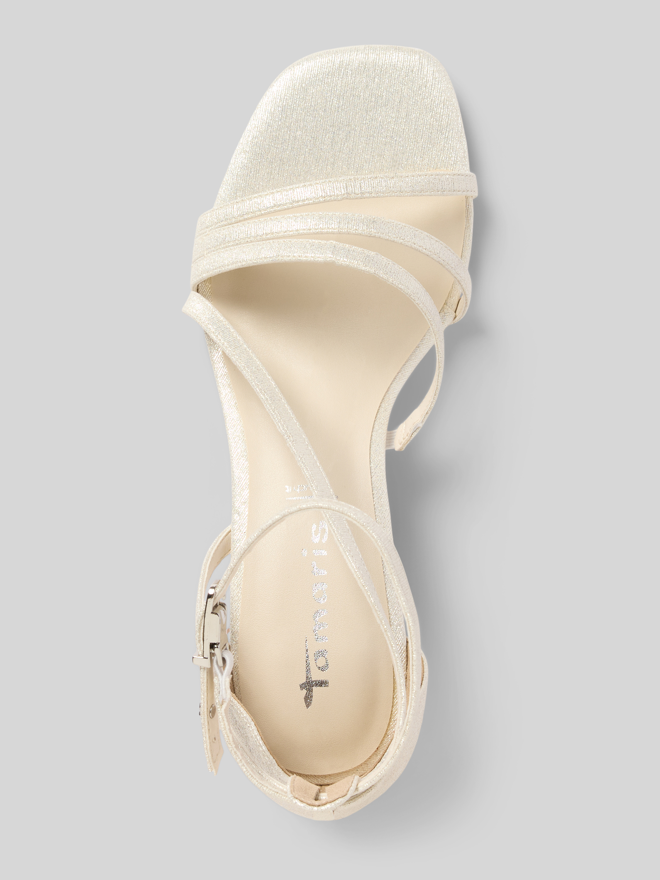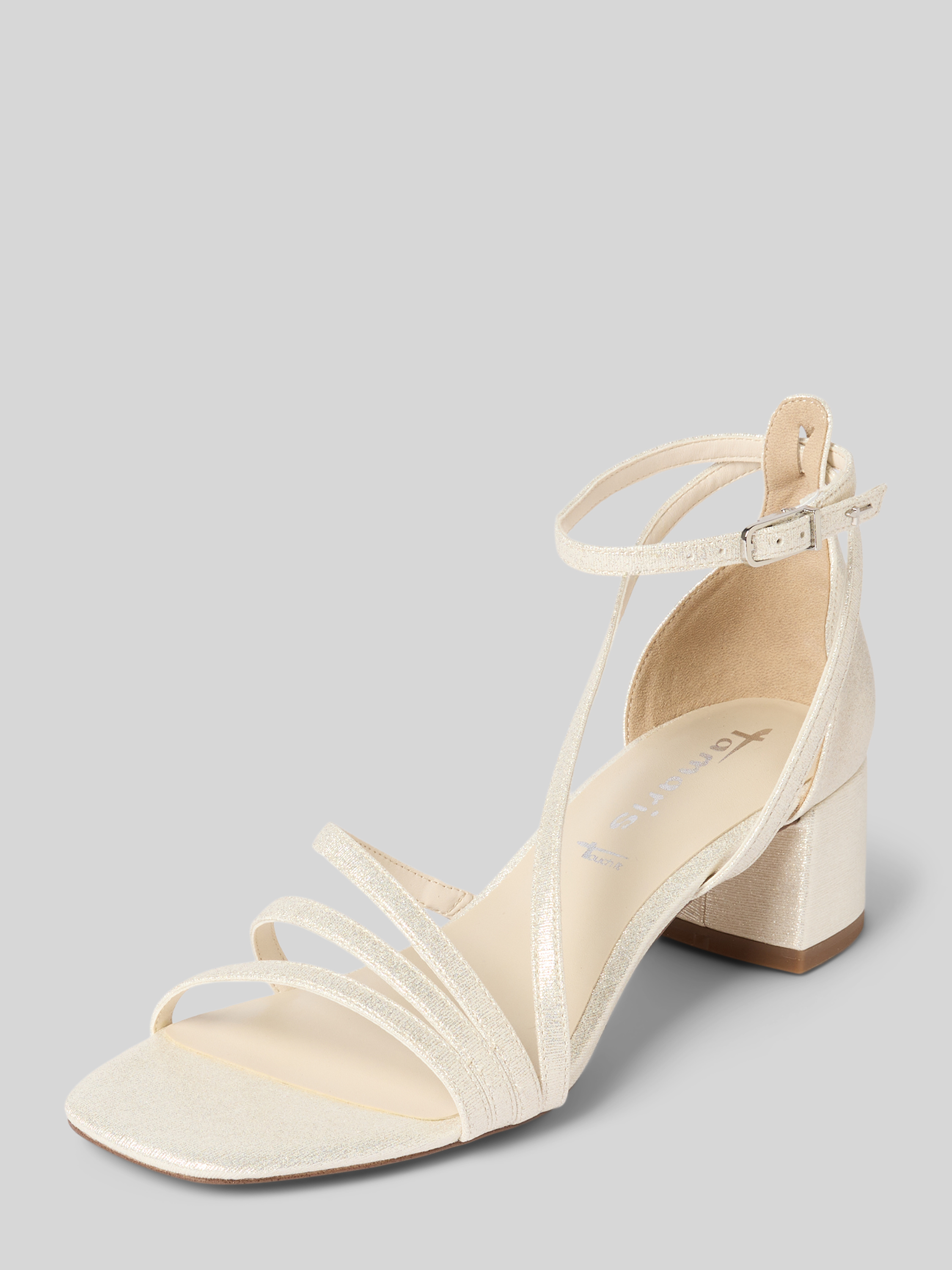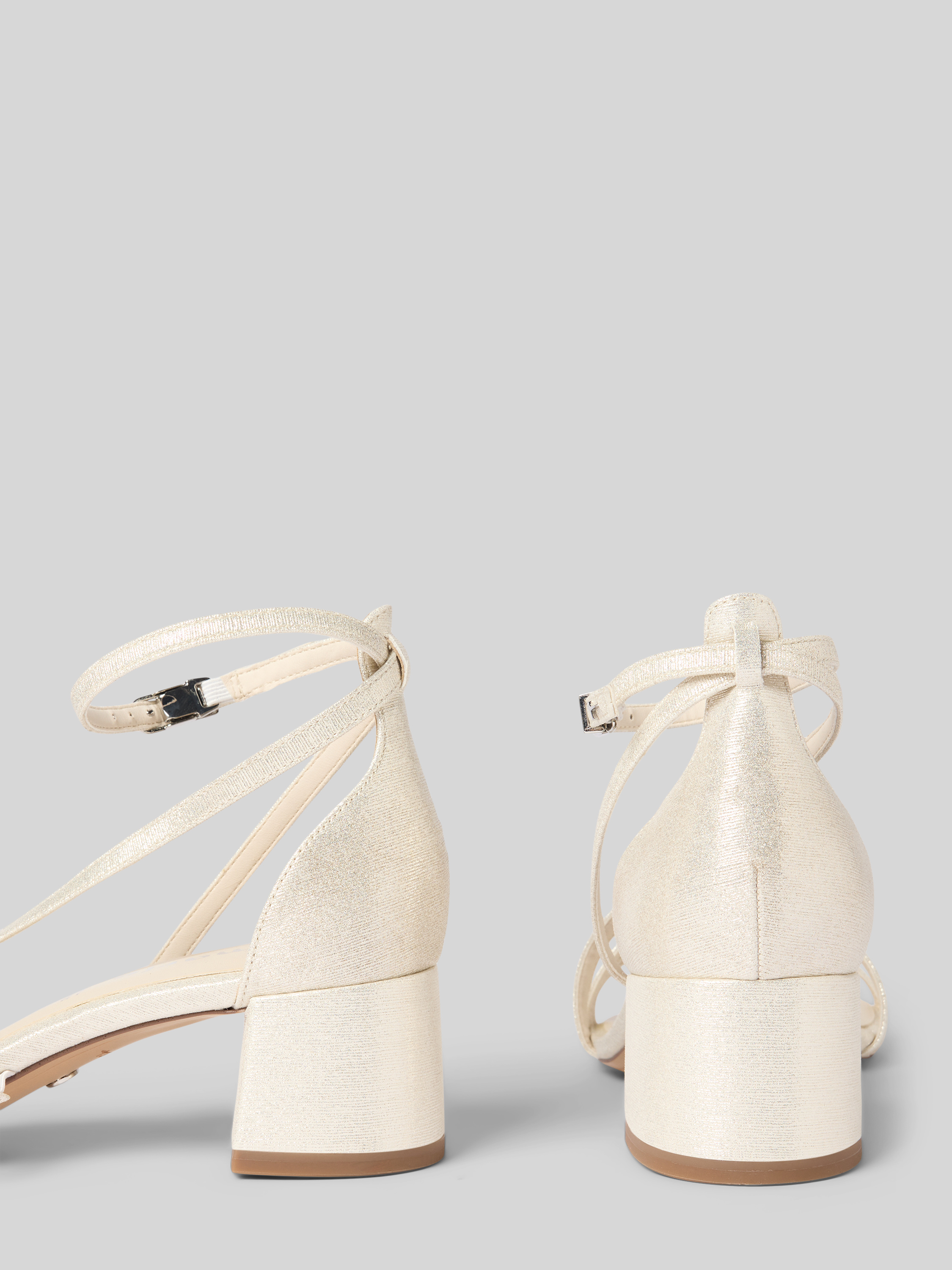 Sandały na słupku z efektem błyszczącym - metaliczny beżowy
