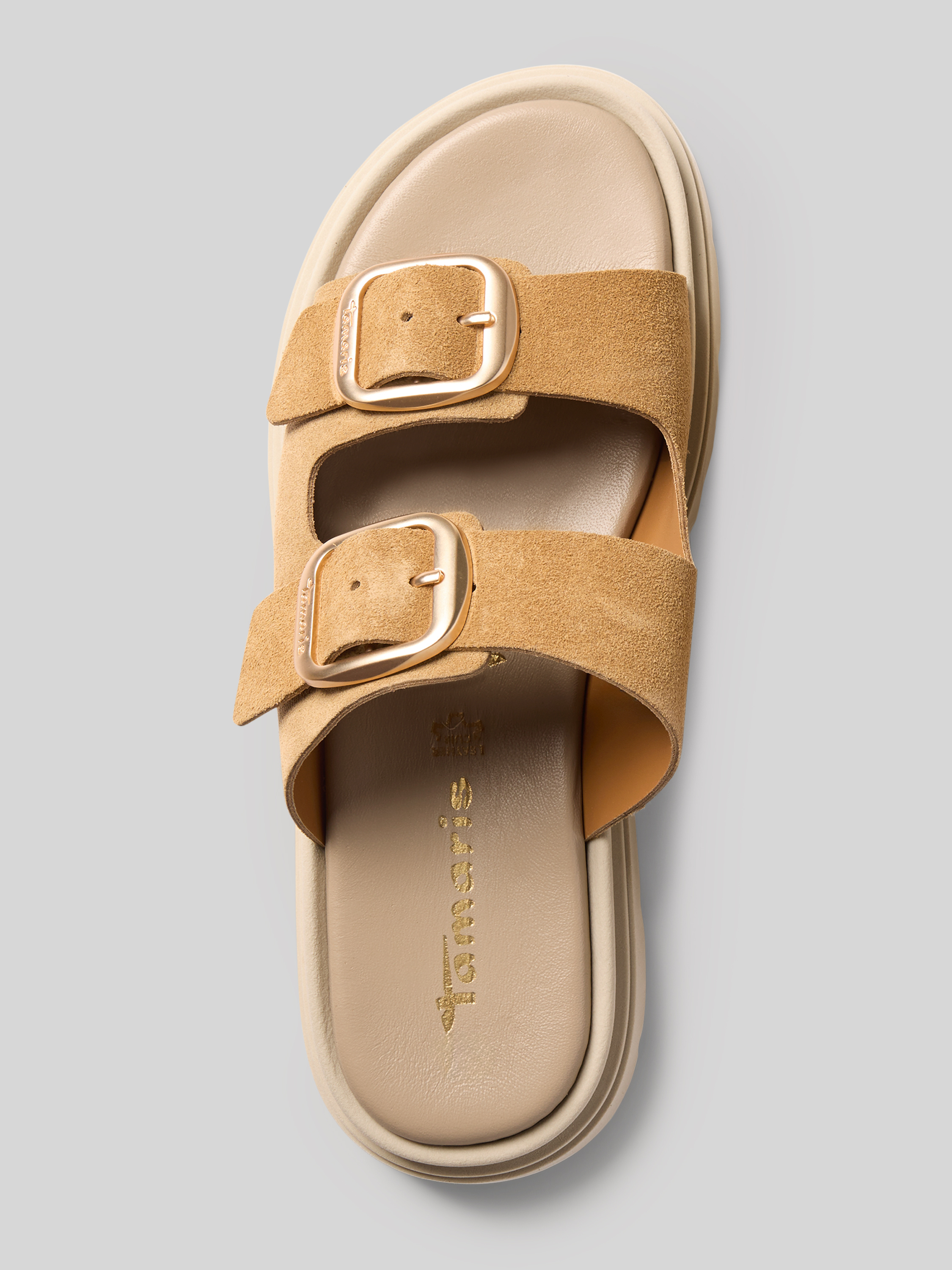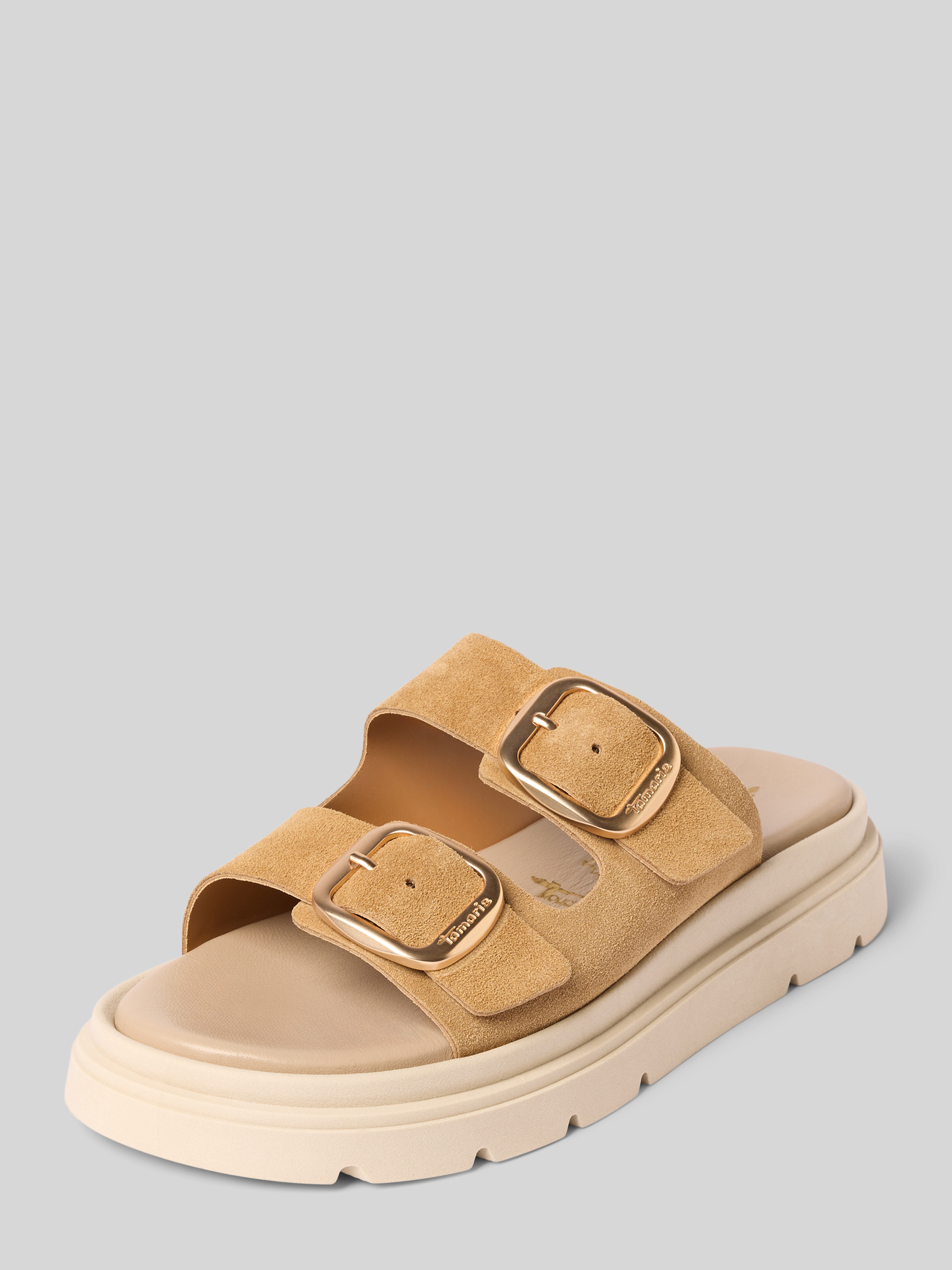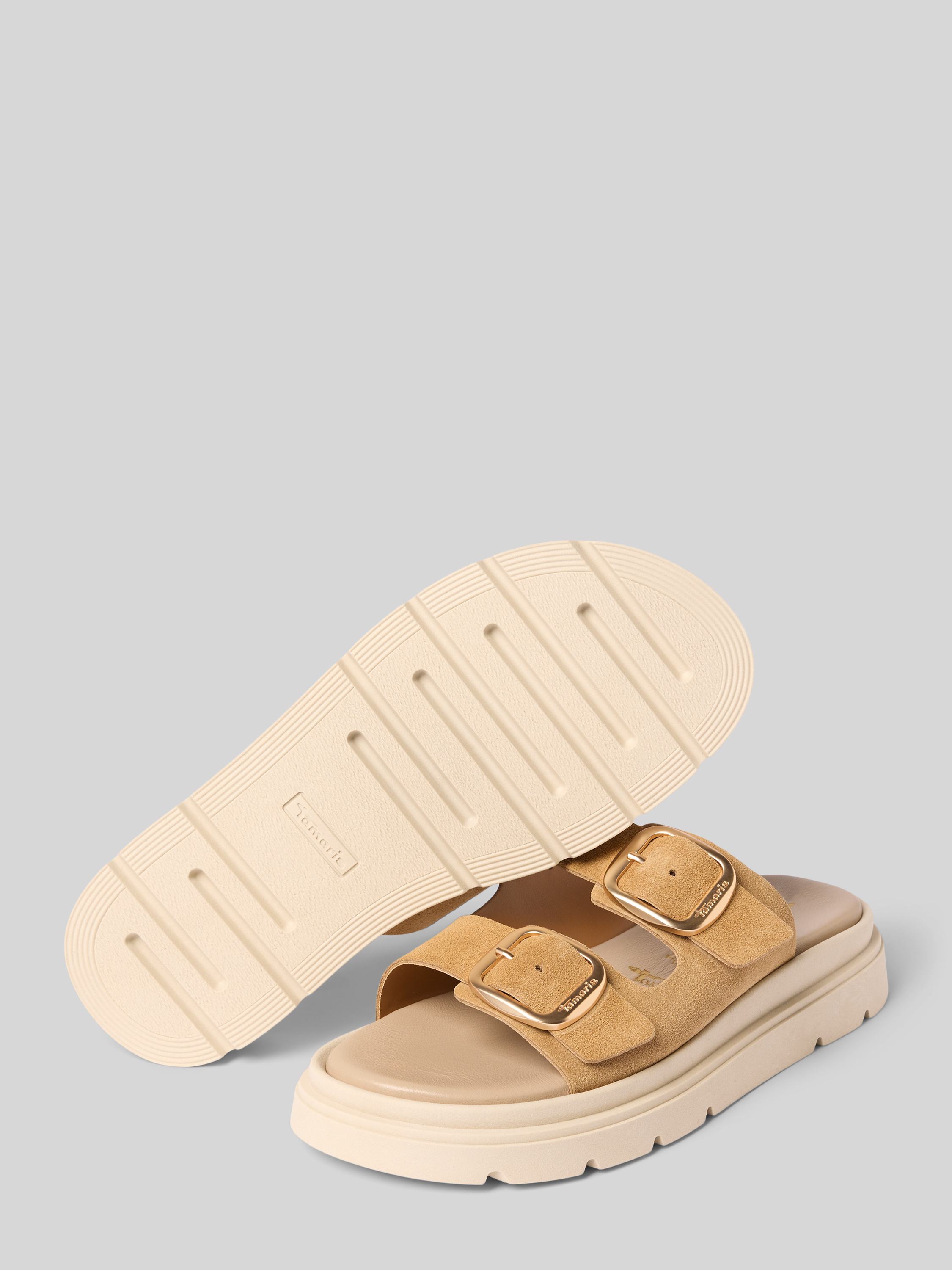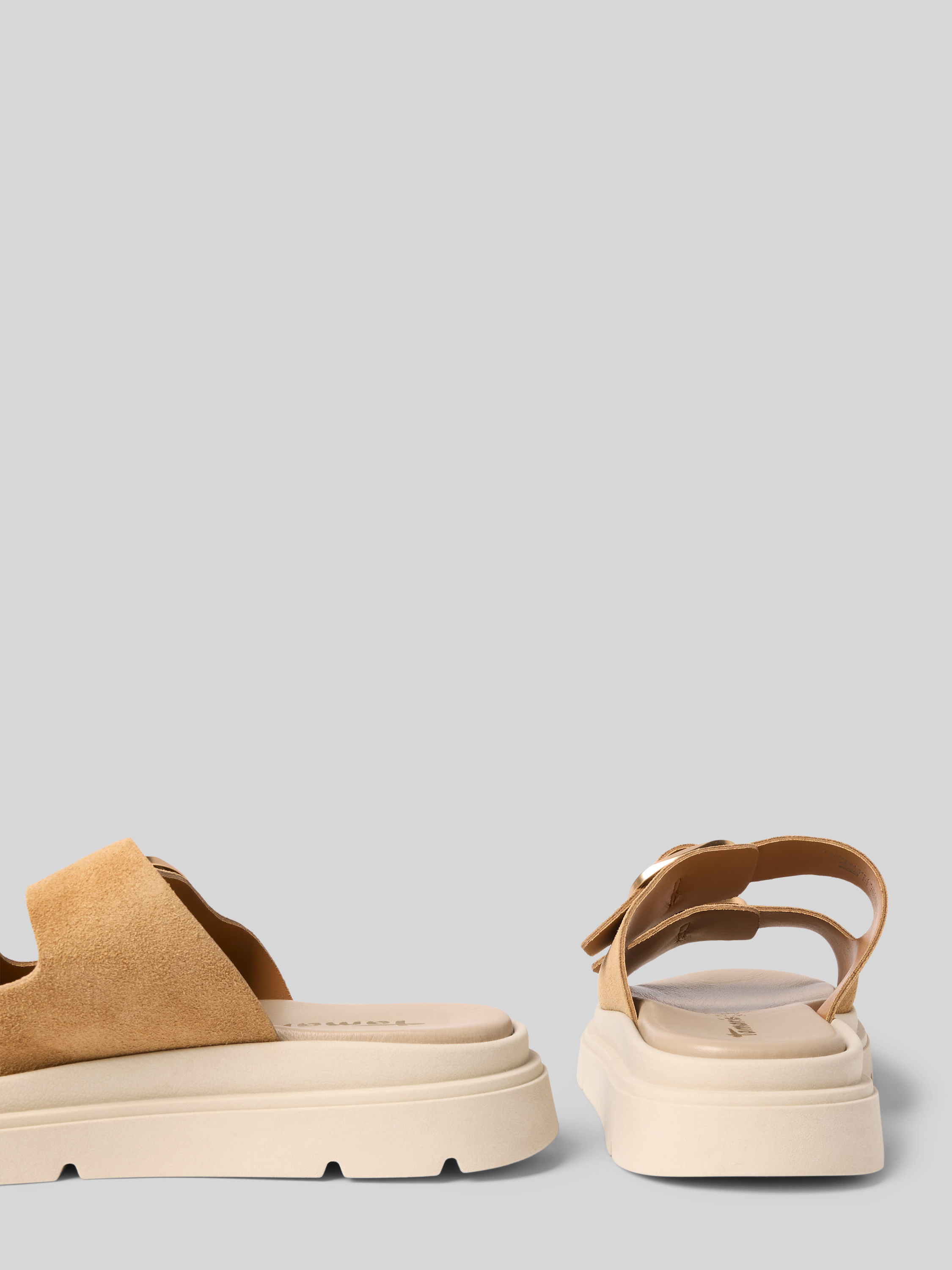 Sandały skórzane z podeszwą na platformie - piaskowy