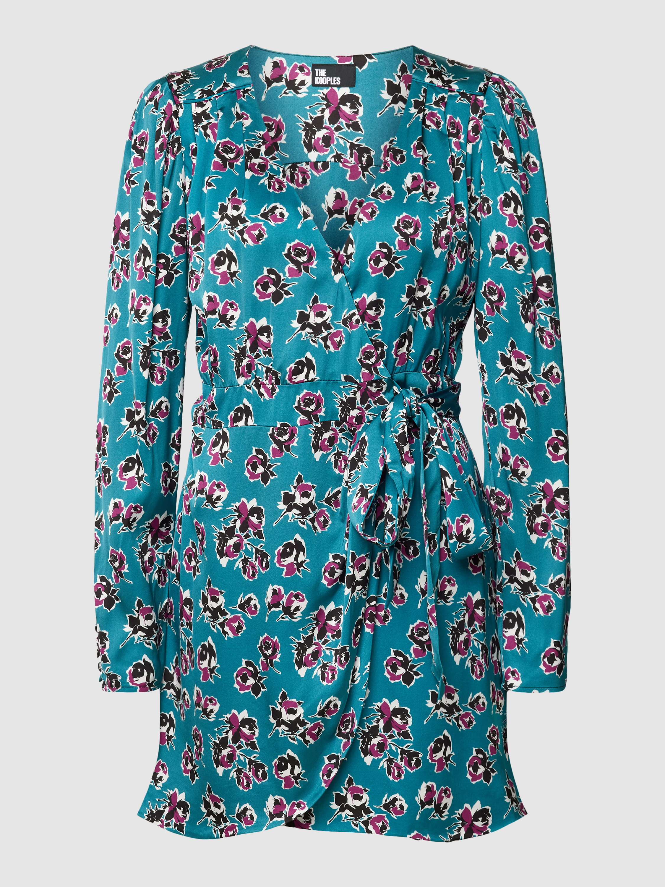 Sukienka mini w stylu kopertowym - mocnoróżowy