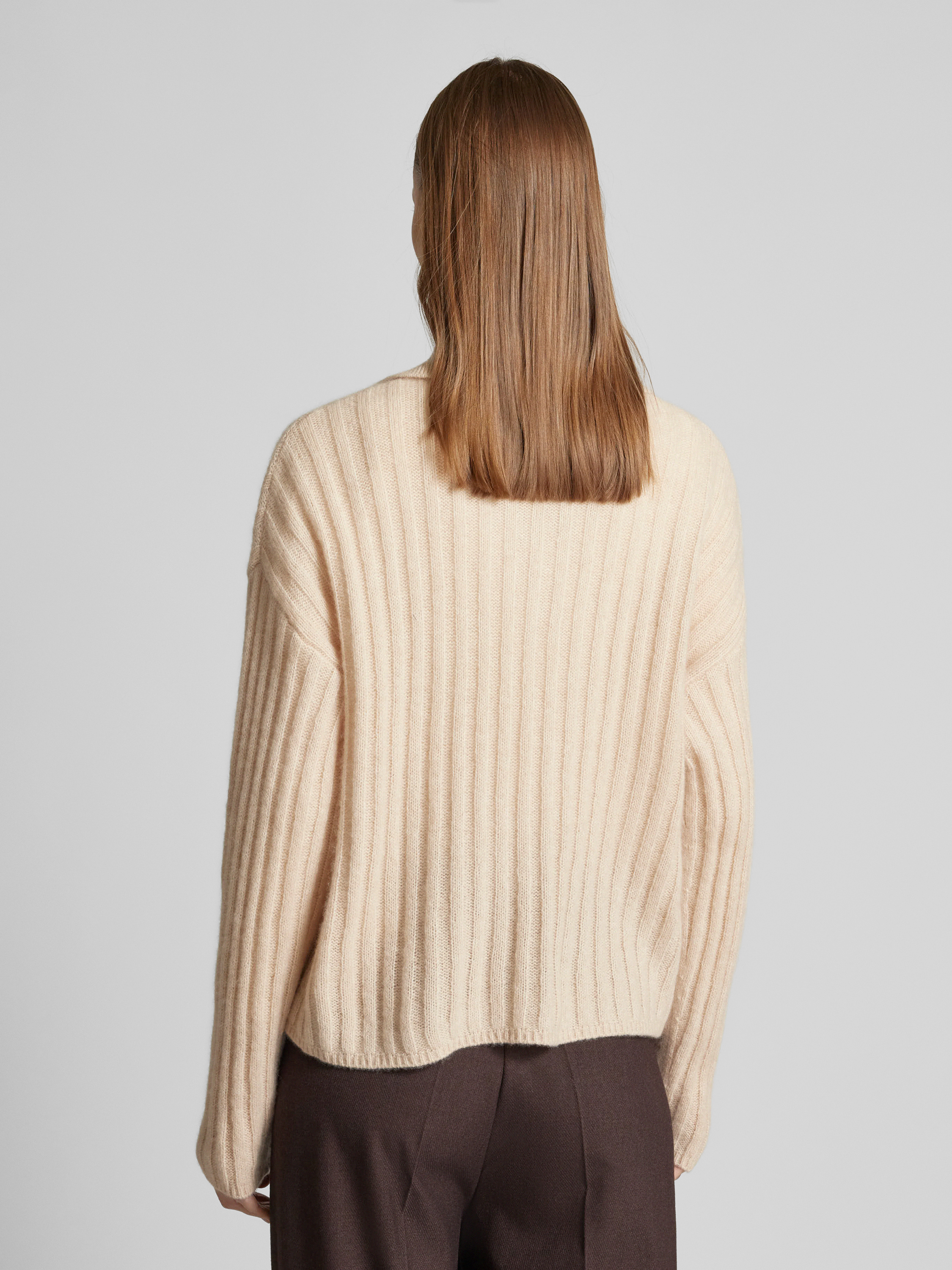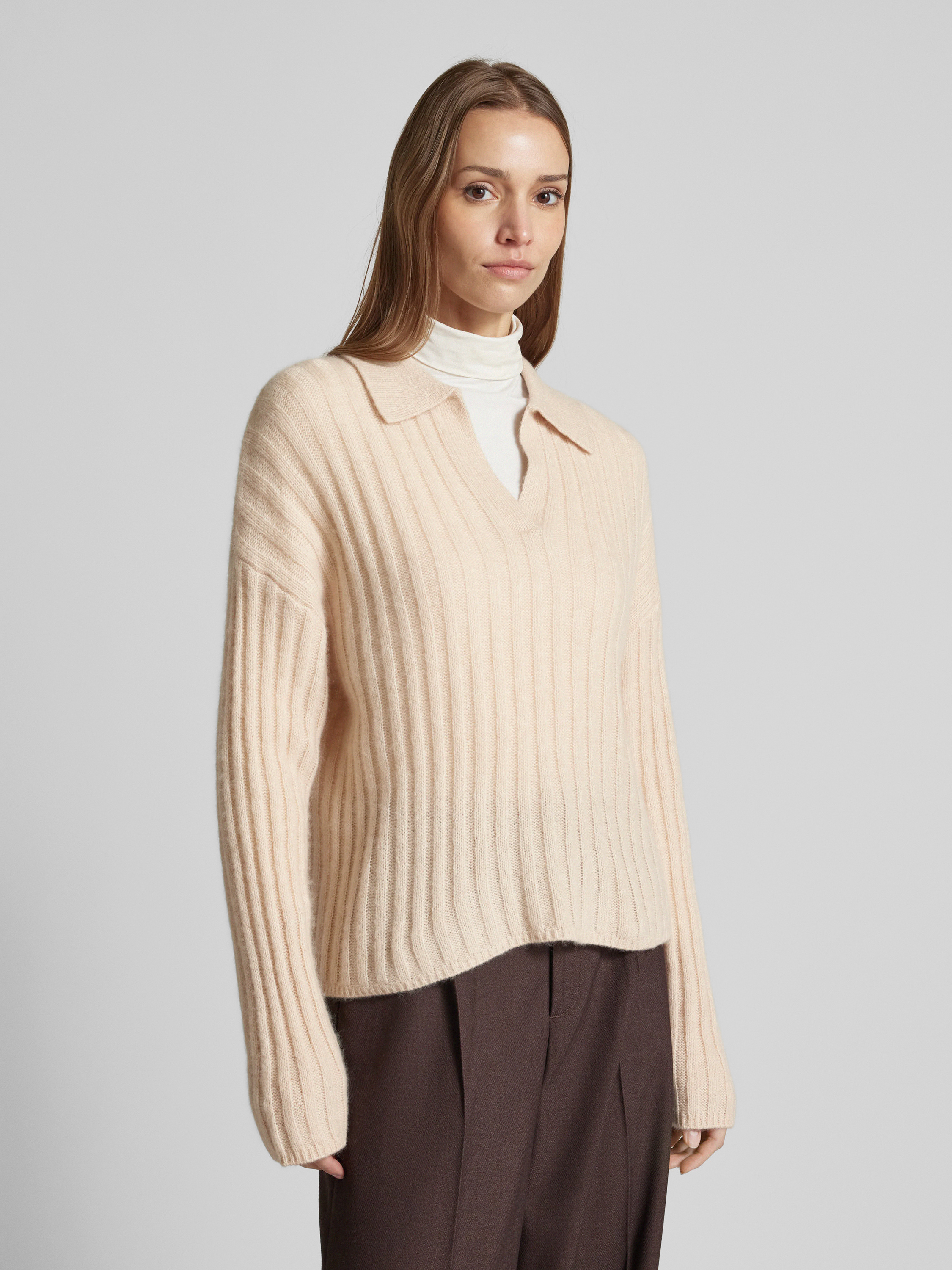 Sweter z dzianiny z obniżonymi ramionami - piaskowy melanż
