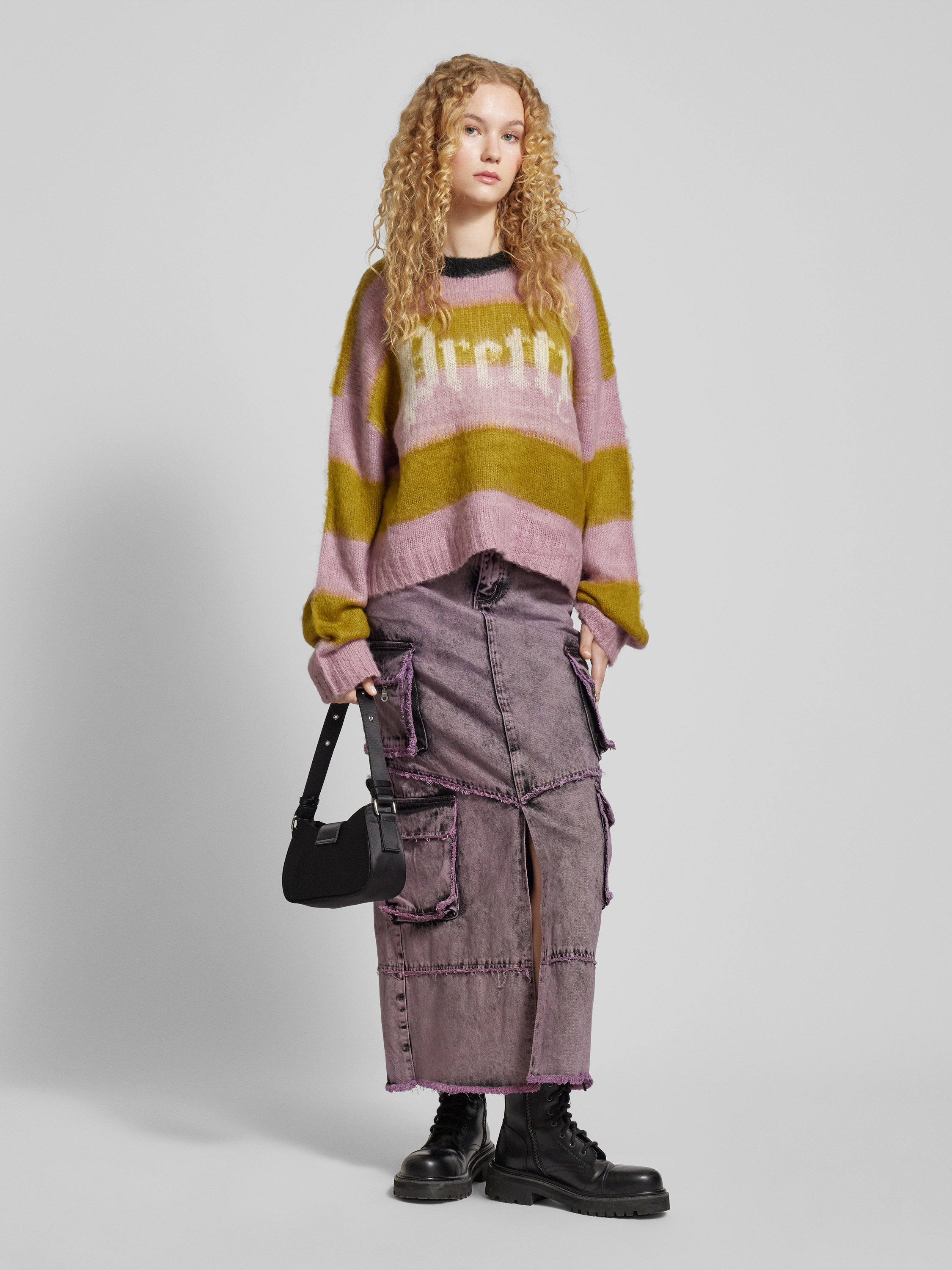 Spódnica jeansowa z 5 kieszeniami model ‘VORTEX’ - mocnoróżowy