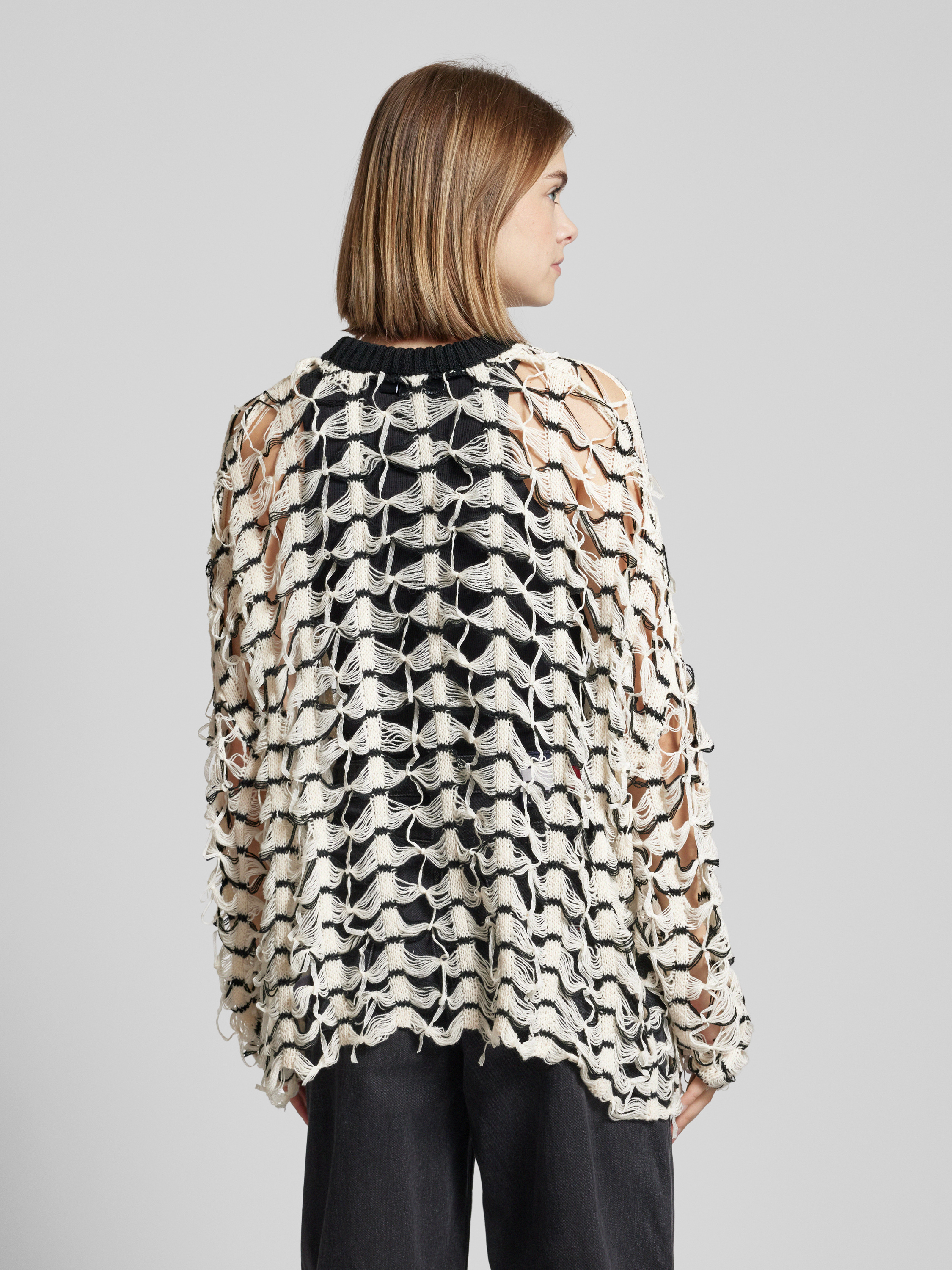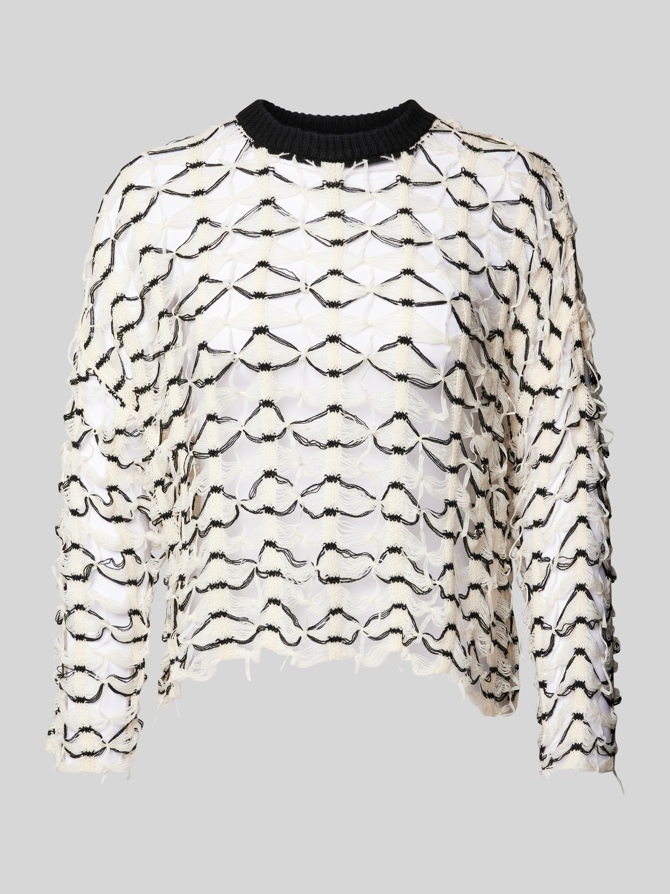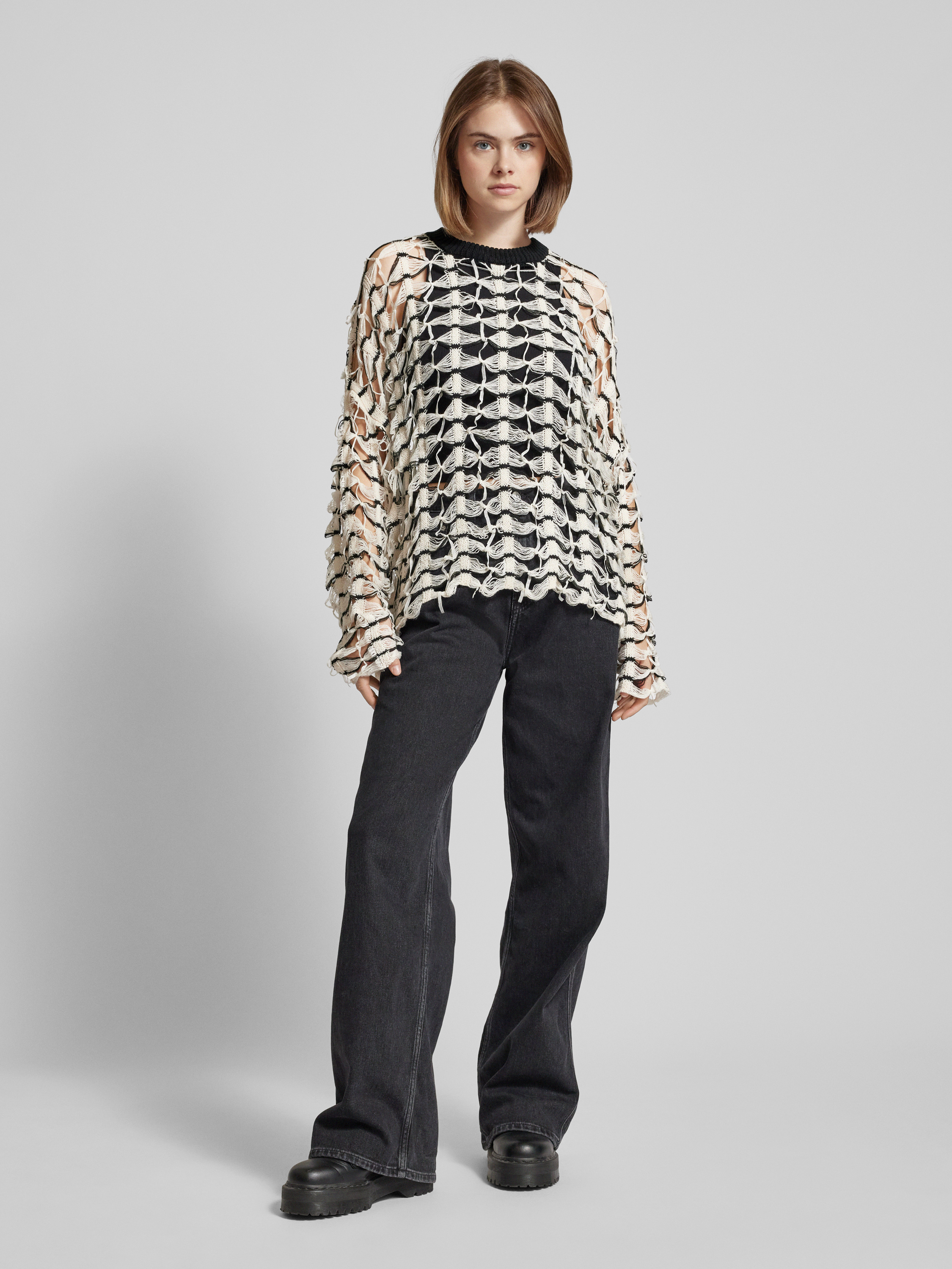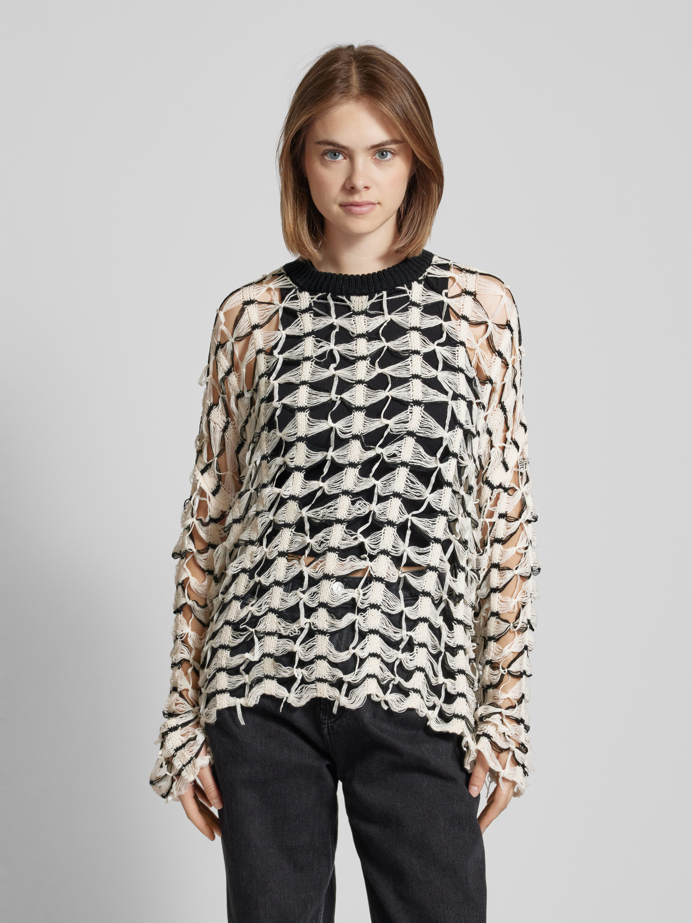 Sweter z dzianiny z prążkowanym, okrągłym dekoltem - czarny