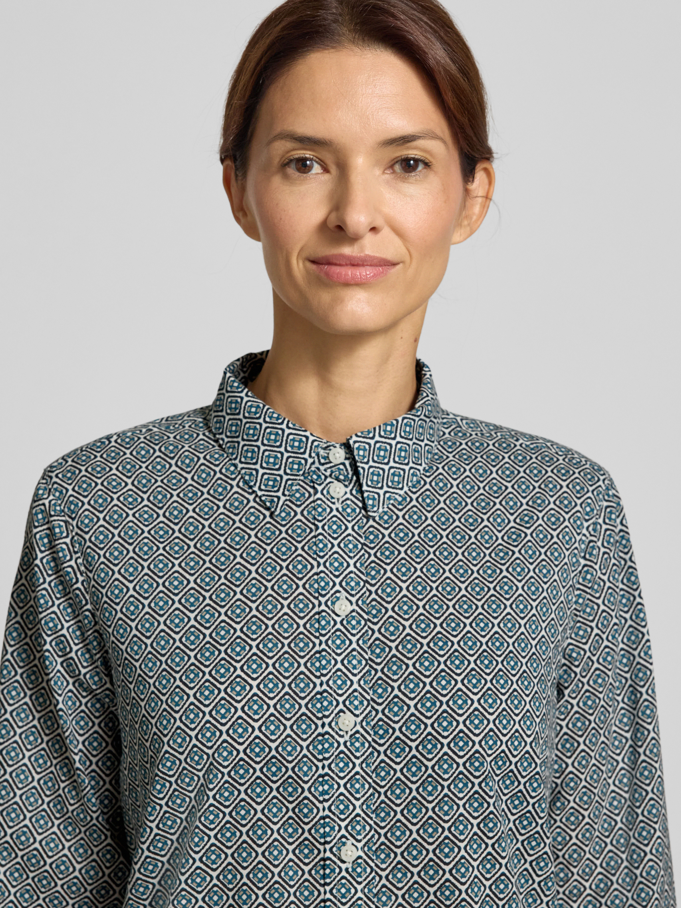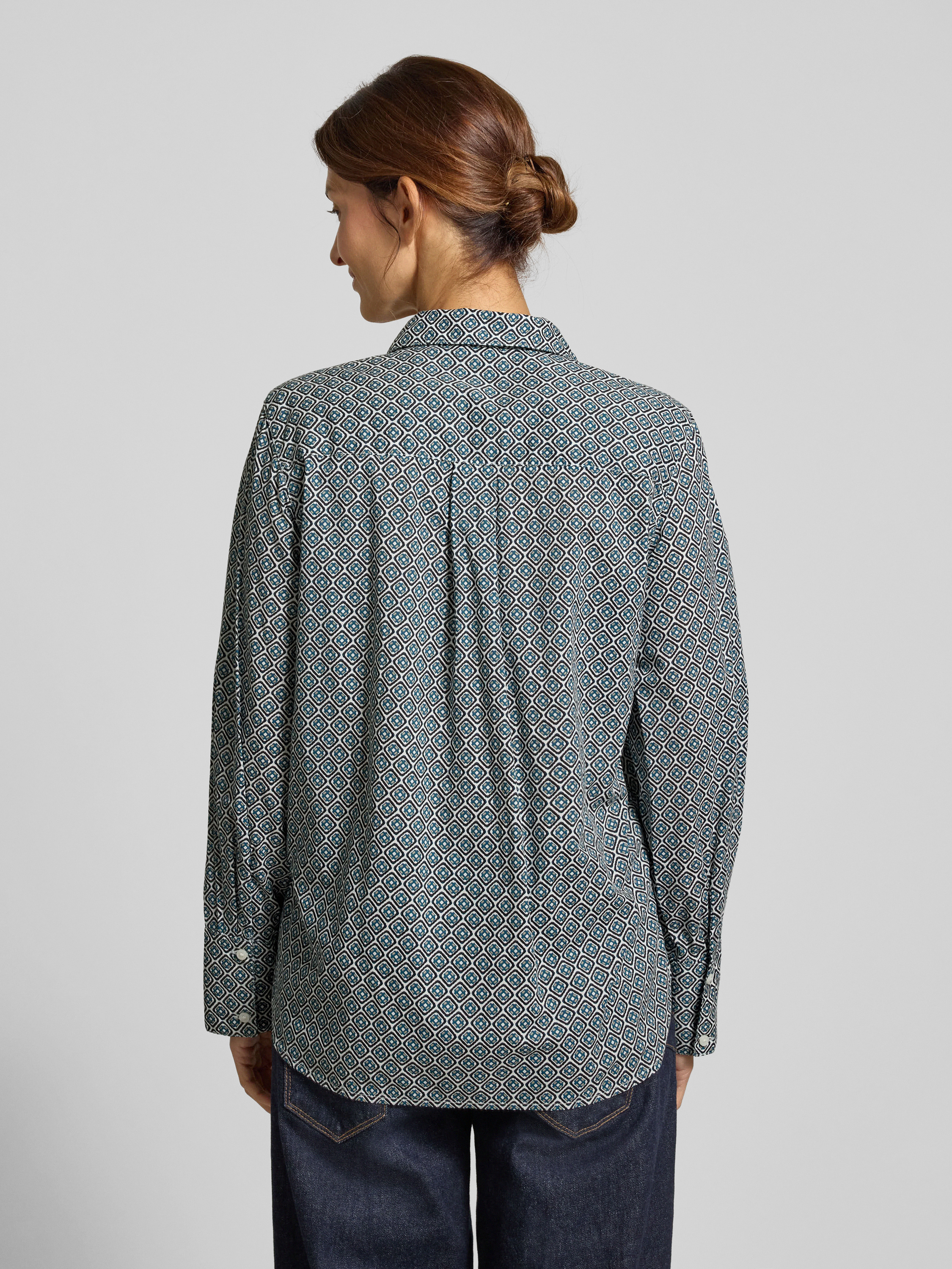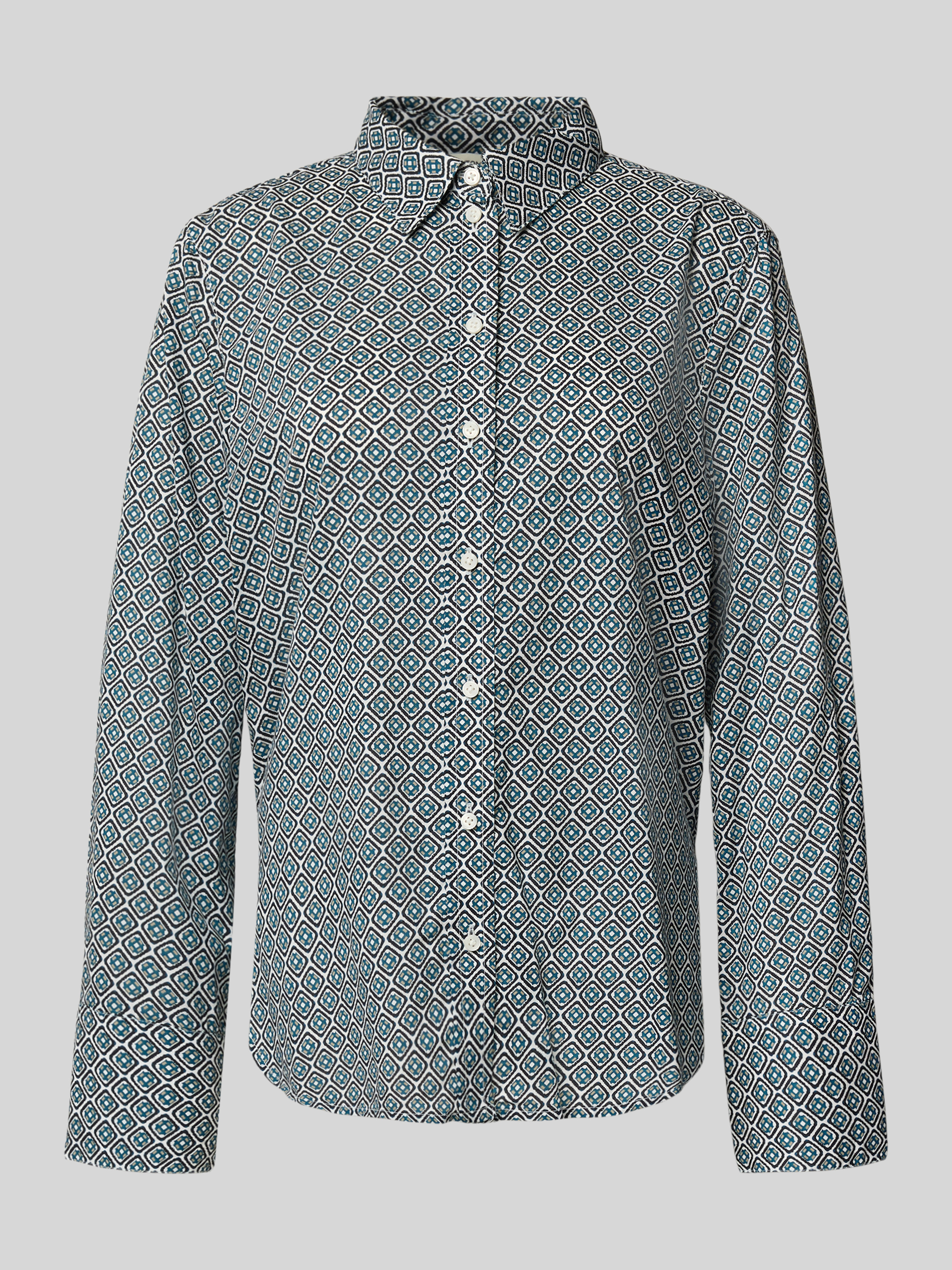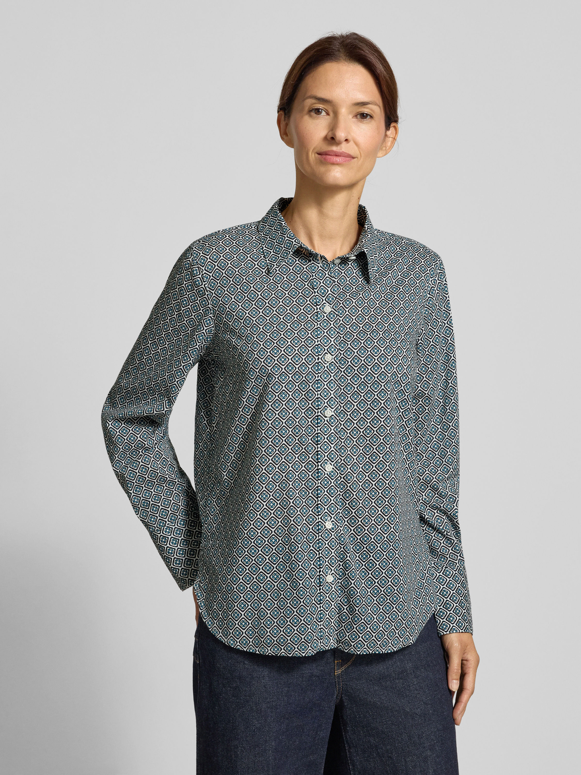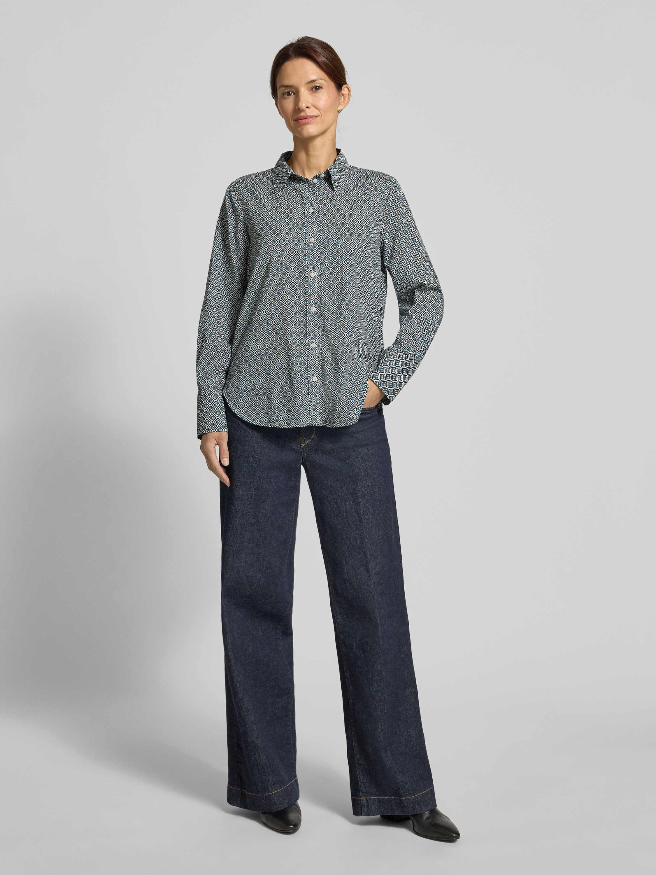 Bluzka koszulowa o kroju regular fit z mieszanki bawełny - petrol