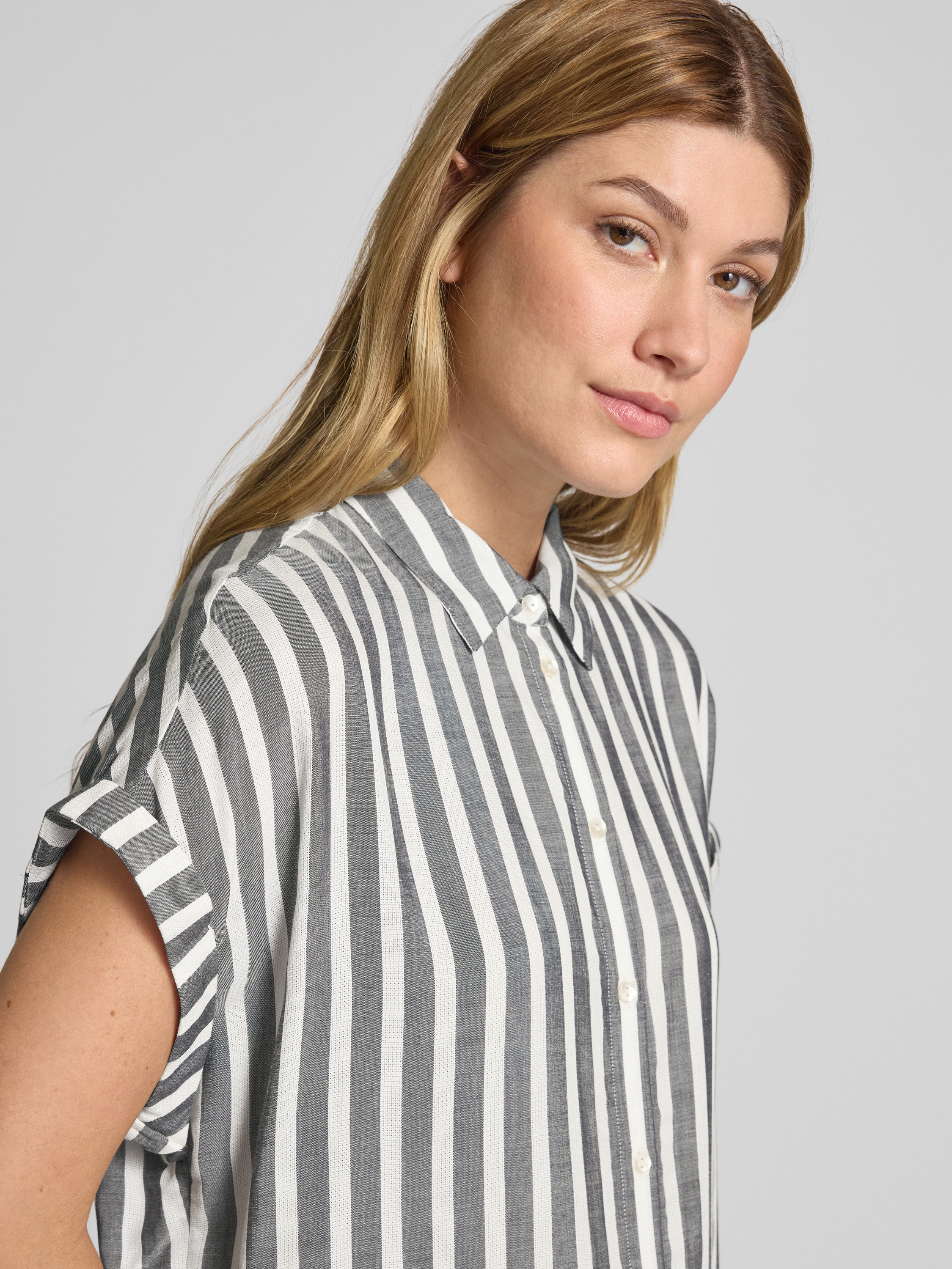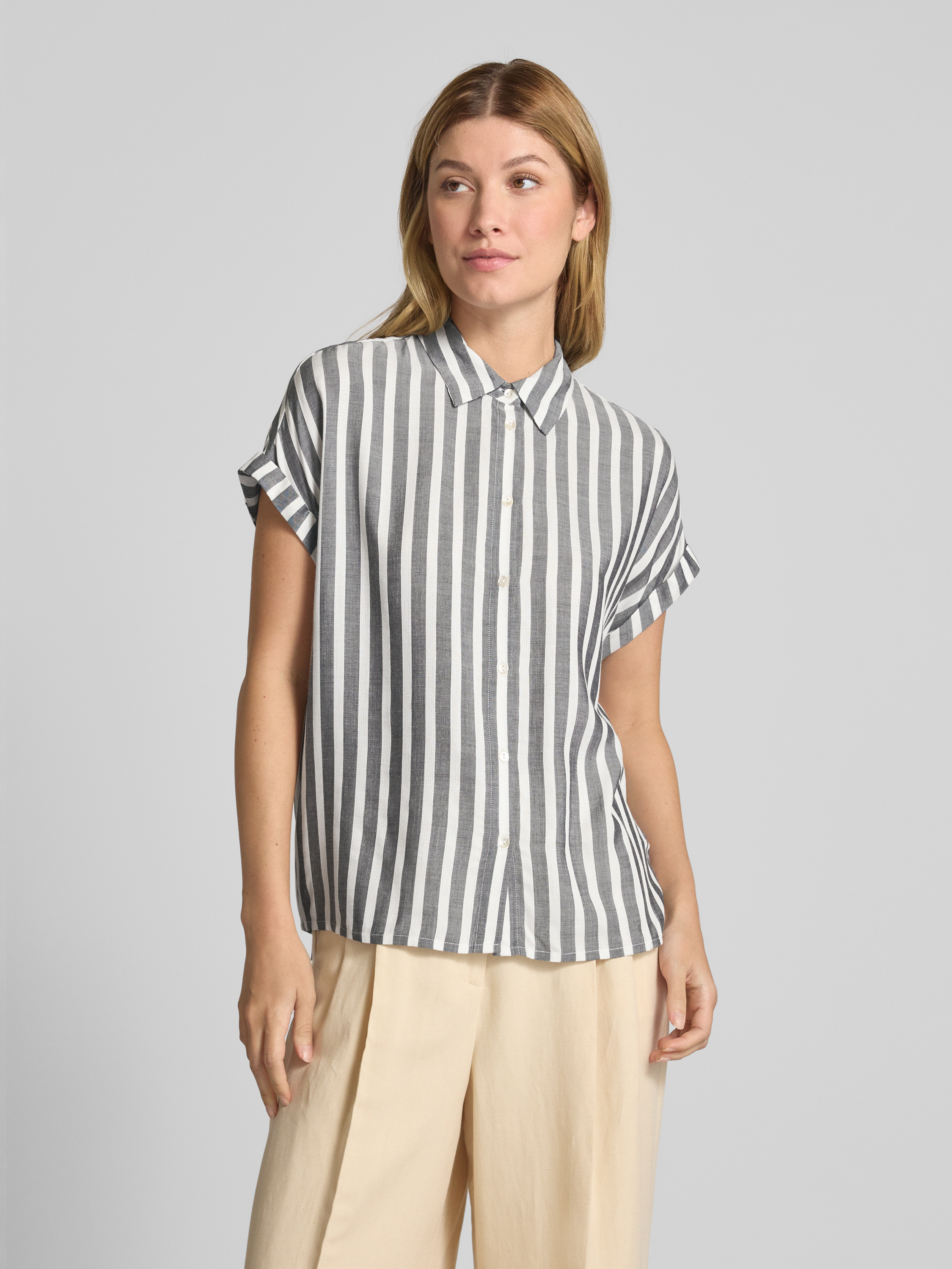 Bluzka koszulowa o luźnym kroju z czystej wiskozy - granatowy