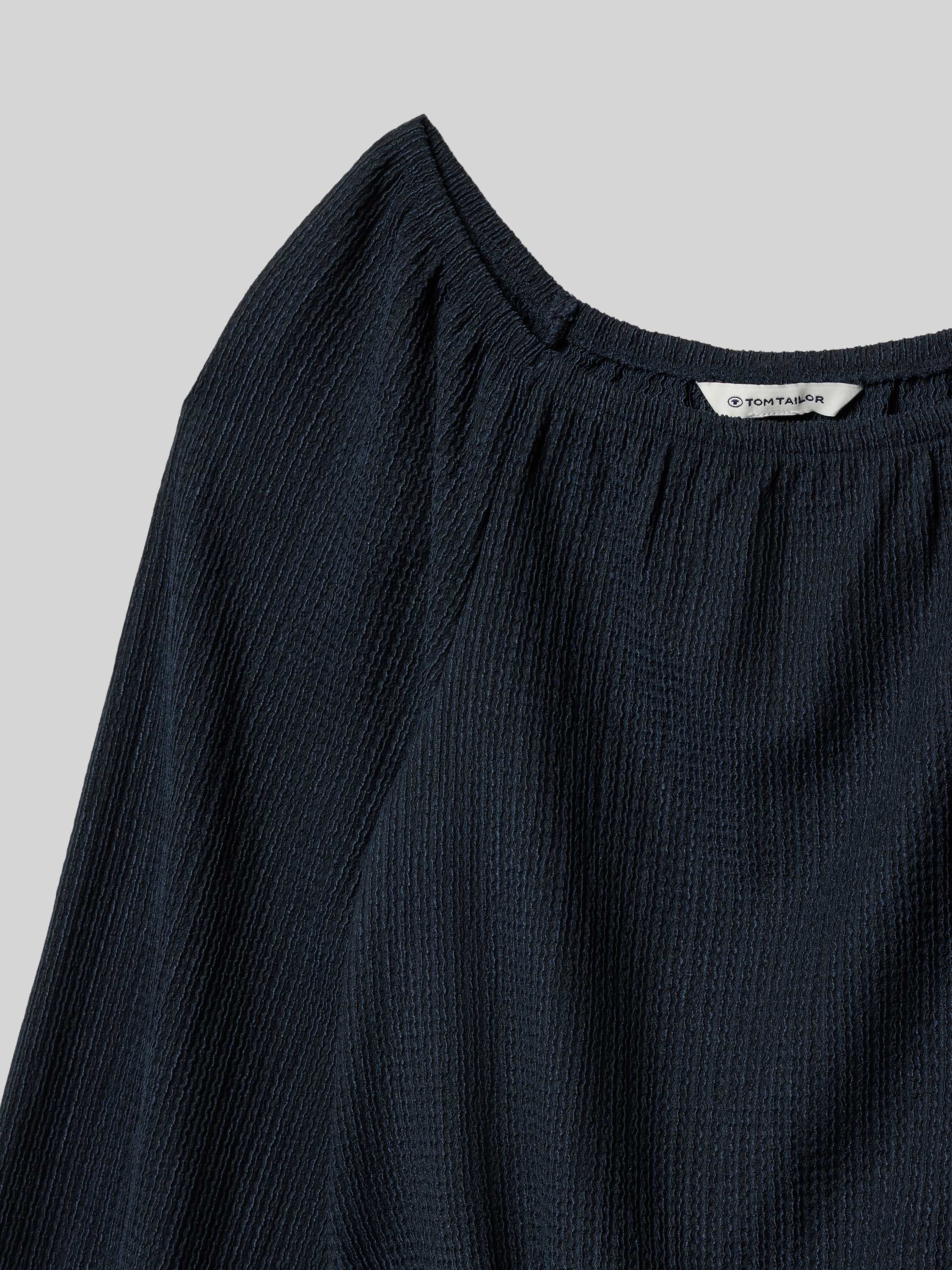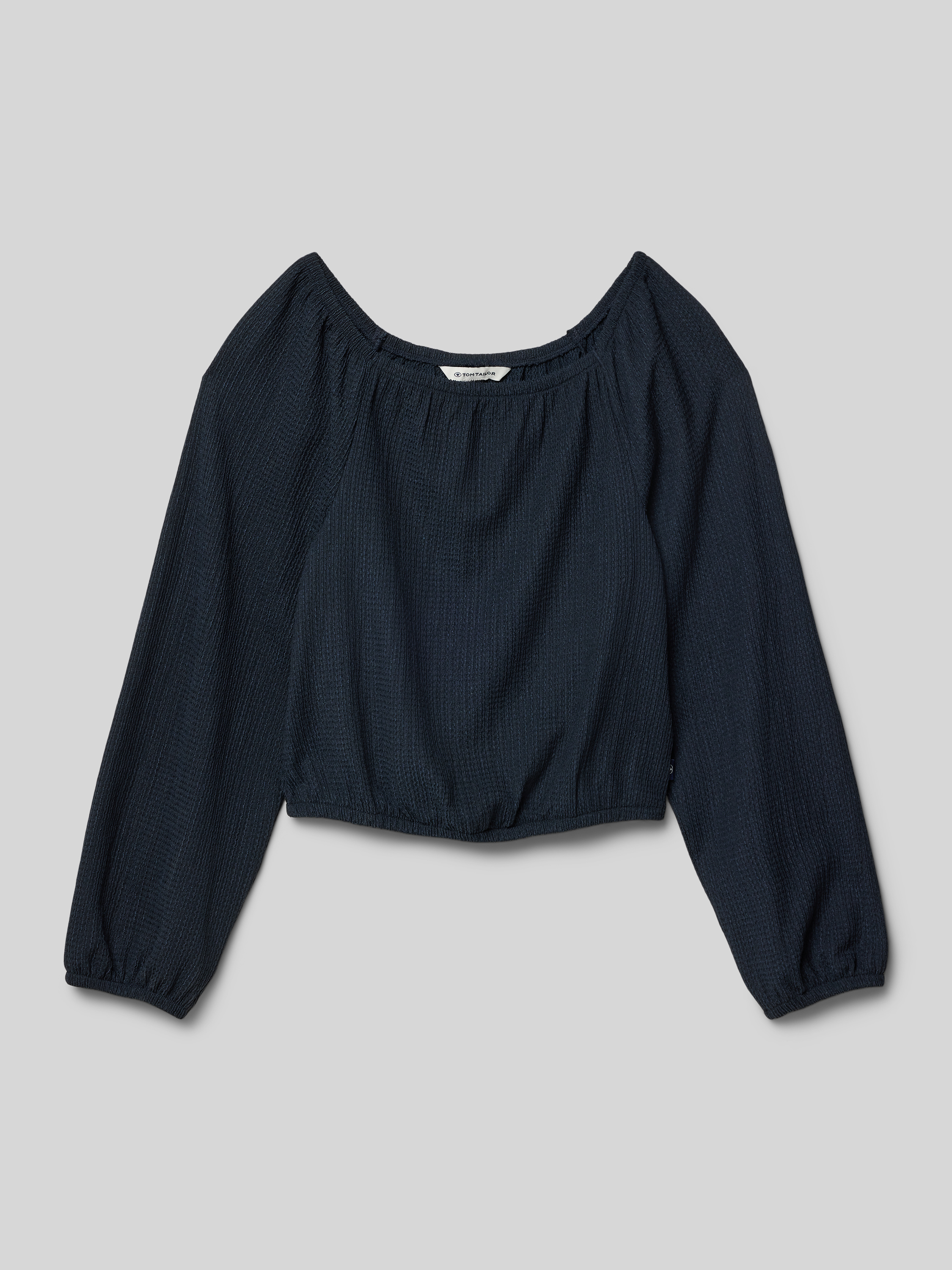 Bluzka z długim rękawem o kroju regular fit z dekoltem carmen - granatowy
