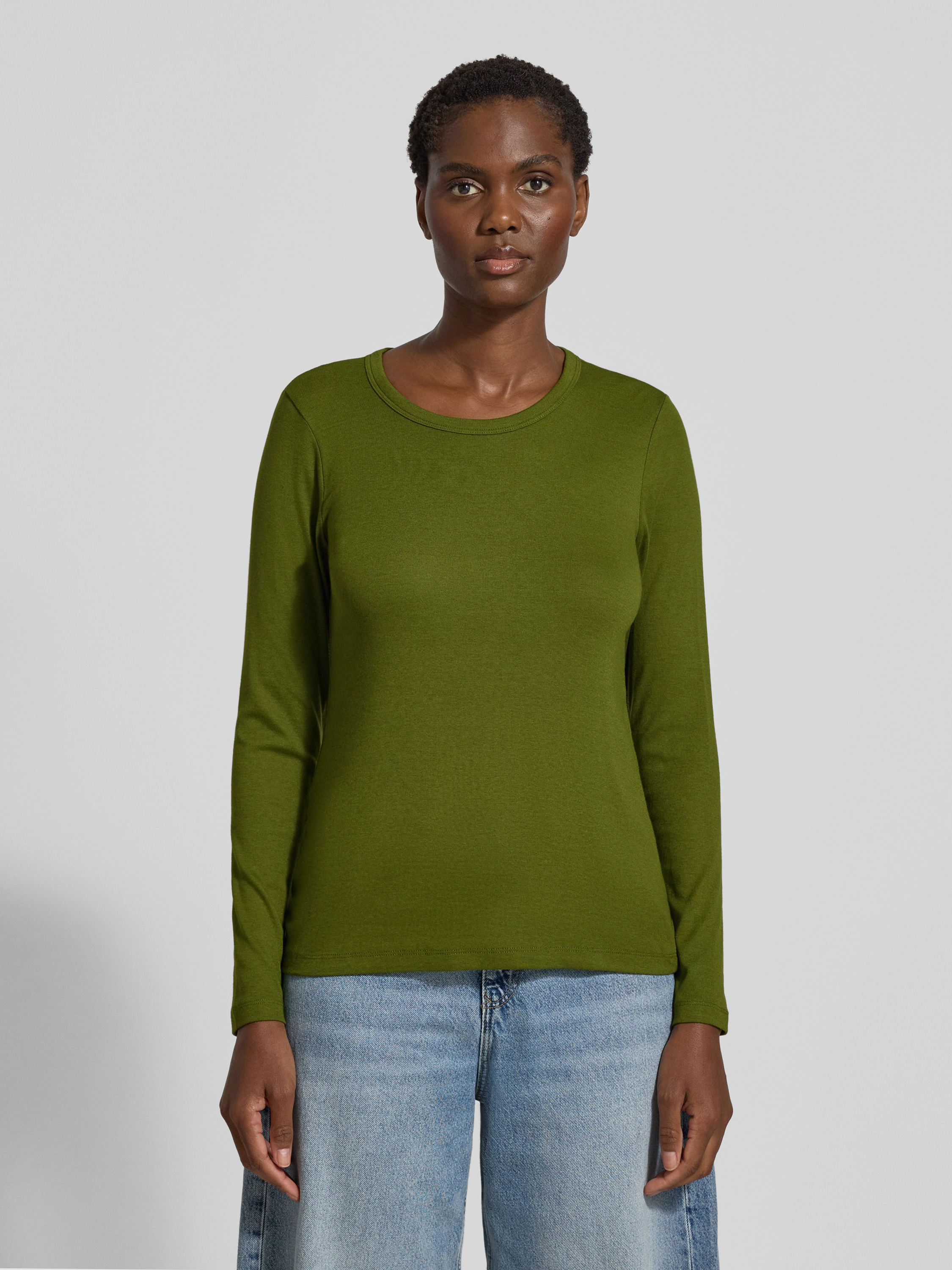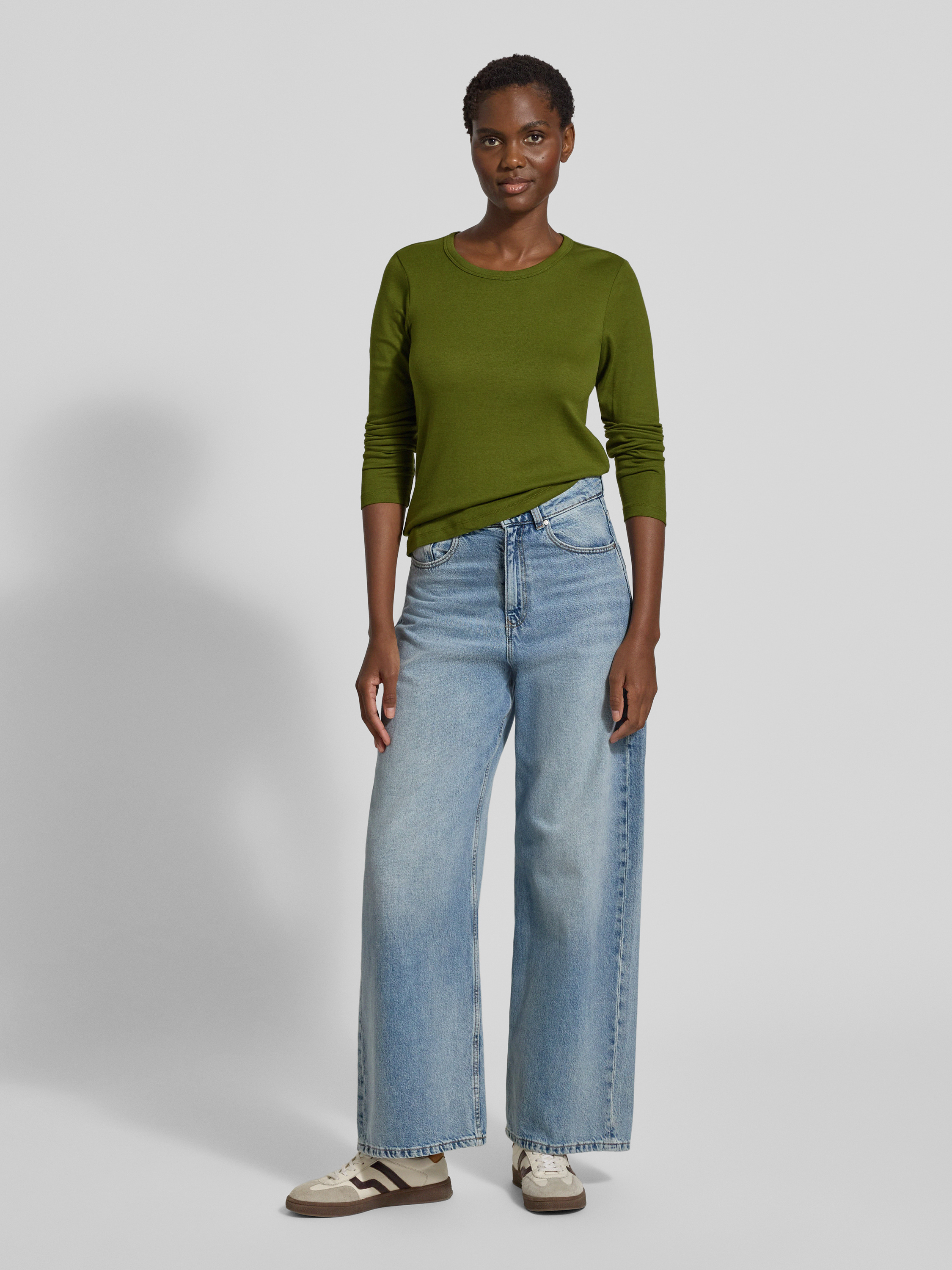 Bluzka z długim rękawem o kroju regular fit z mieszanki bawełny - zielony