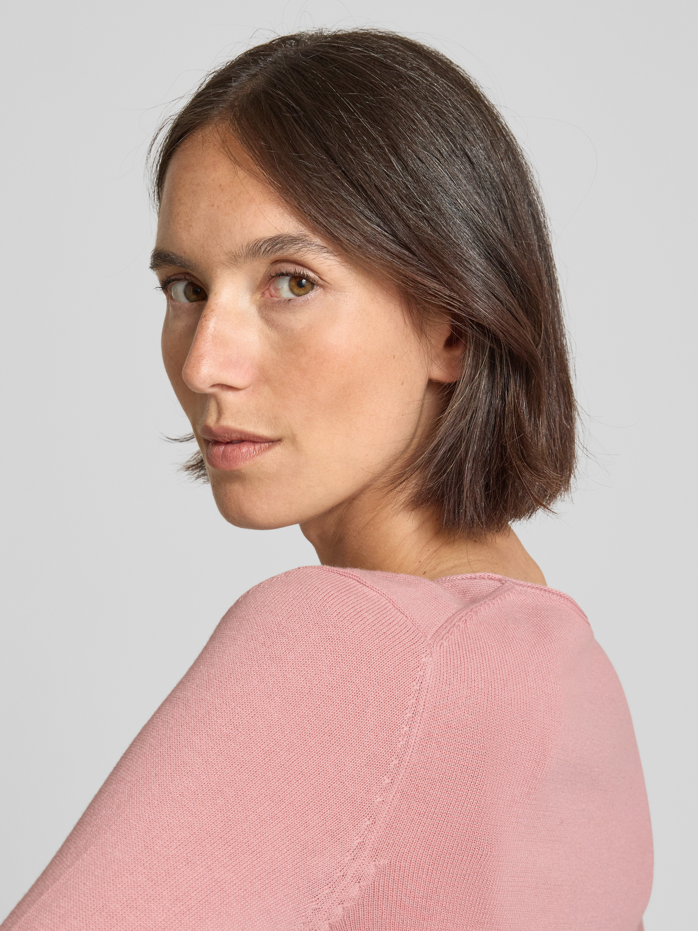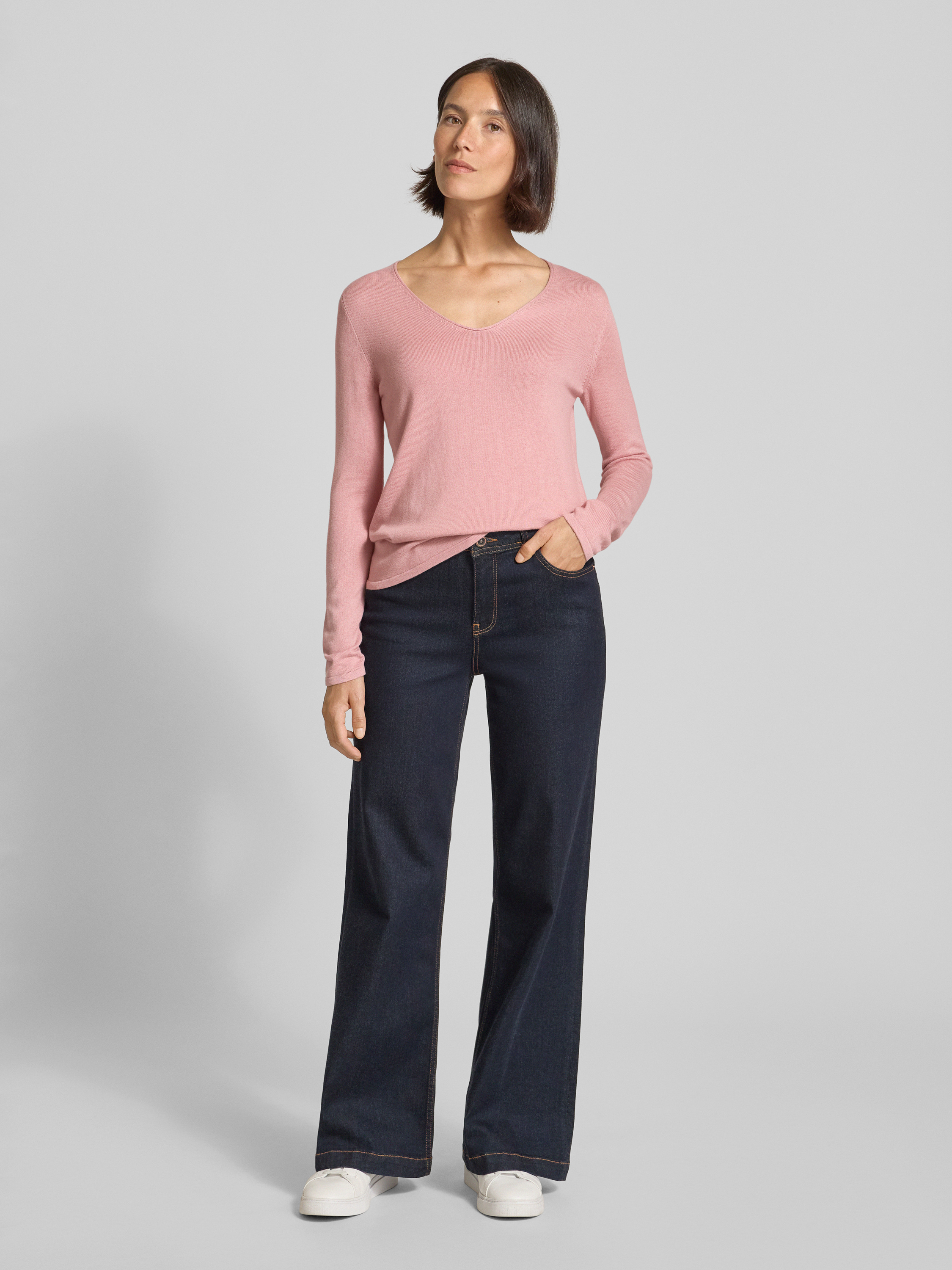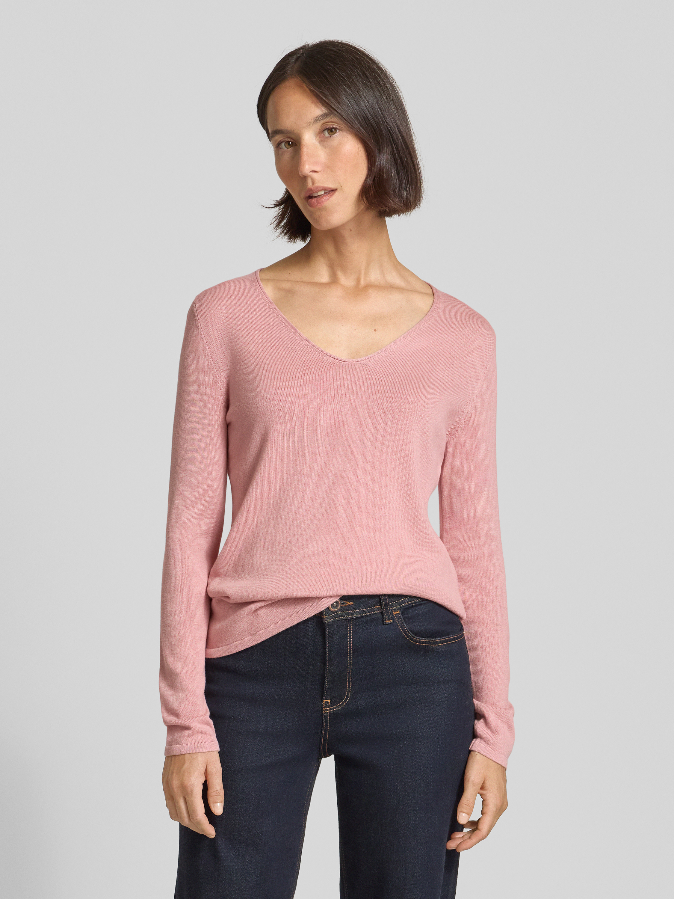 Bluzka z dzianiny o kroju regular fit z mieszanki bawełny i wiskozy - mocnoróżowy