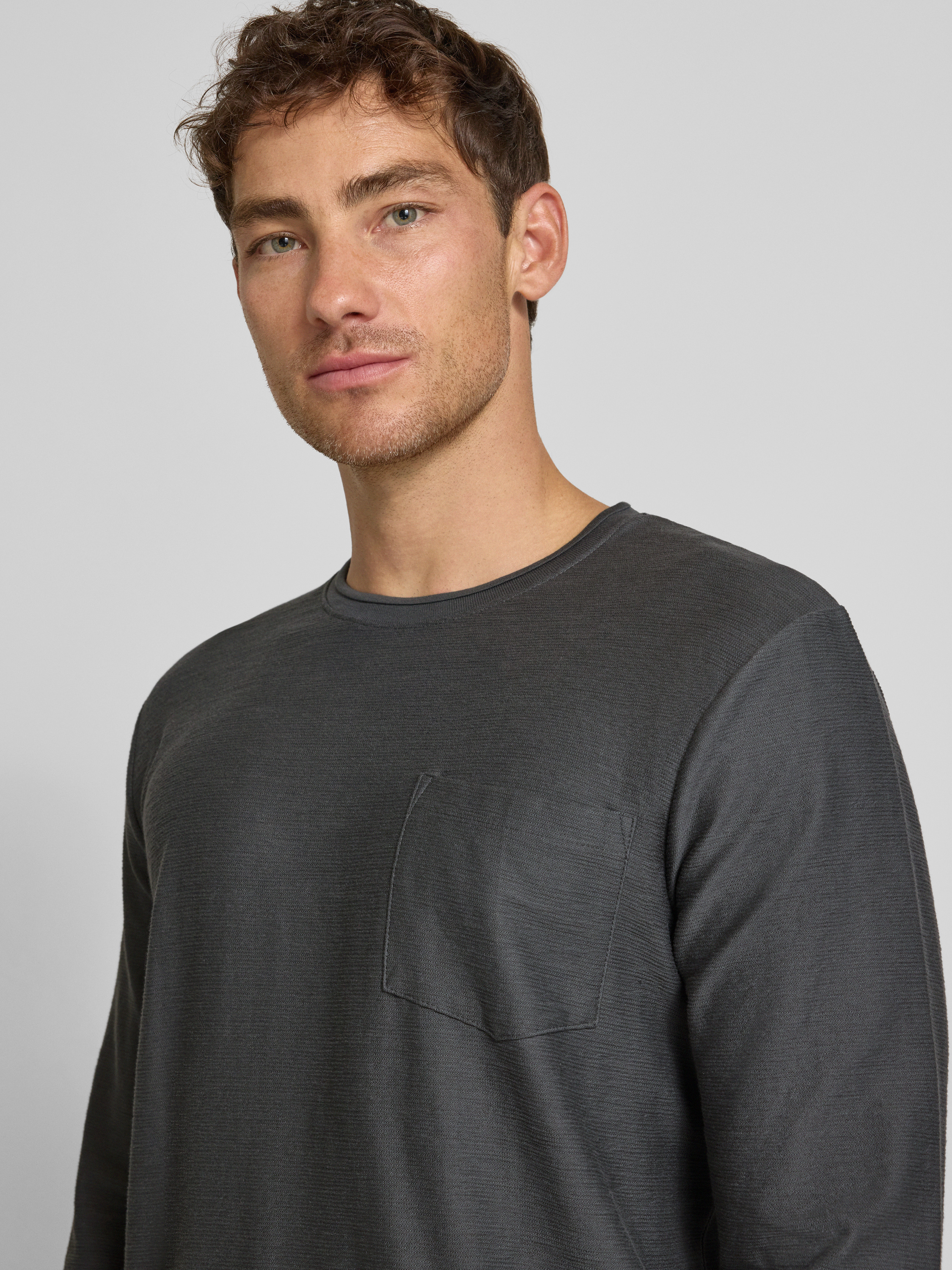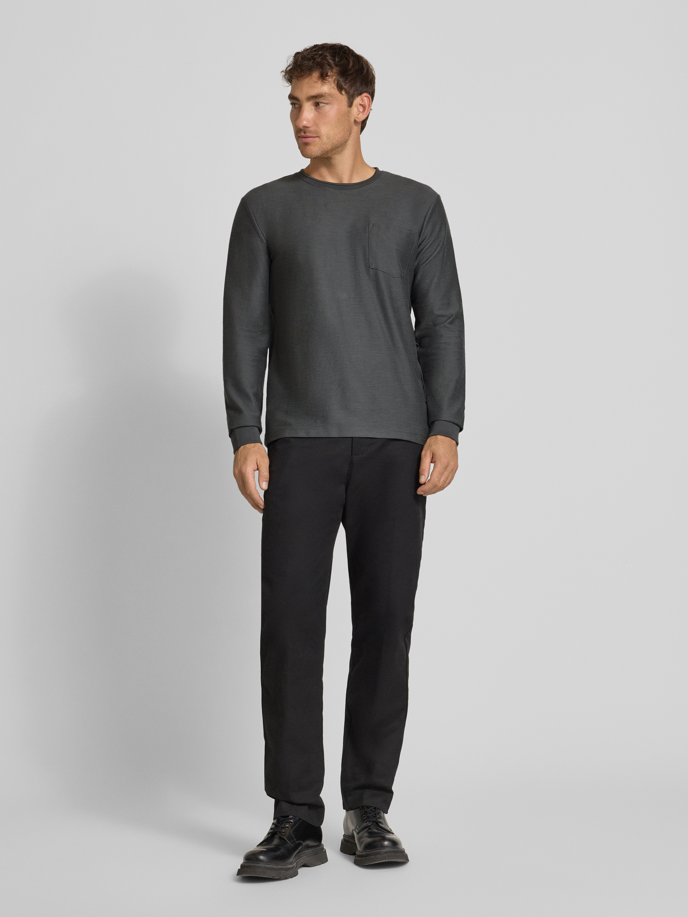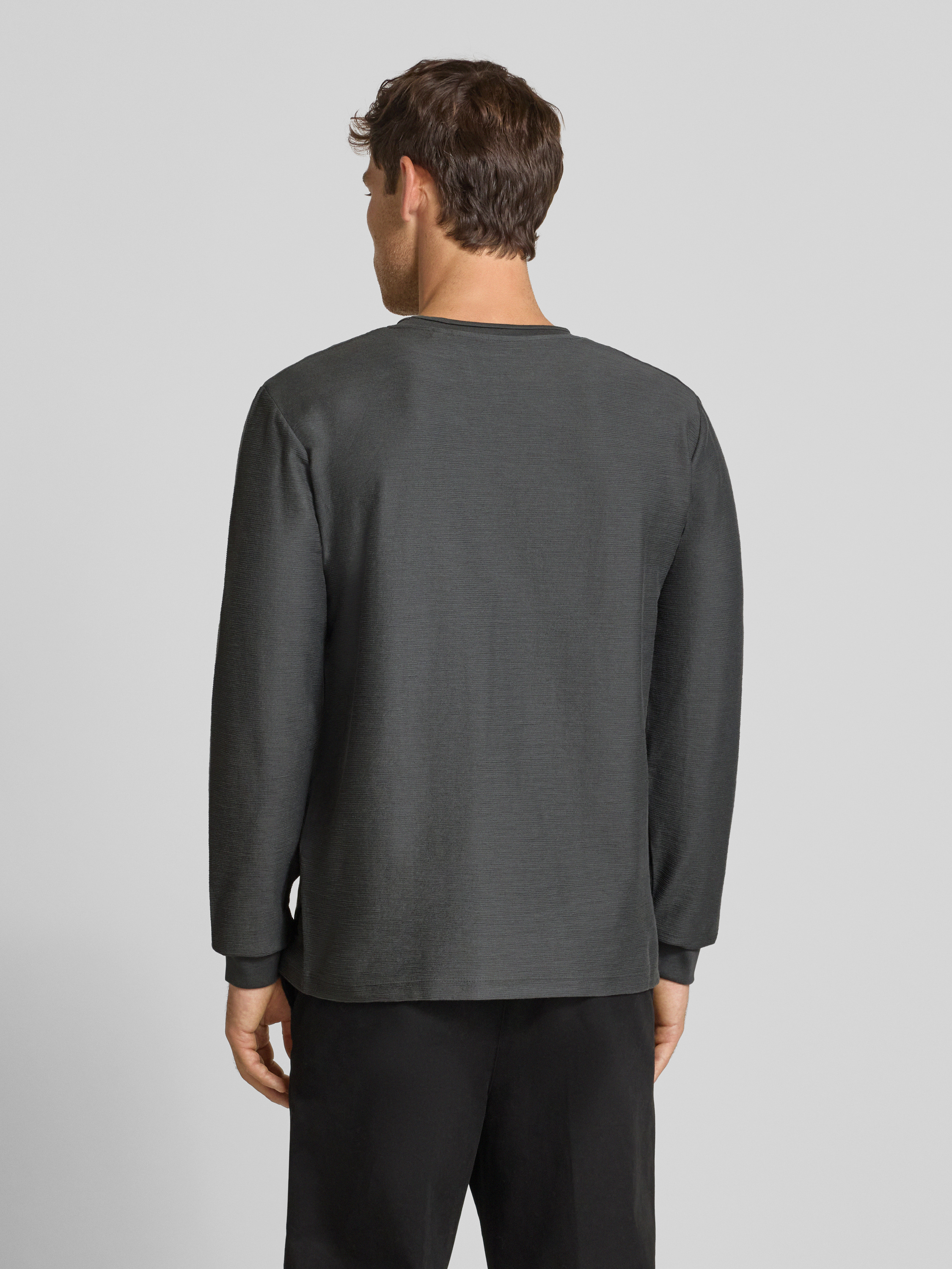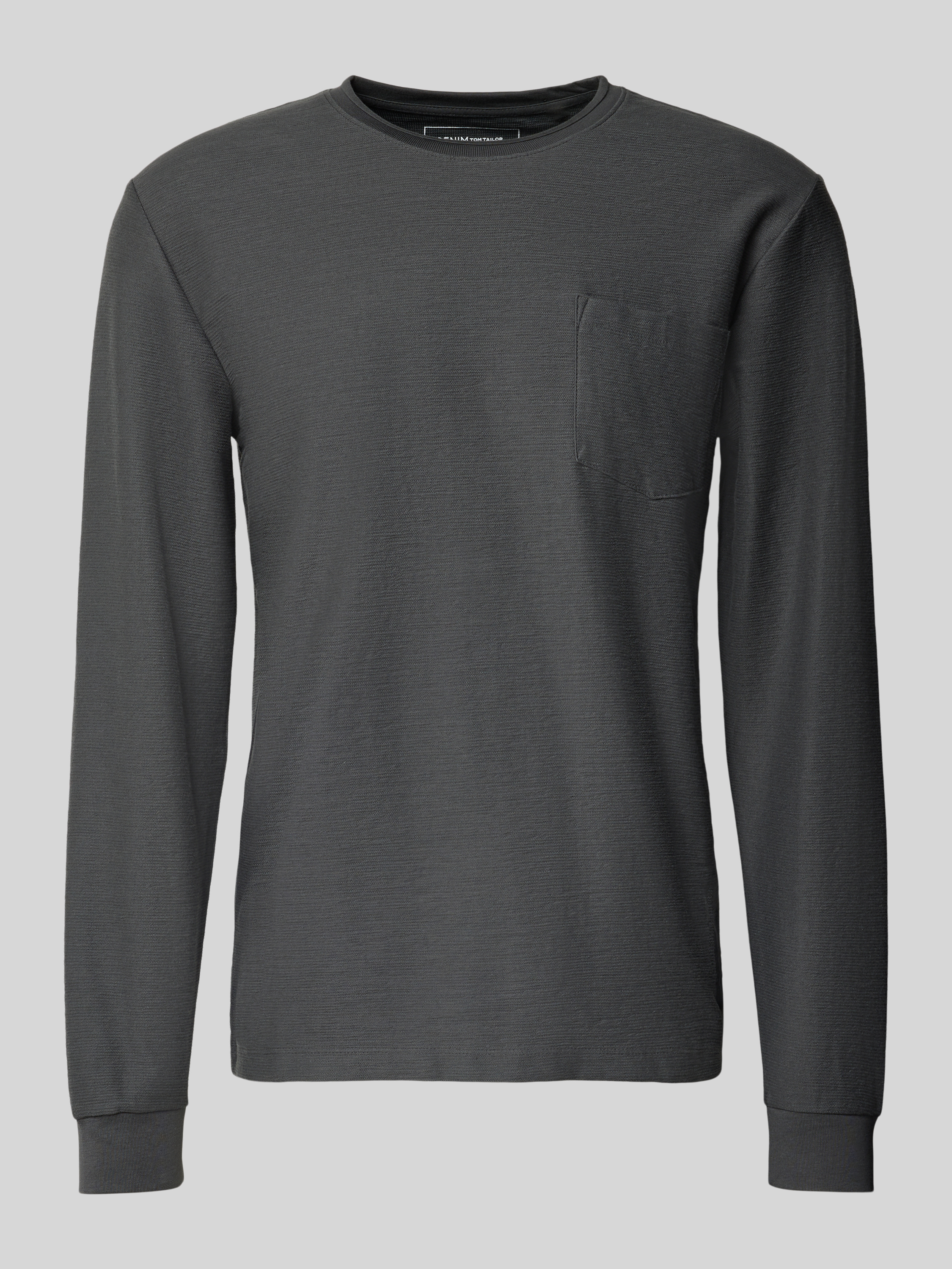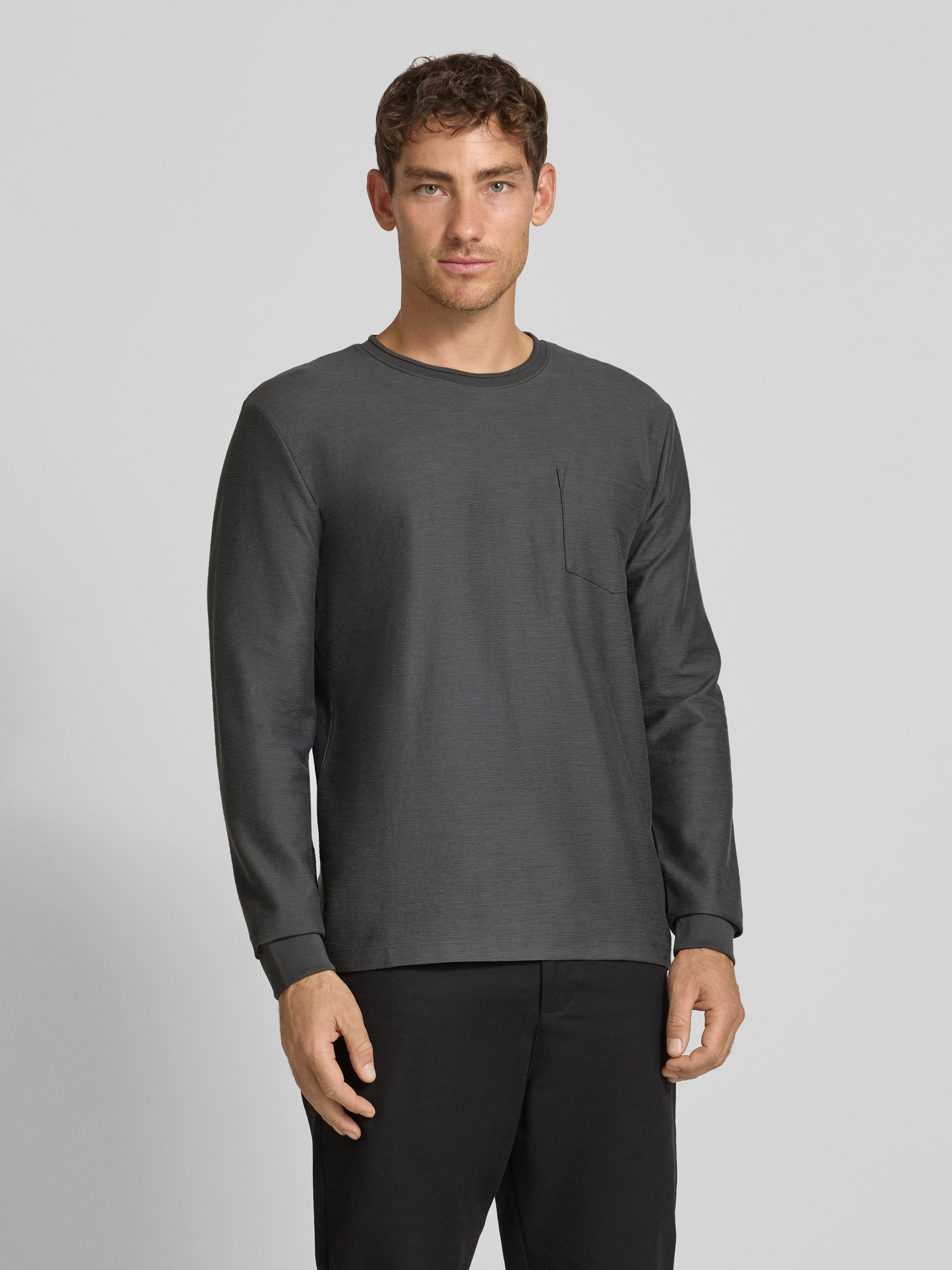 Bluzka o kroju regular fit z mieszanki bawełny z długim rękawem i fakturowanym, tkanym wzorem - antracytowy