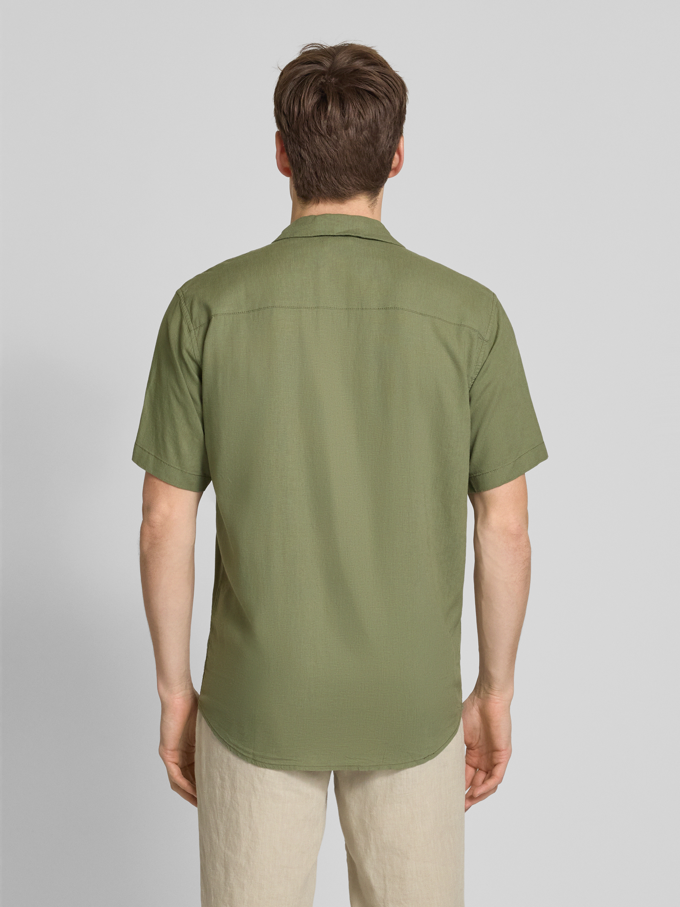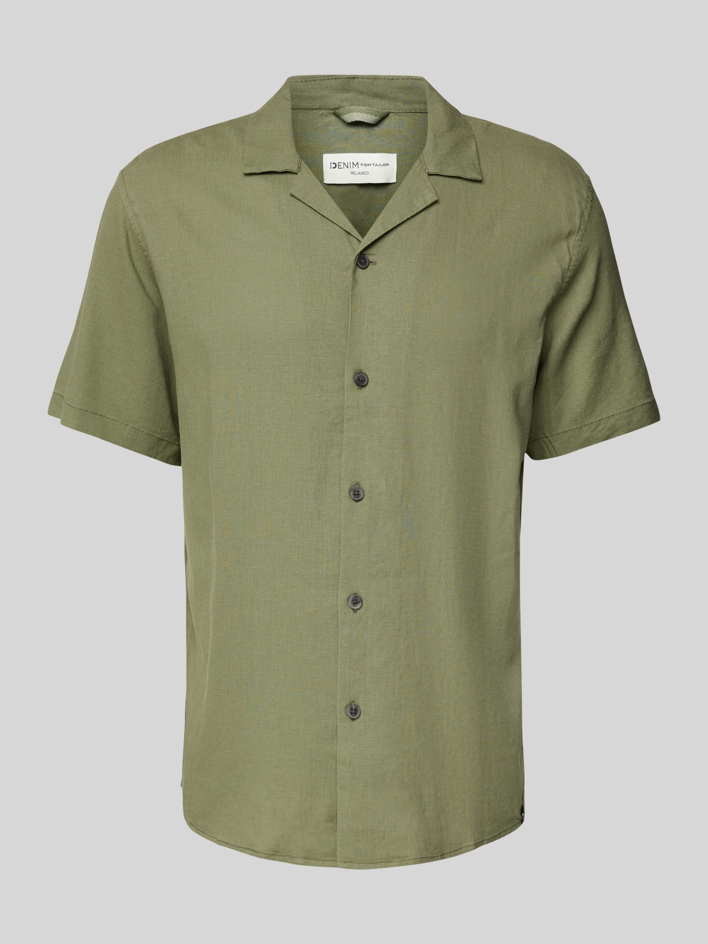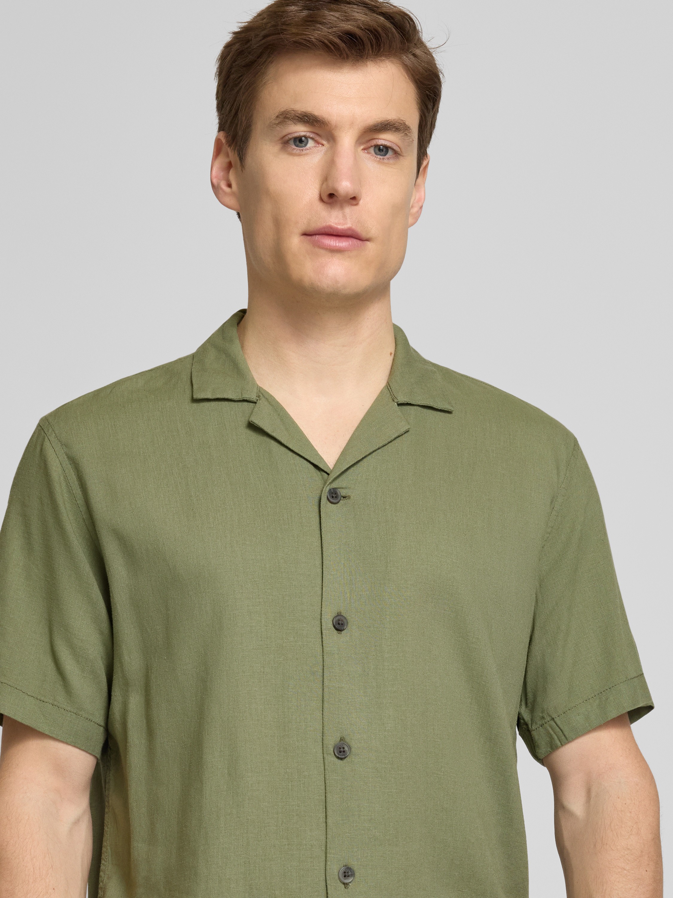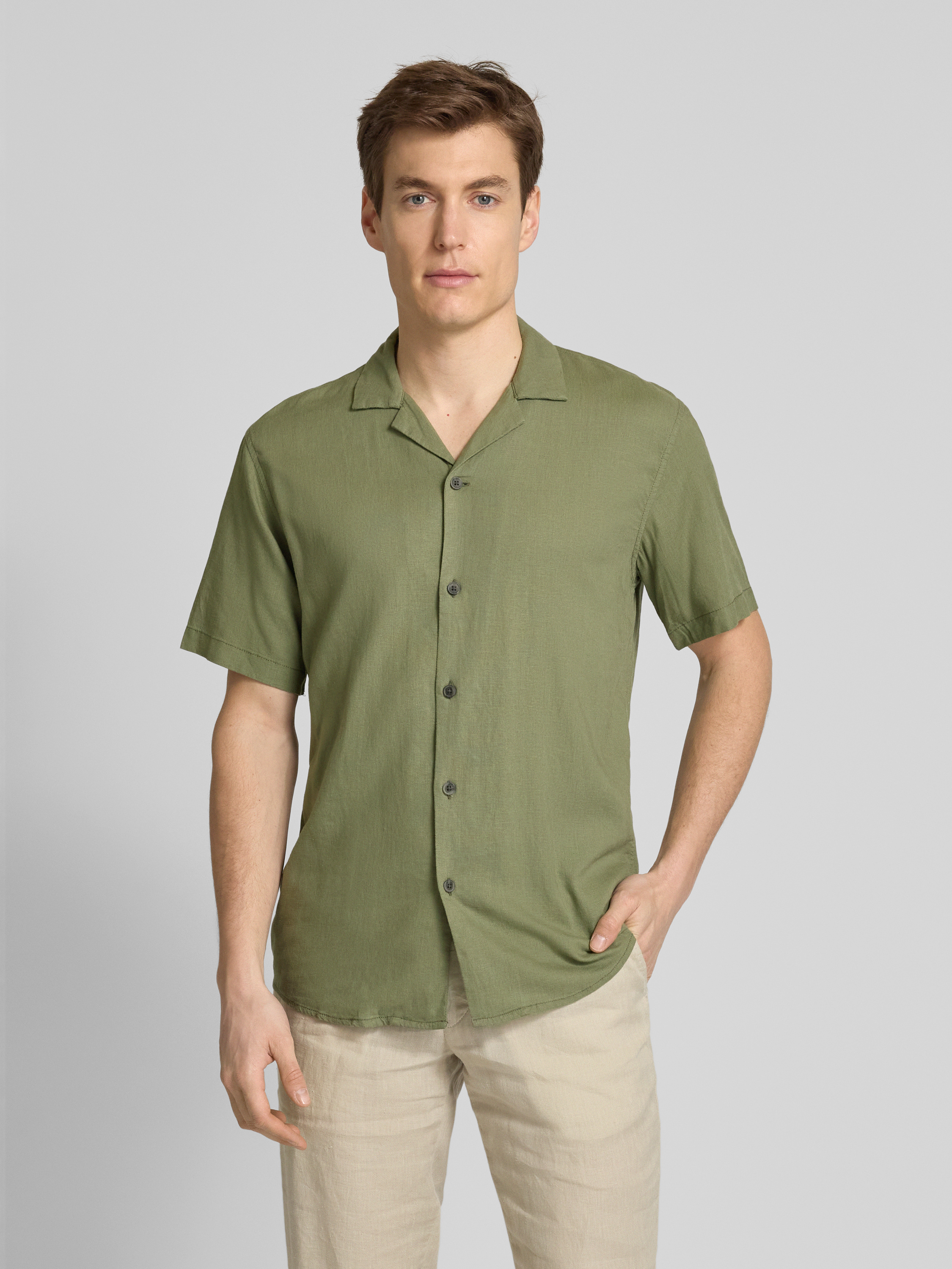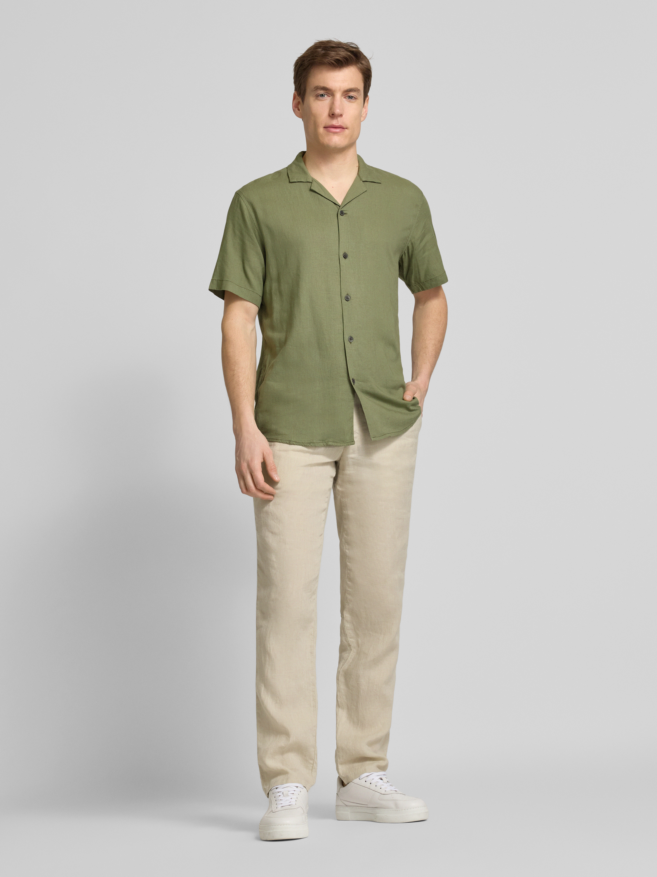 Koszula casualowa o kroju relaxed fit z mieszanki wiskozy i lnu - oliwkowy