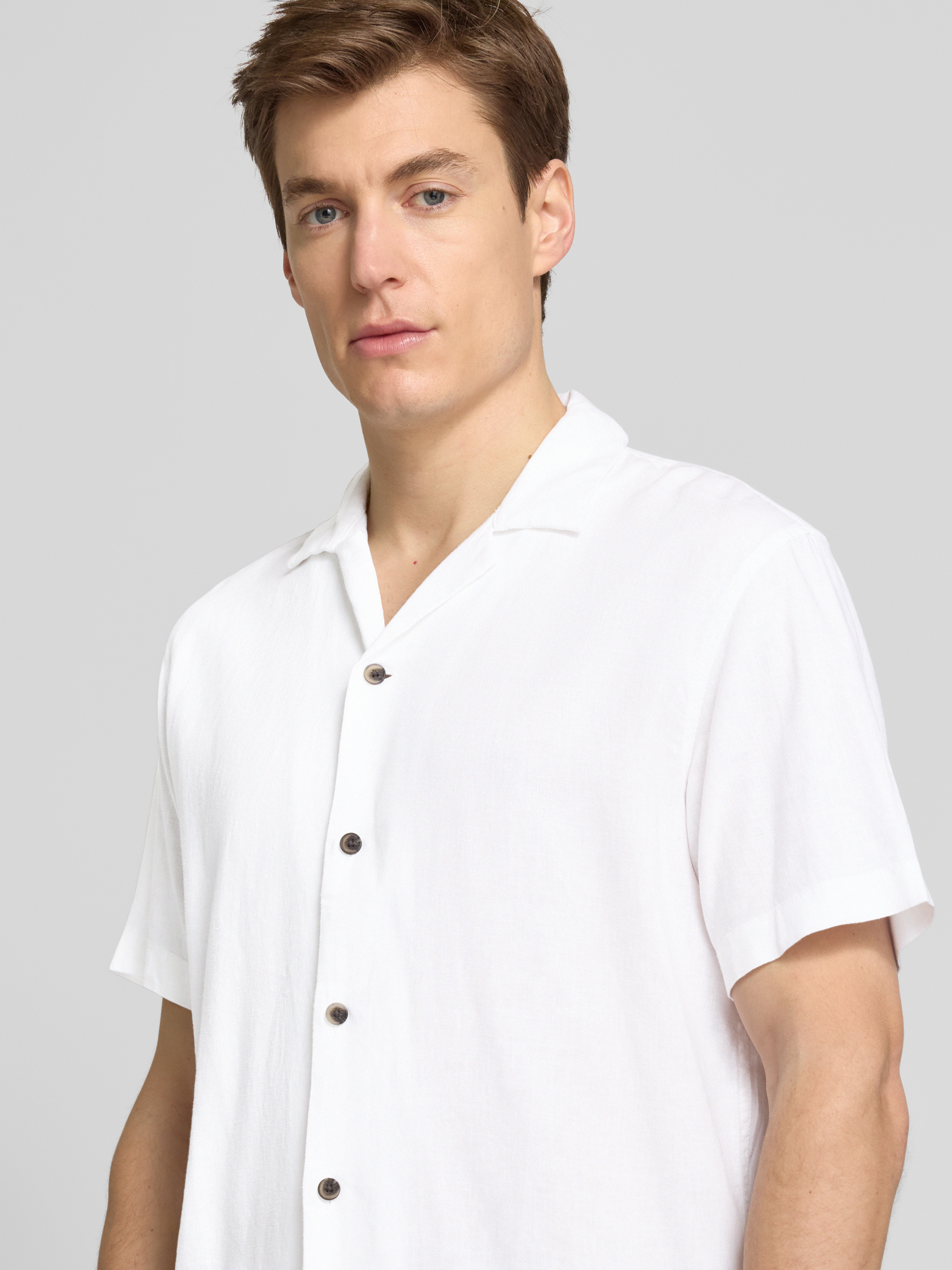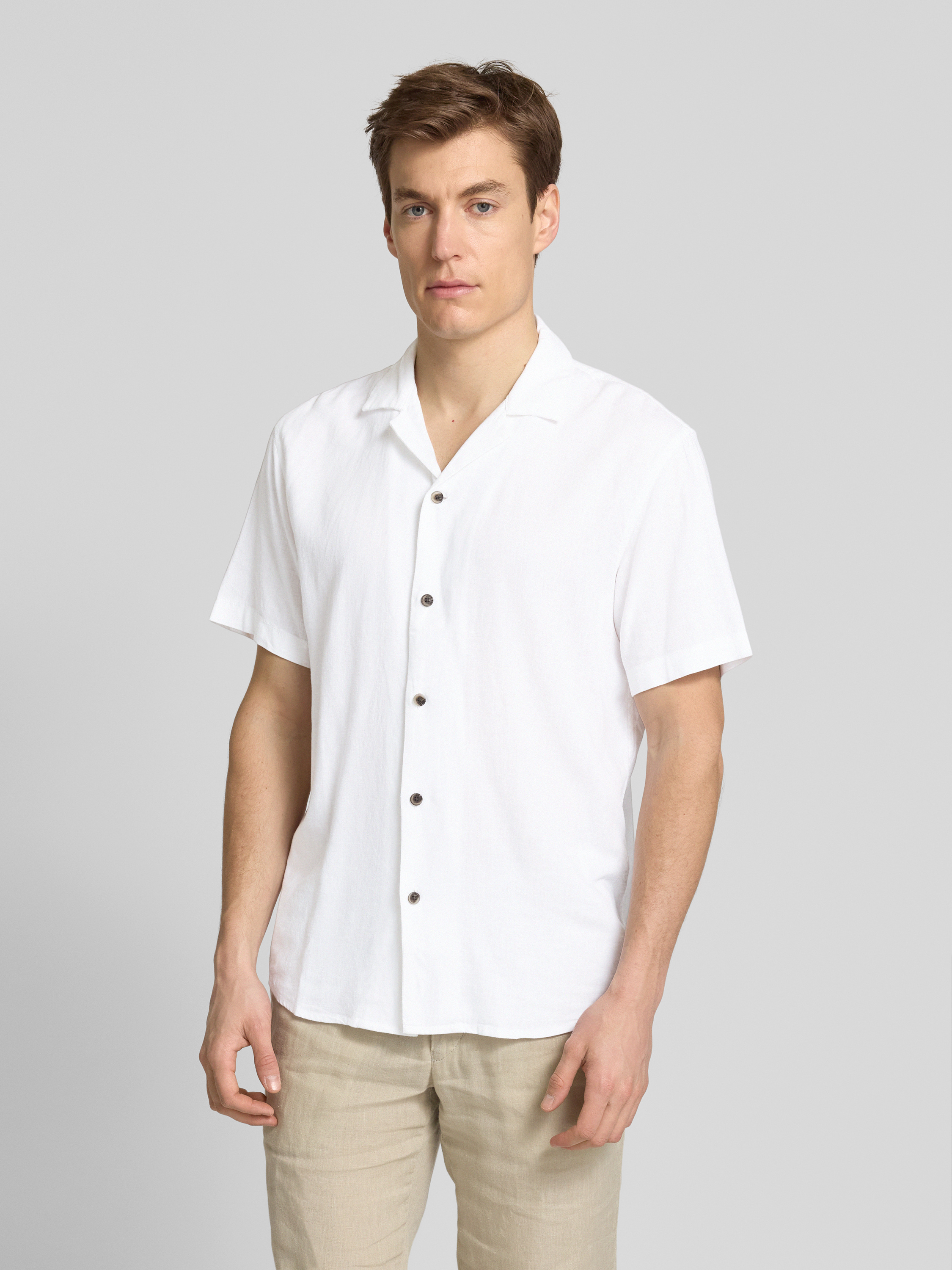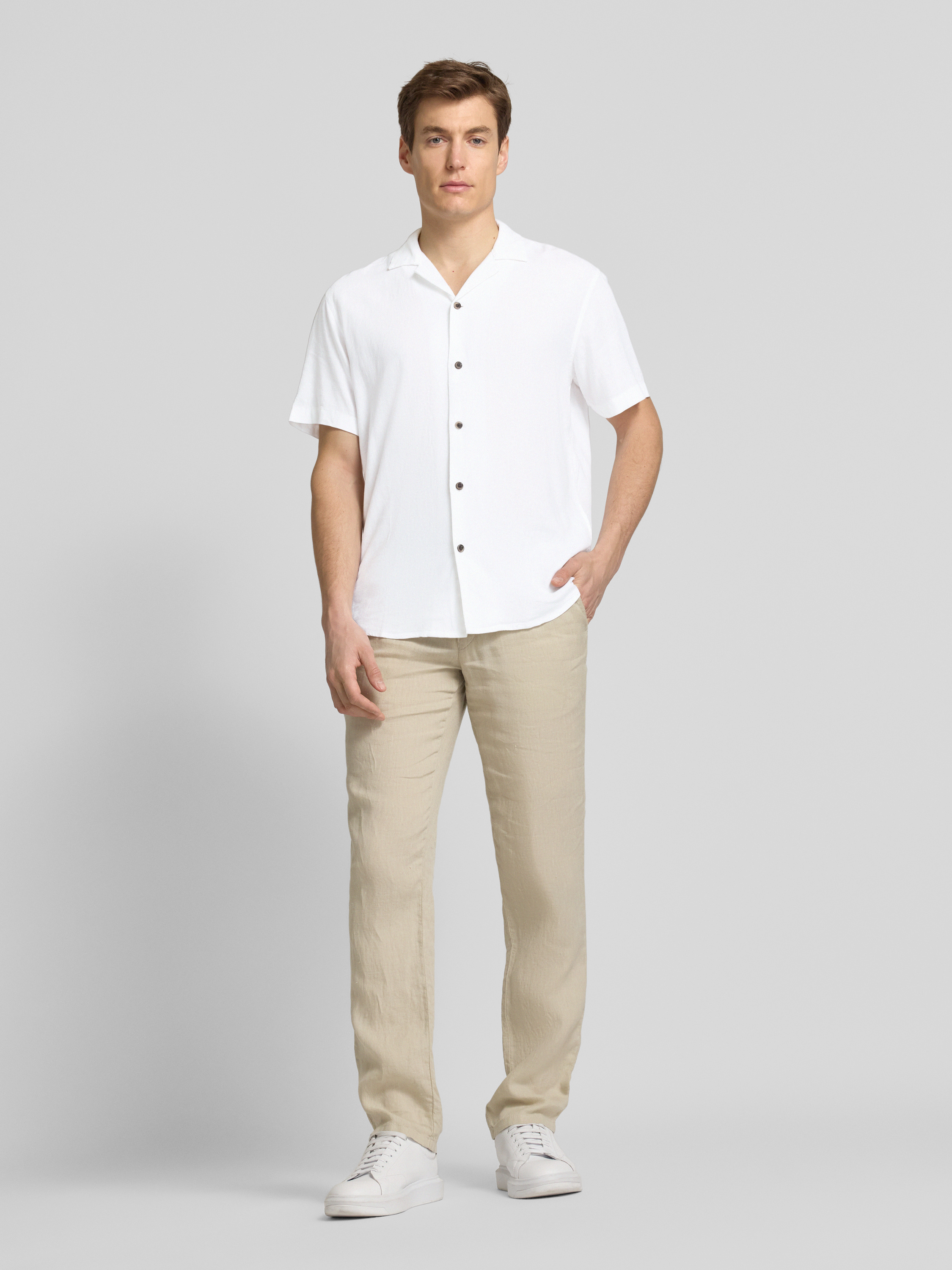 Koszula casualowa o kroju relaxed fit z mieszanki wiskozy i lnu - złamany biały