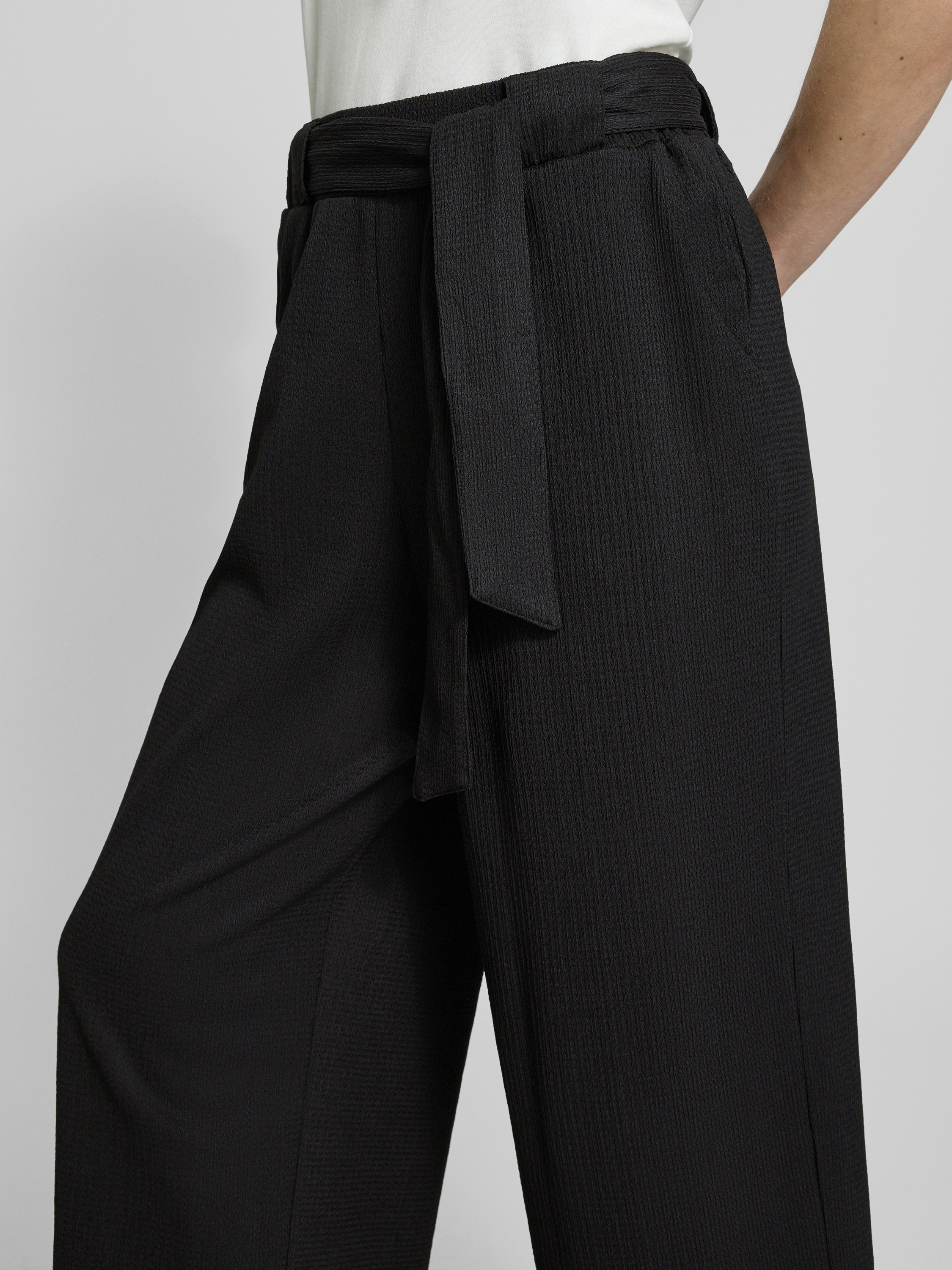 Kuloty z wysokim stanem i wiązanym paskiem - czarny