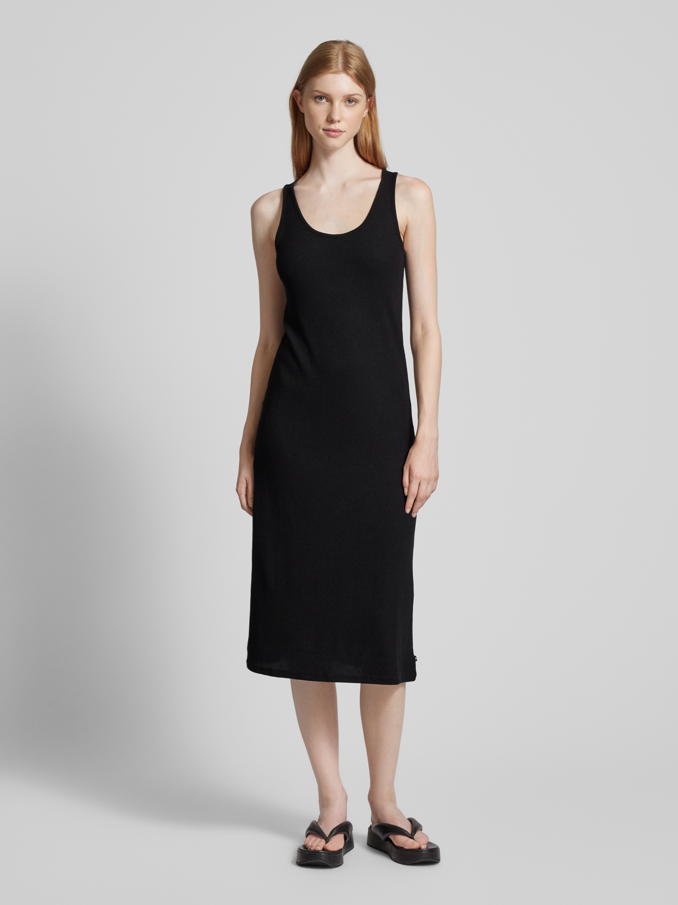Sukienka midi z okrągłym dekoltem - czarny