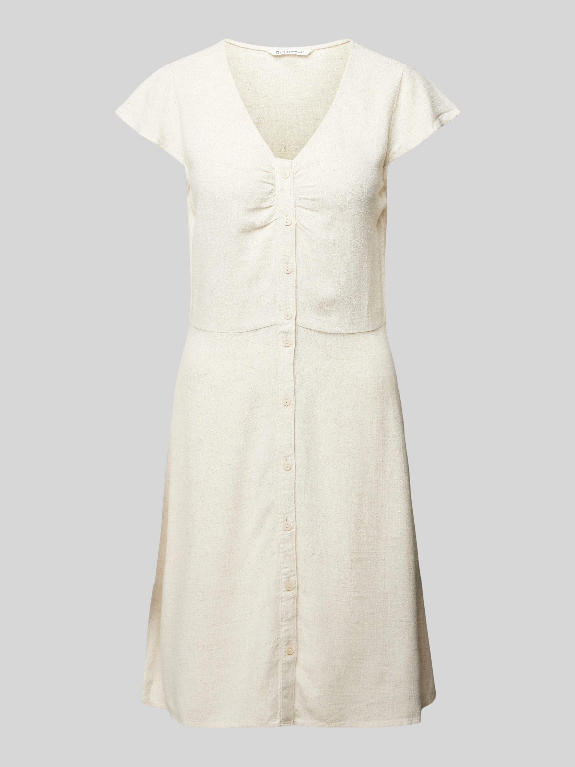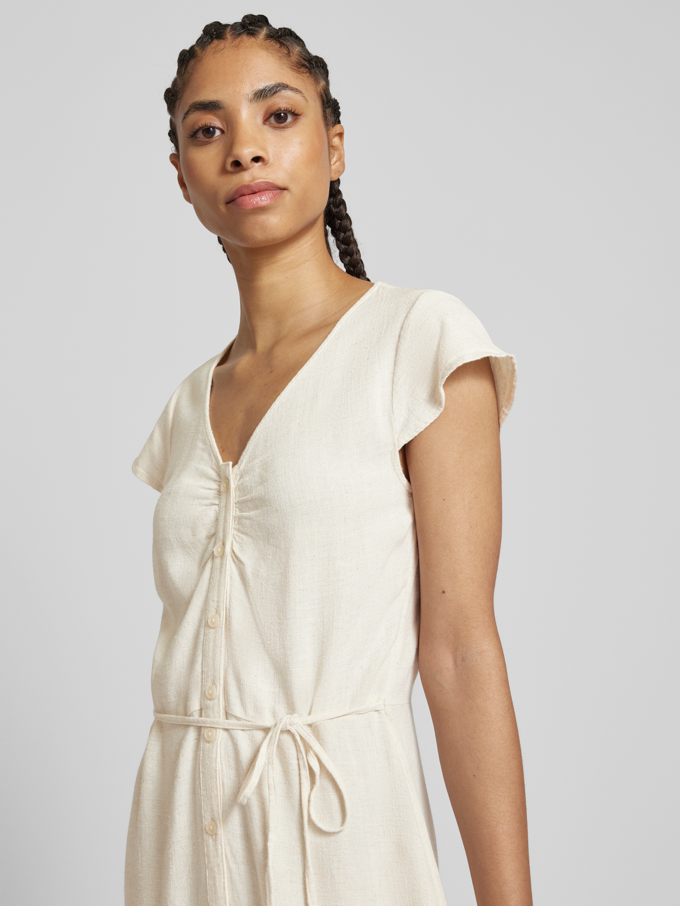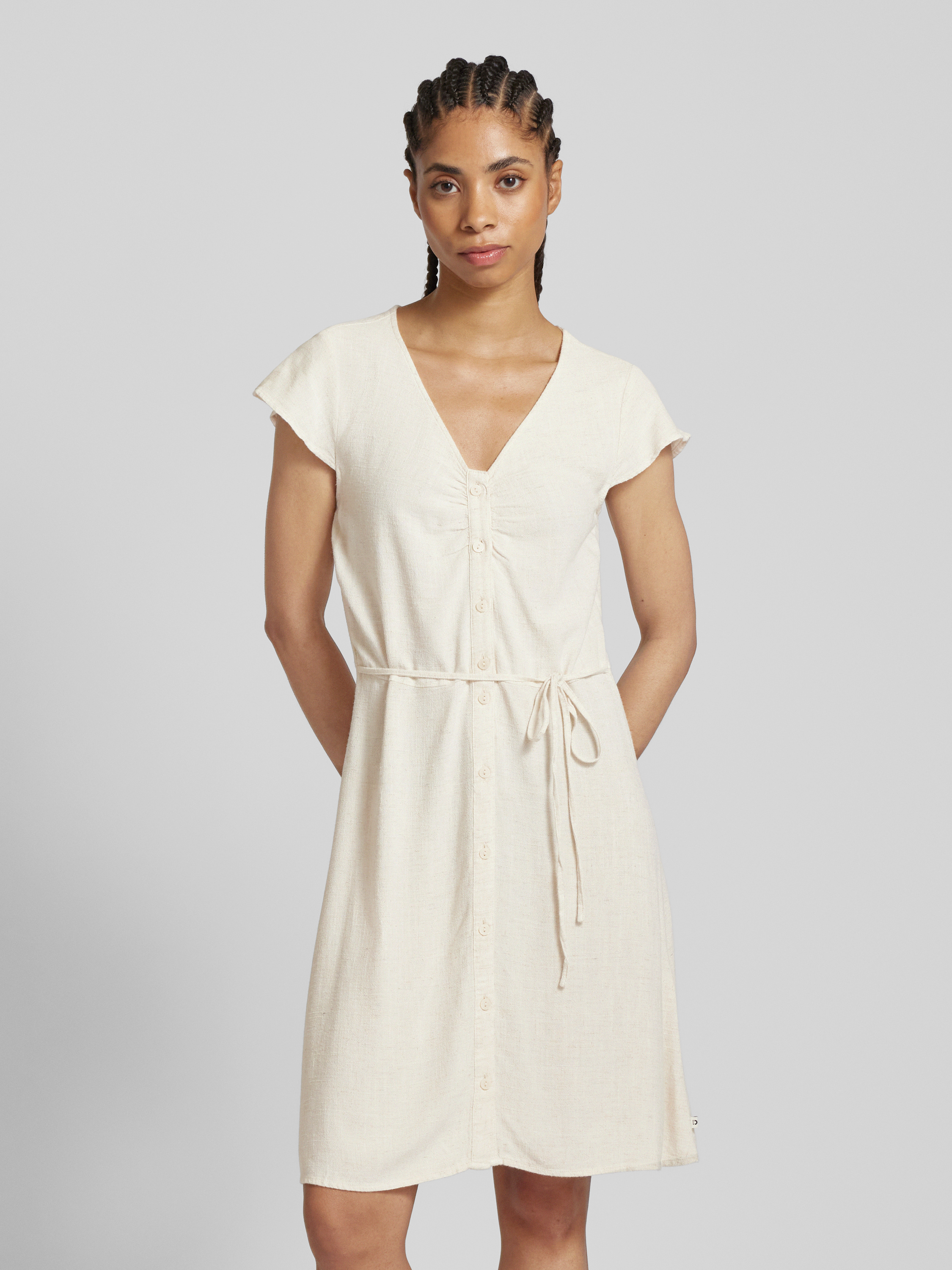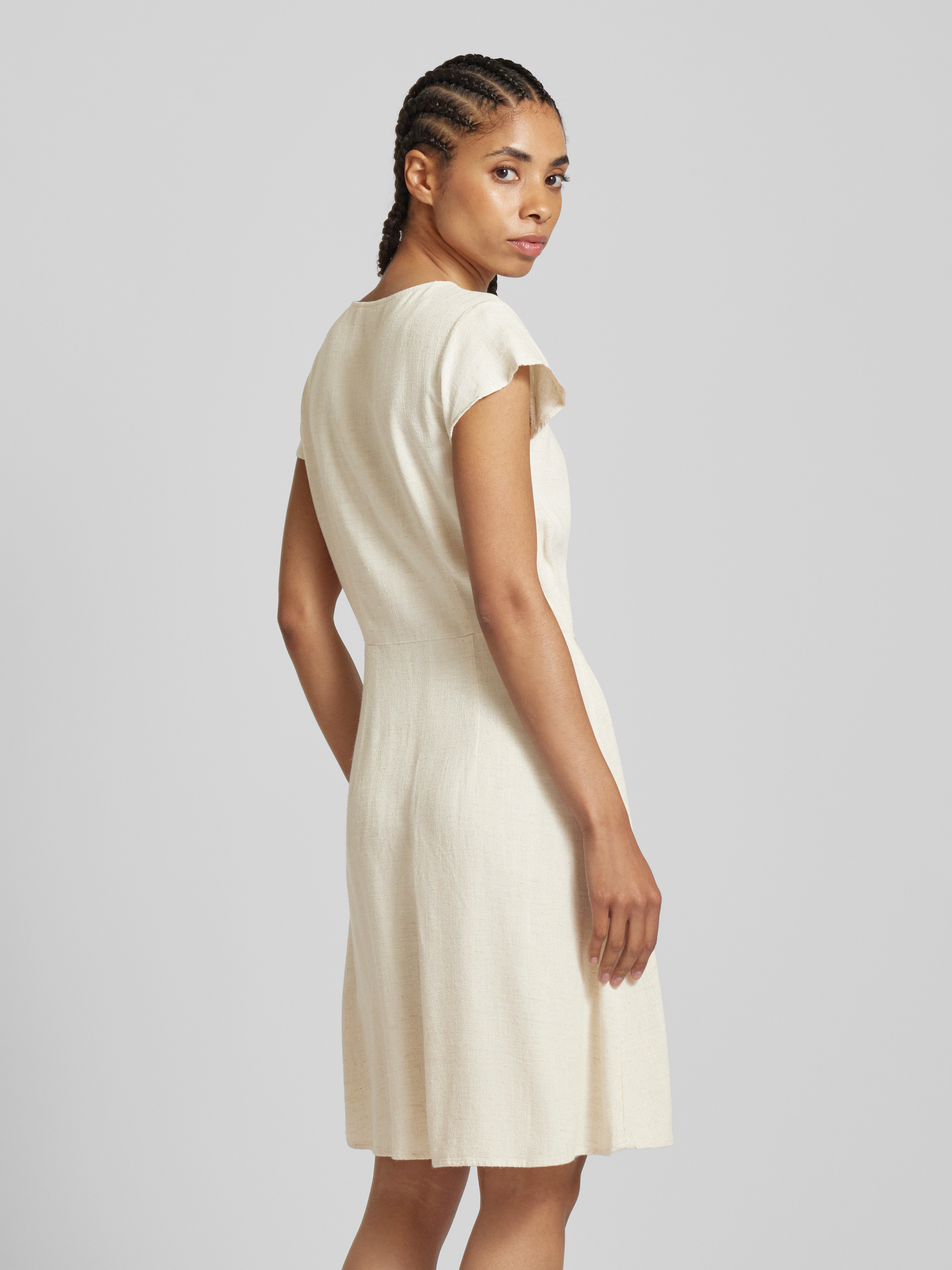 Sukienka o długości do kolan z mieszanki wiskozy i lnu - beżowy