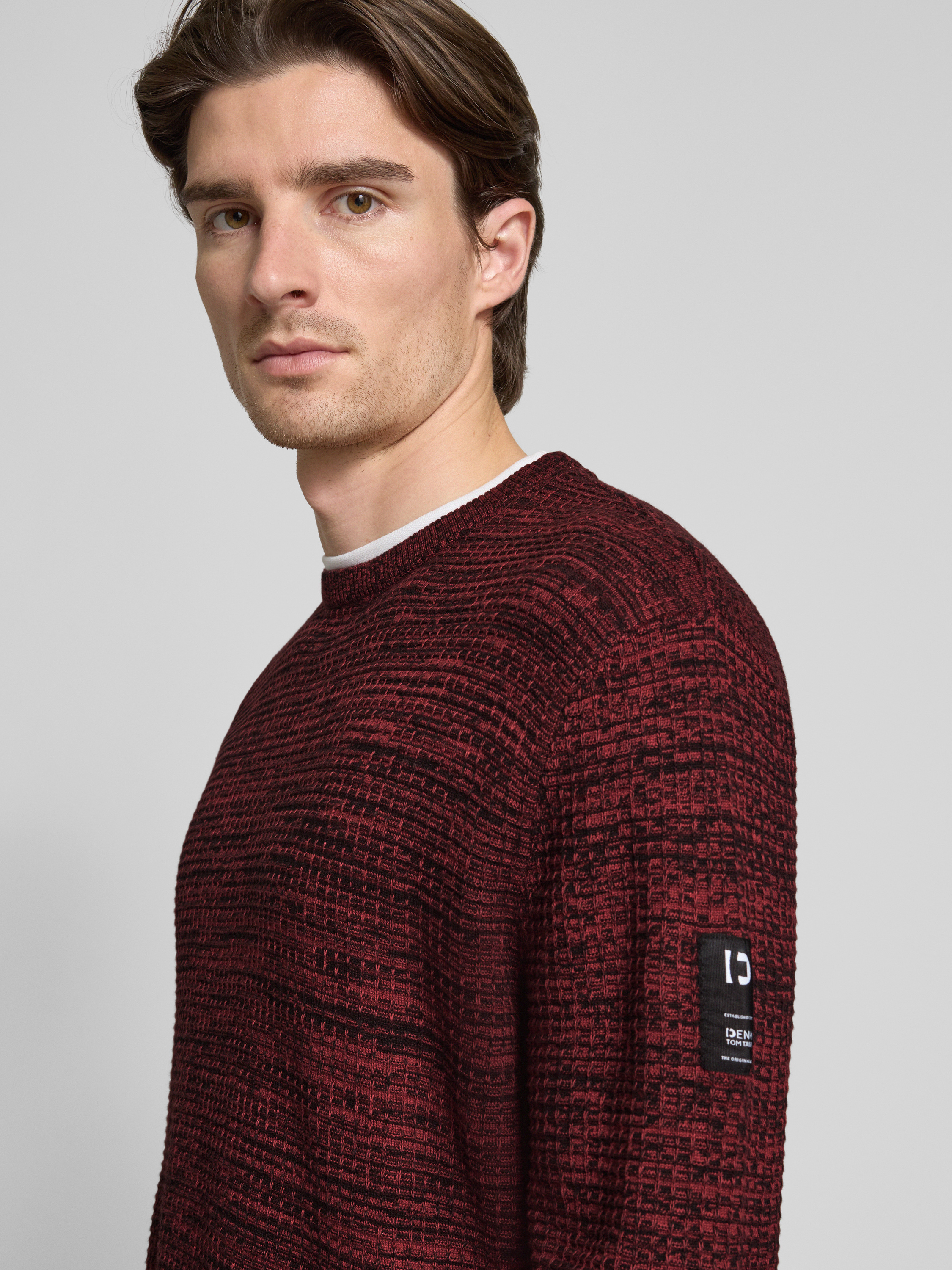 Sweter z dzianiny kroju regular fit z mieszanki bawełny - ciemnoczerwony