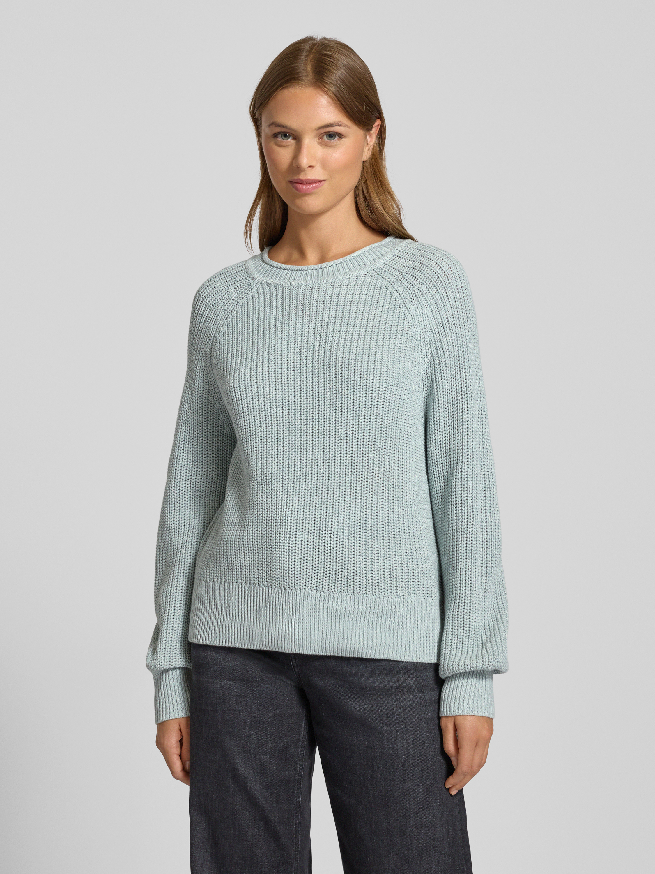 Sweter z dzianiny kroju regular fit z mieszanki bawełny - trzcinowy