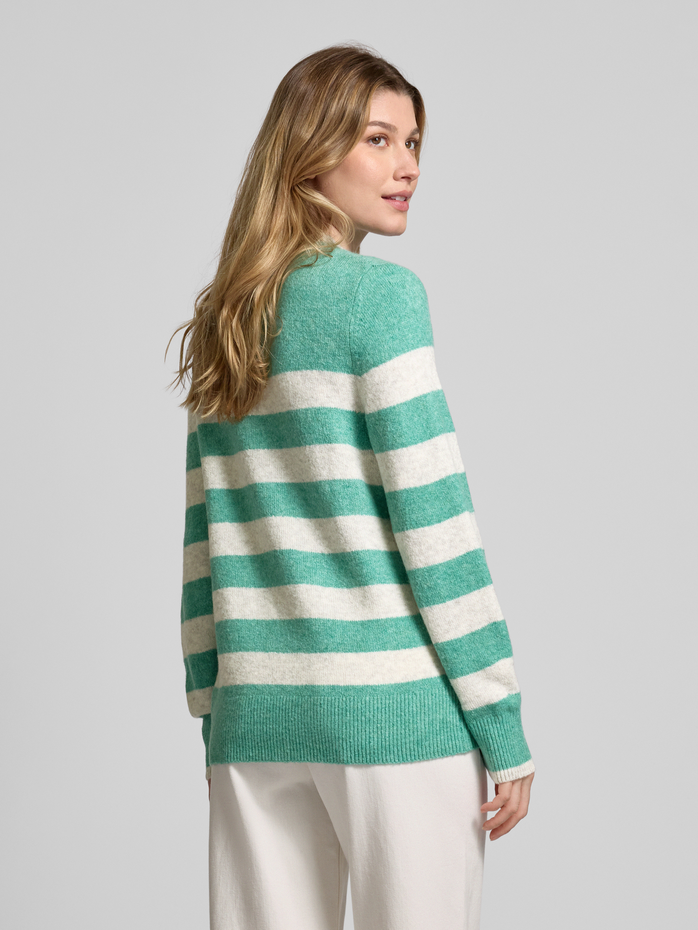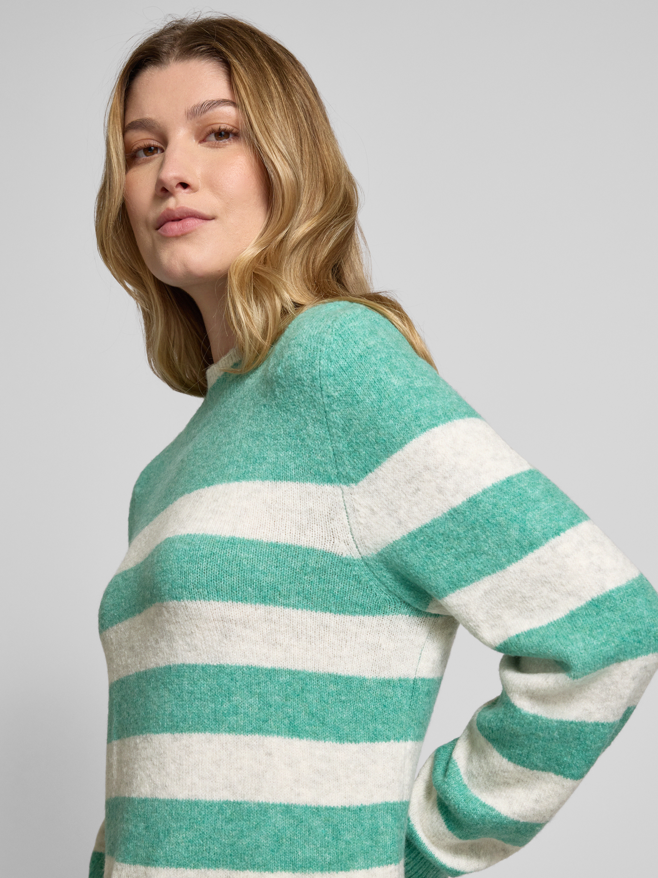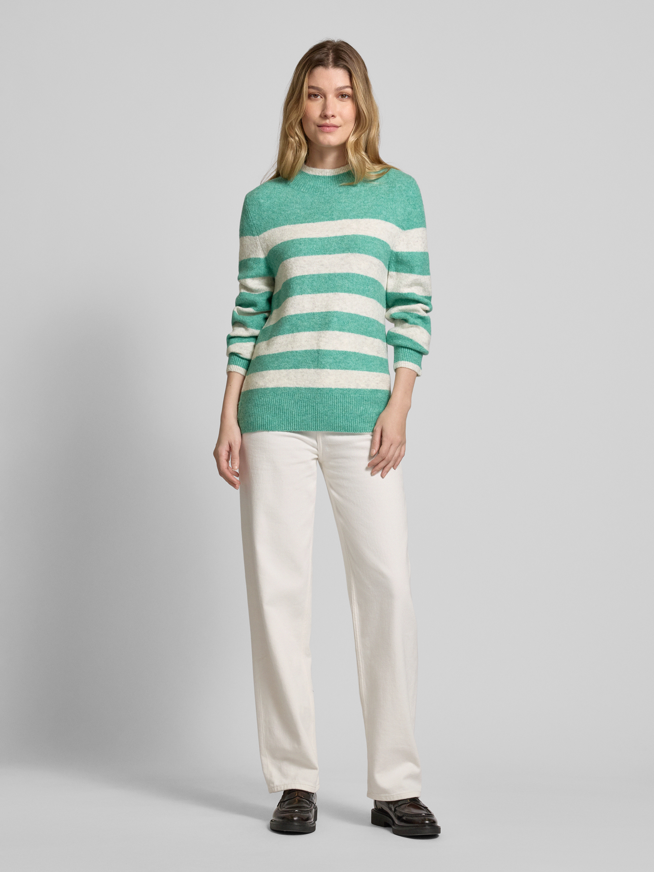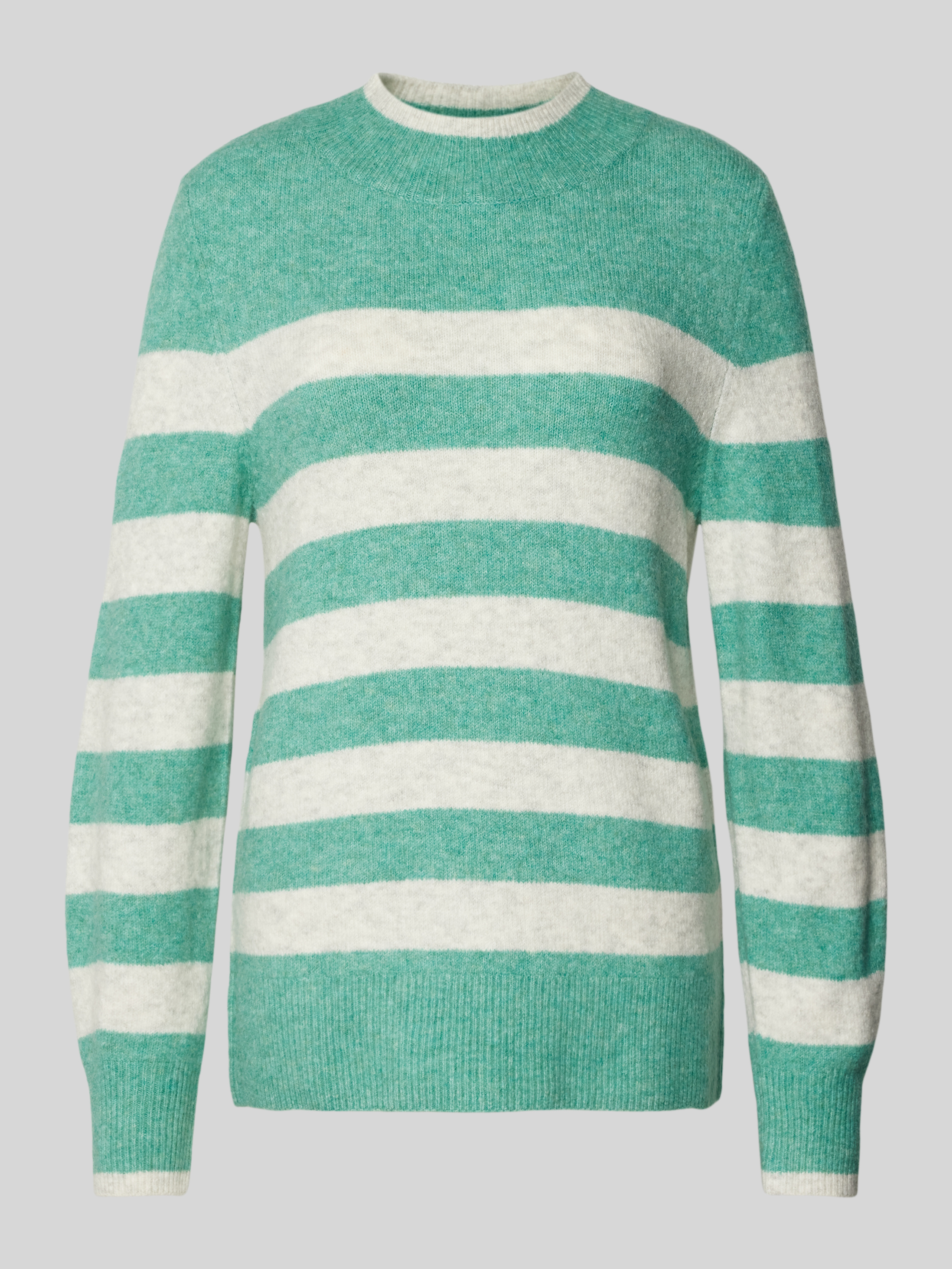 Sweter z dzianiny o kroju regular fit z półgolfem i wzorem w paski - trawiasty zielony