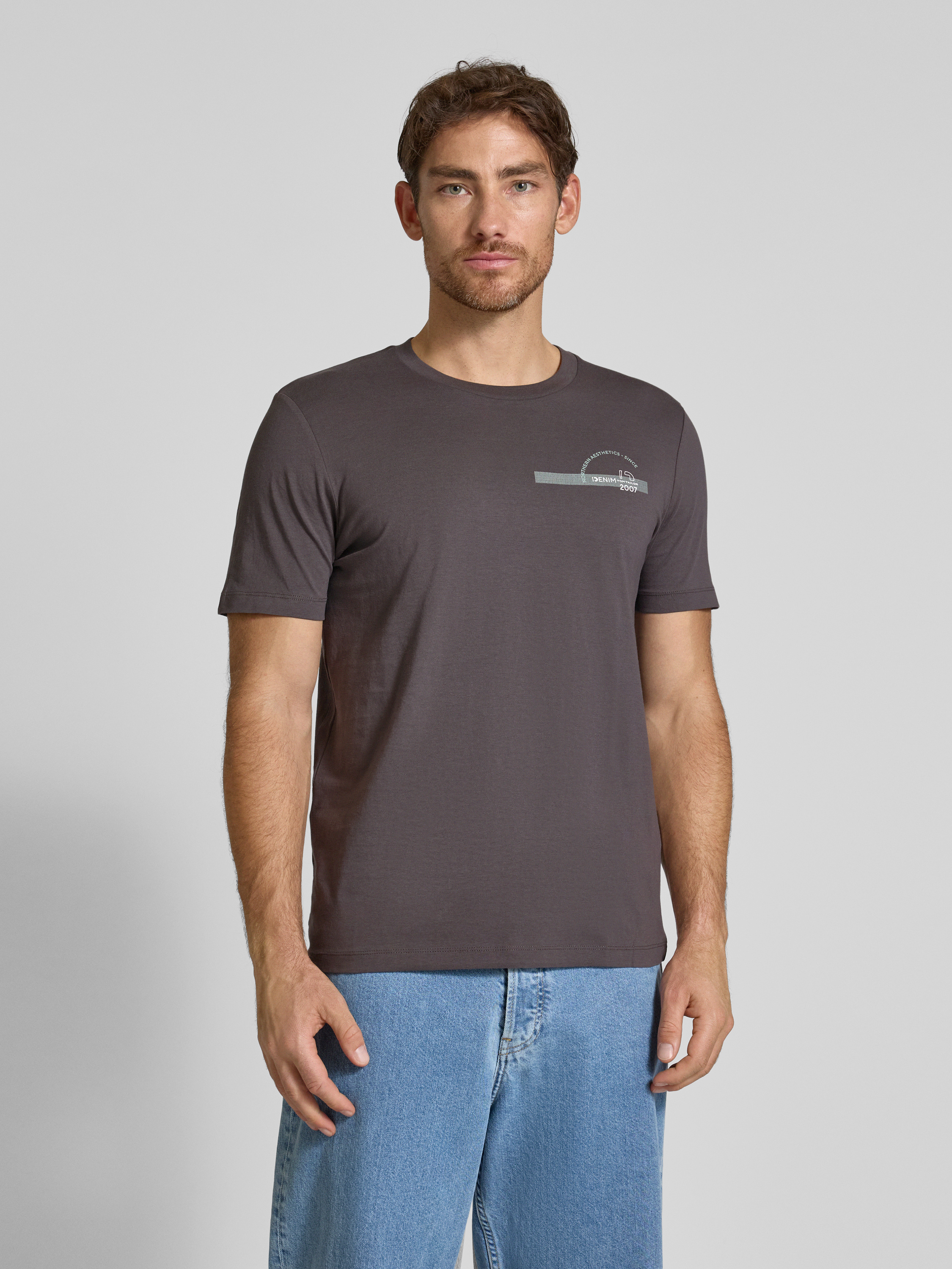T-shirt o kroju regular fit z czystej bawełny - grafitowy