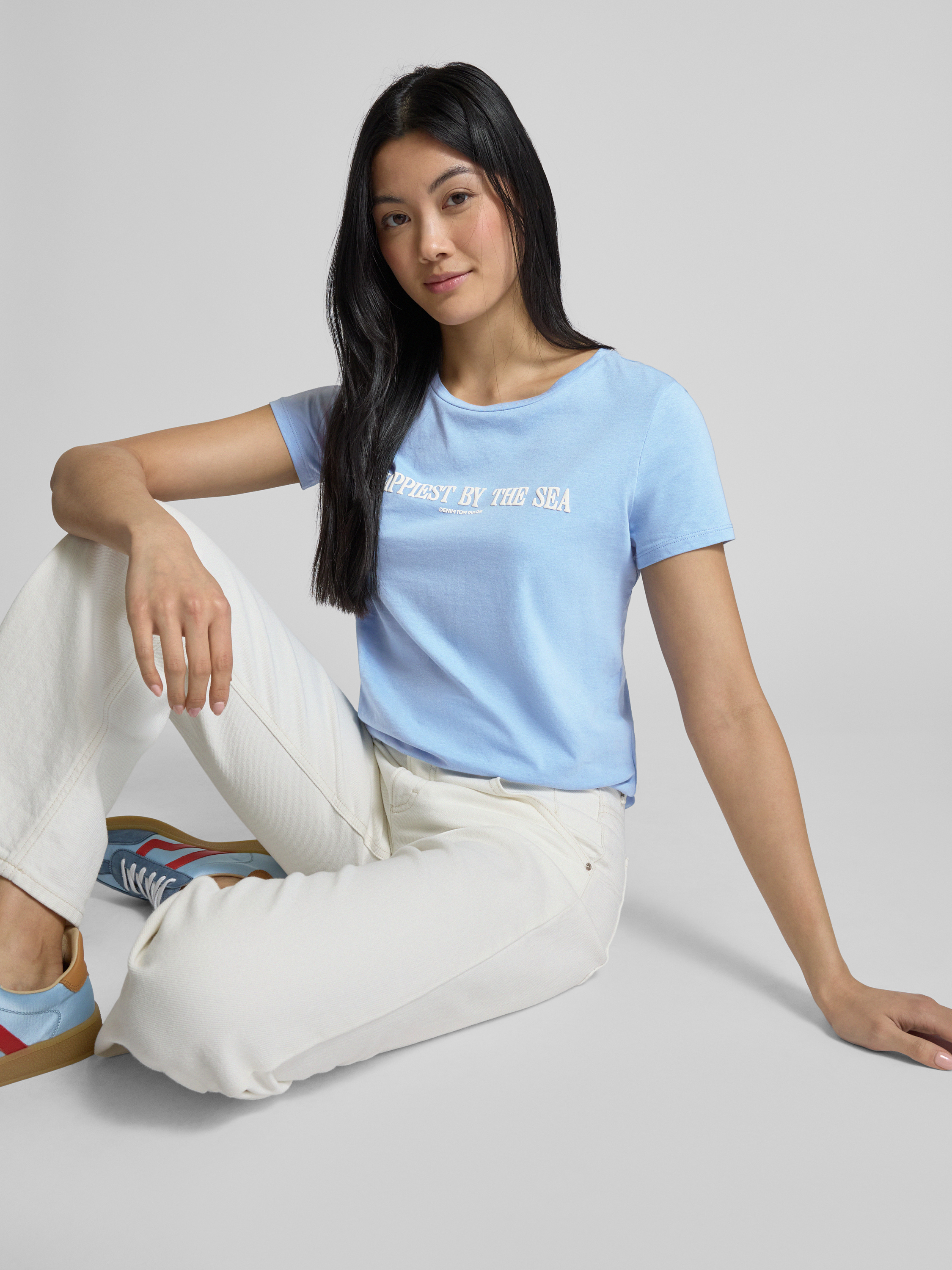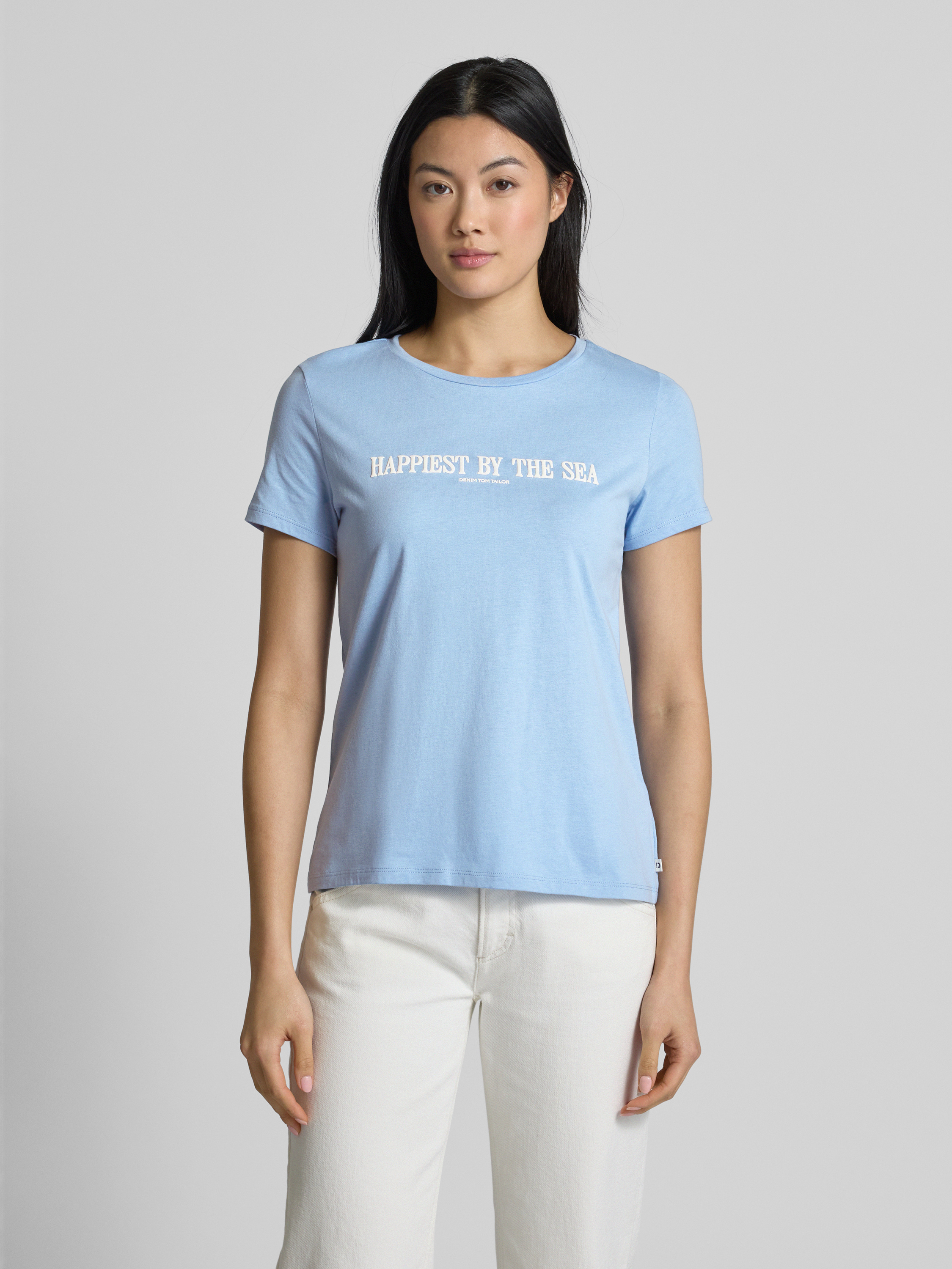 T-shirt o kroju regular fit z czystej bawełny - jasnoniebieski